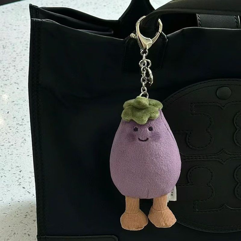 Choice Jellycat Pendant with Three Complete Labels, Steel Stamp, Barcelona Bear, Eggplant Croissant Style, Wholesale Gifts