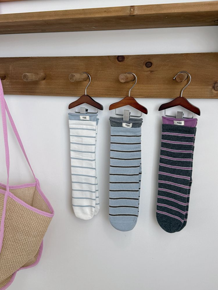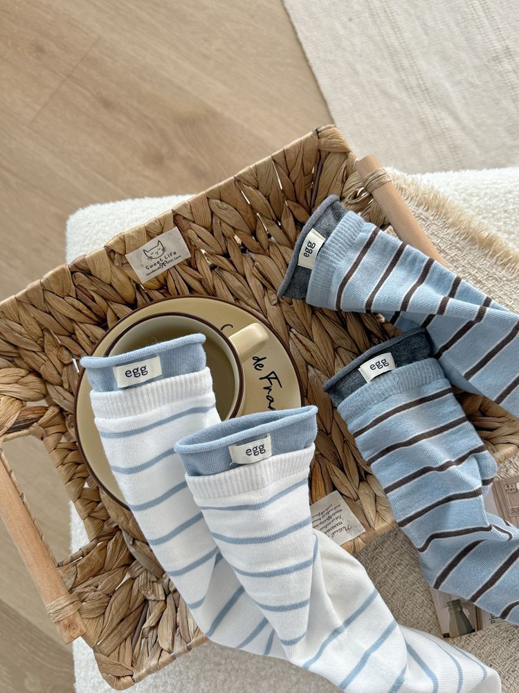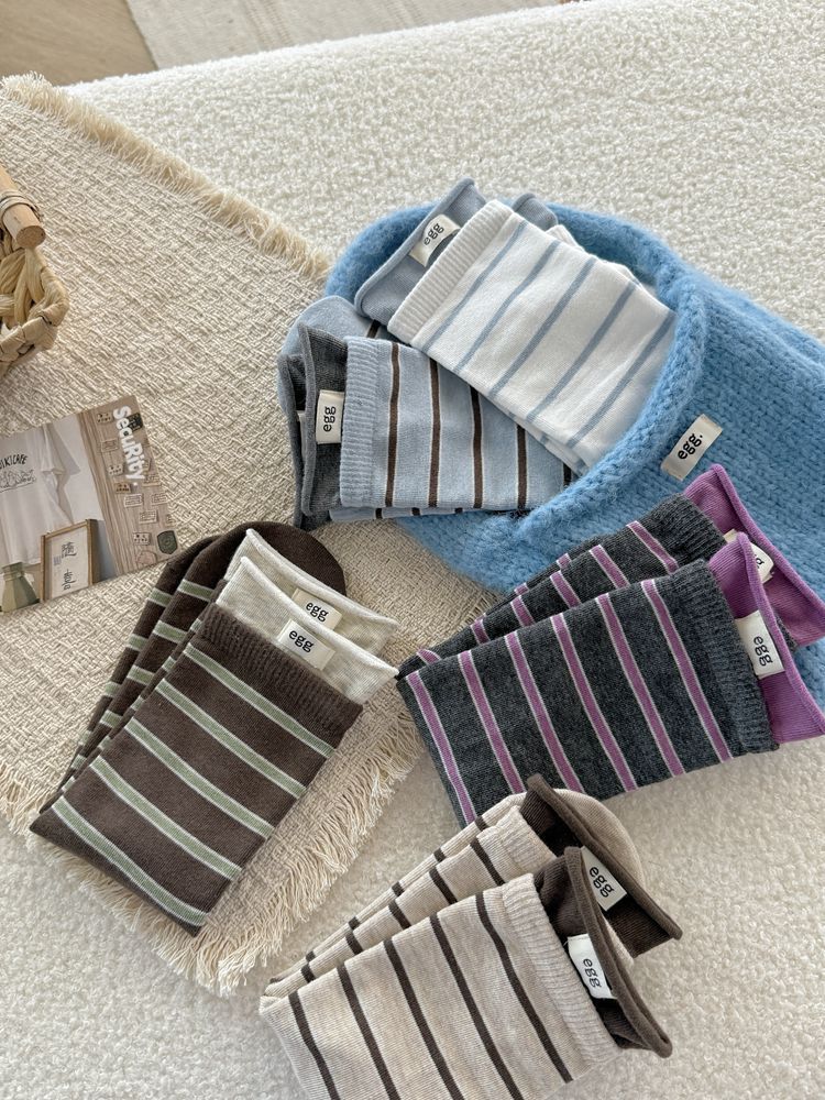 Striped Autumn and Winter Socks with Vintage Color-Blocking Fabric Labels, Ins-Style Ribbed Cuffs, Casual Mid-Calf Versatile Slouch Socks for Spring and Autumn