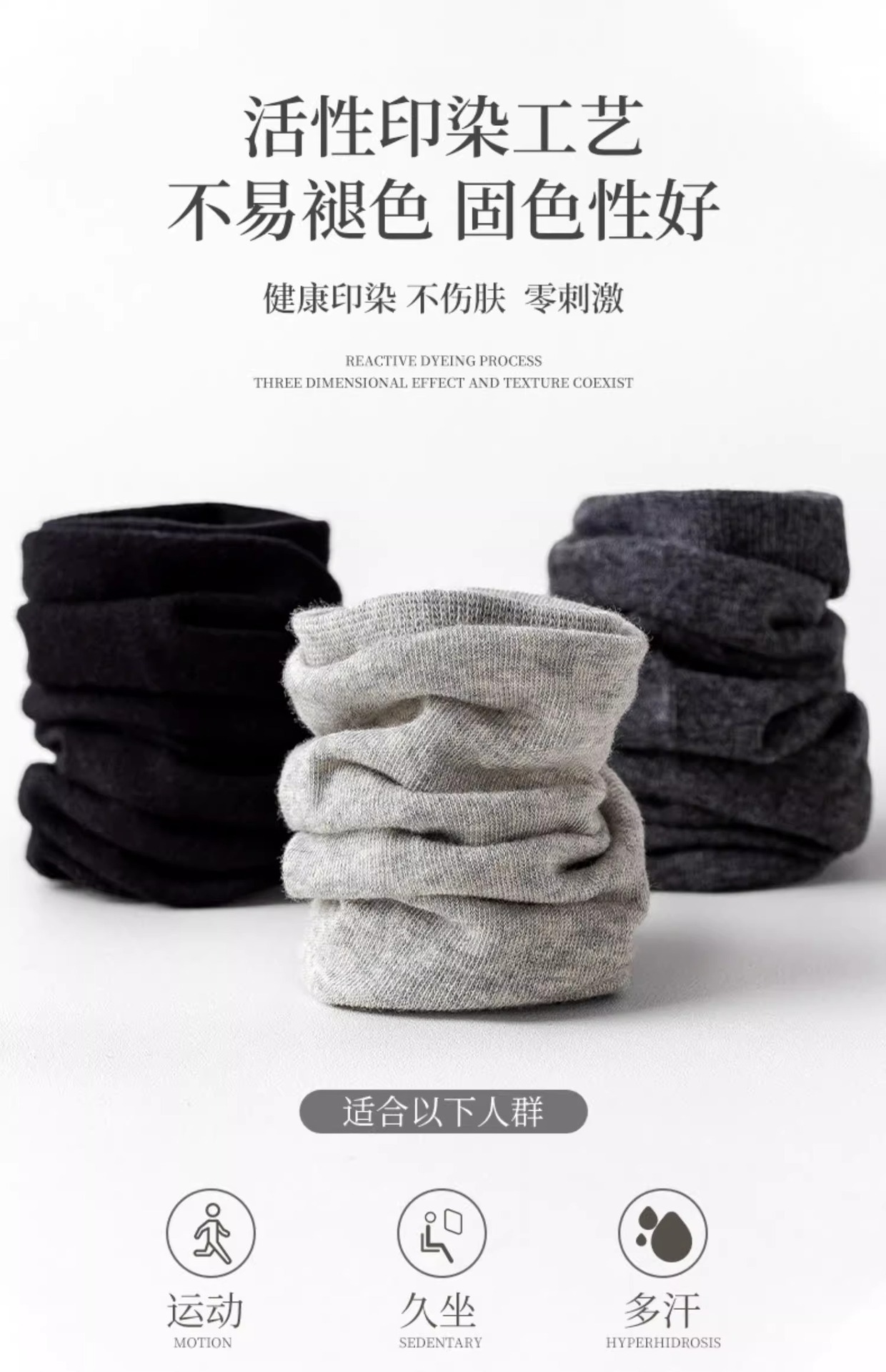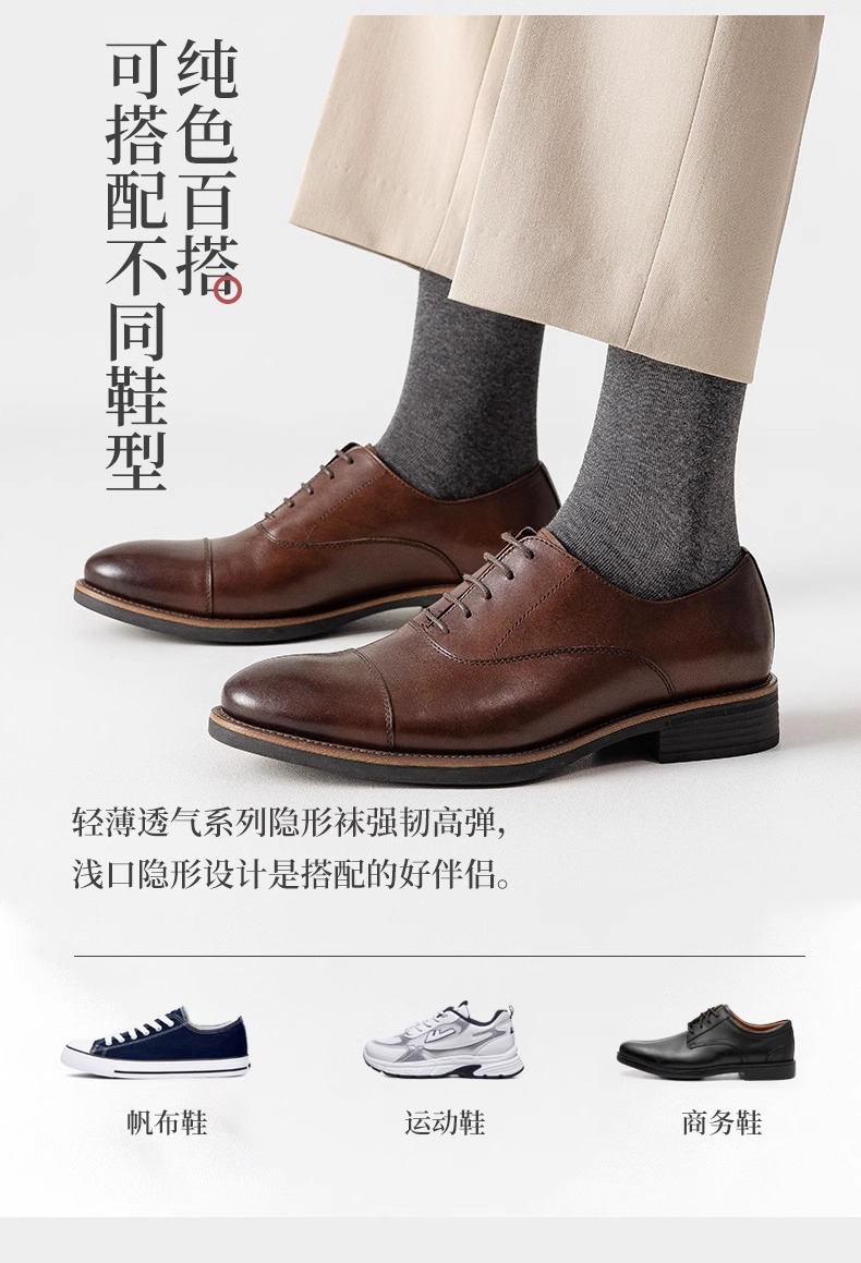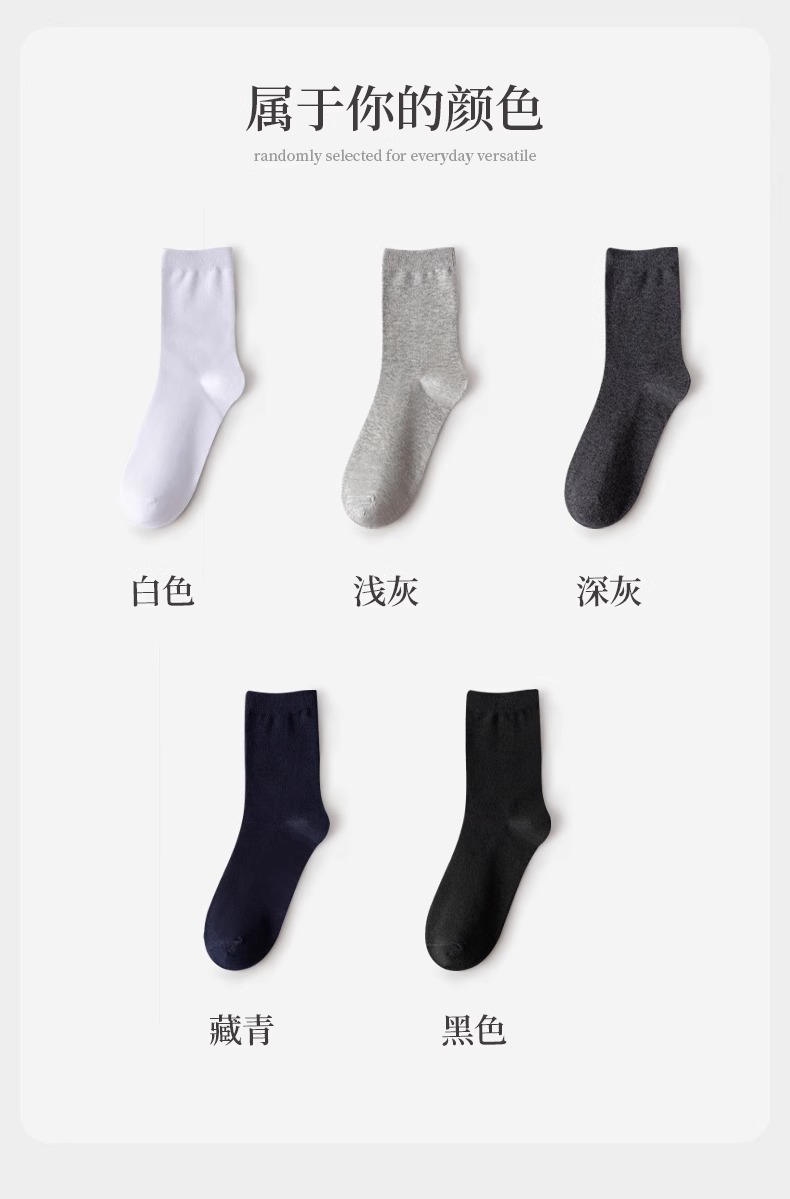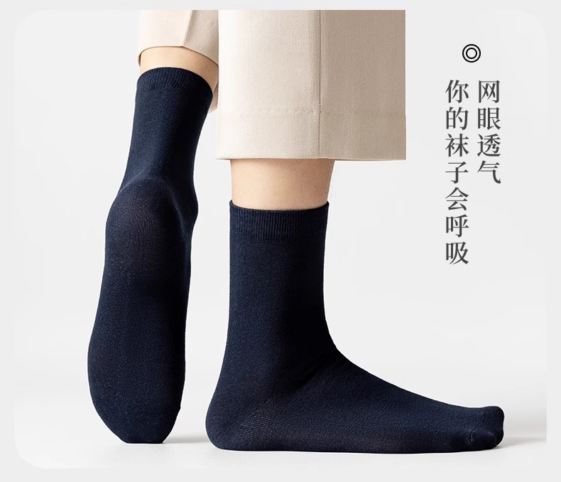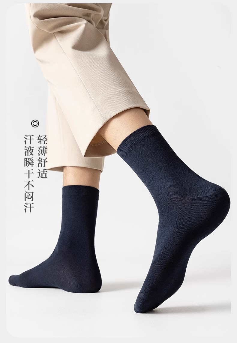 Choice Zhuji Socks Men's Mid-Calf Spring & Fall Breathable, Deodorant and Sweat-Absorbent All-Season Sports Pure Color Business Socks