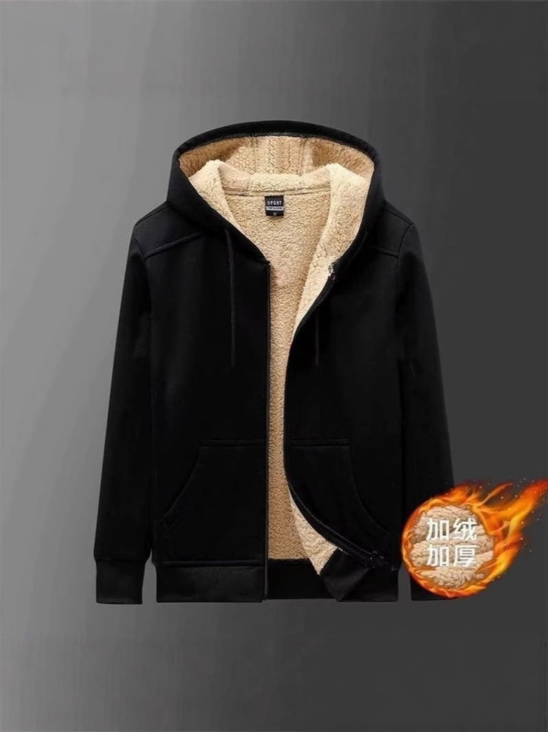 Choice Fleece Sweatshirt Men's Hooded Winter Thickeneded Autumn and Winter Cashmere Zipper Cardigan Men's Casual Sports Jacket