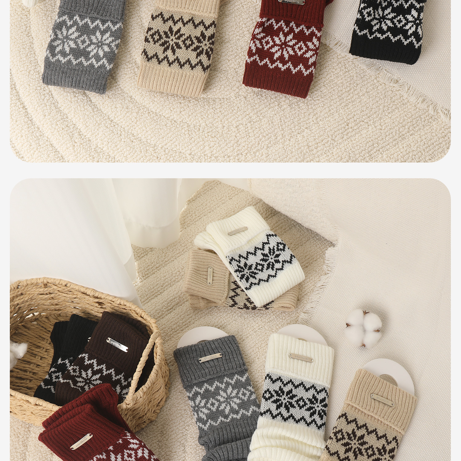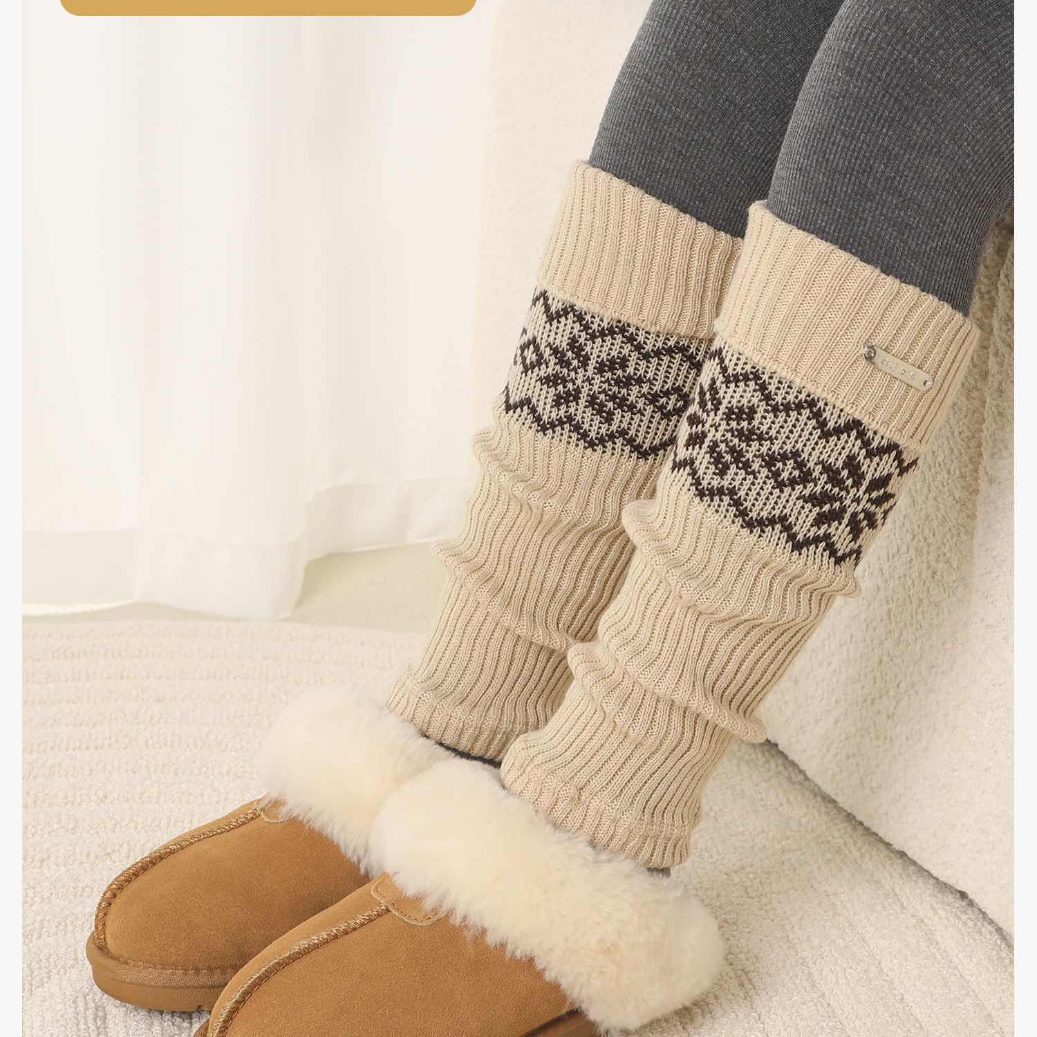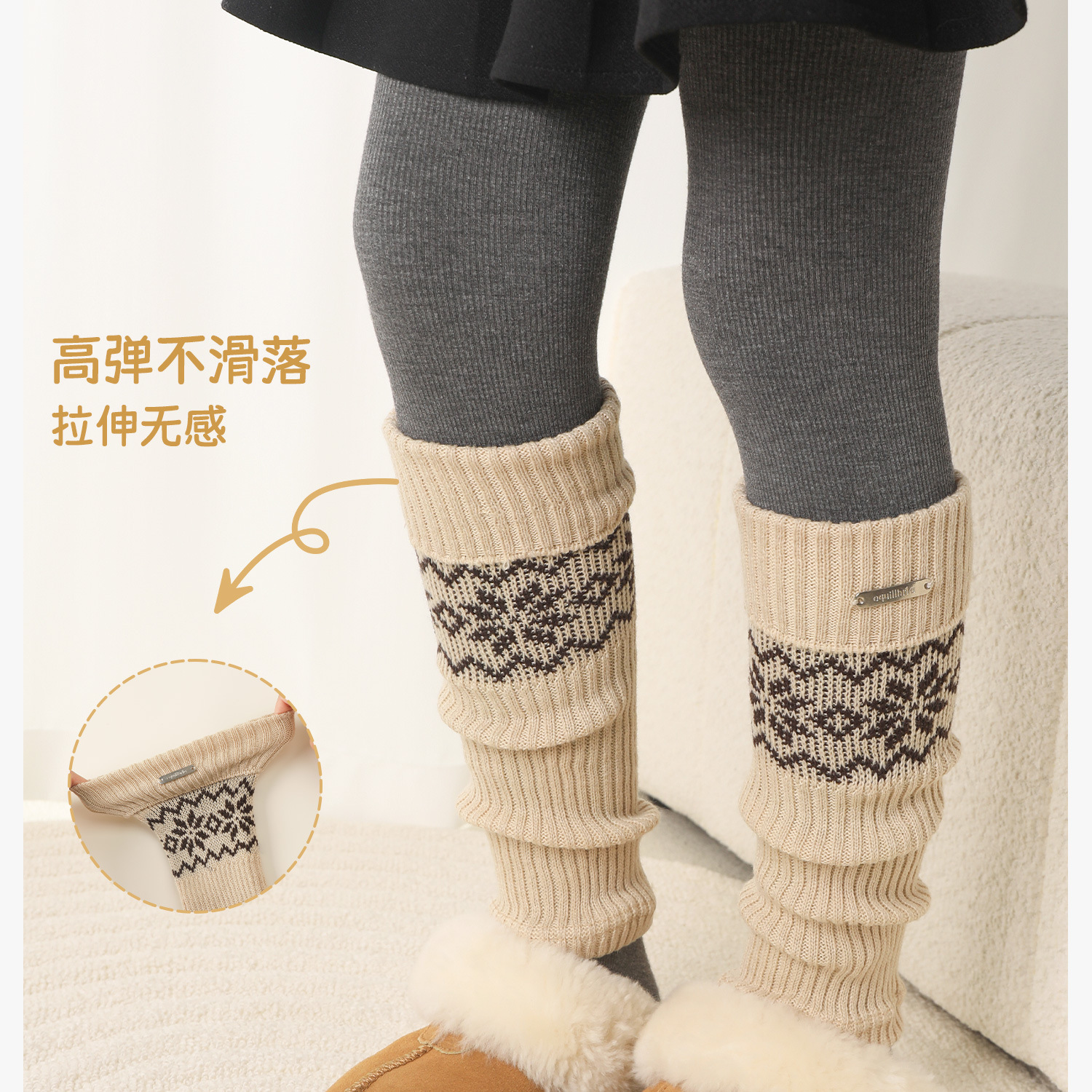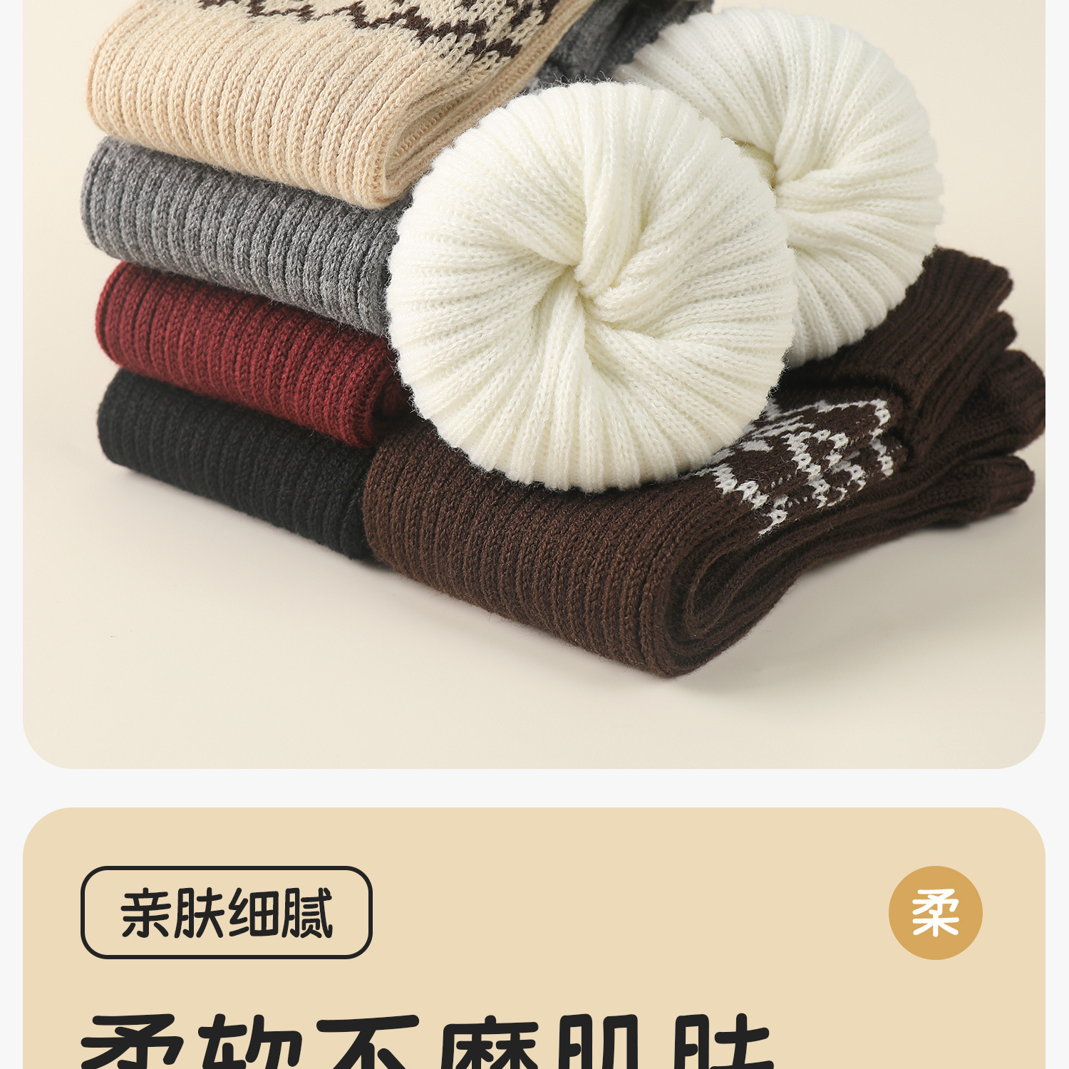 Children's Socks Spring & Fall Girls' Pile Stockings Retro Fair Isle Style Autumn and Winter Girls' Silver Label Calf Socks