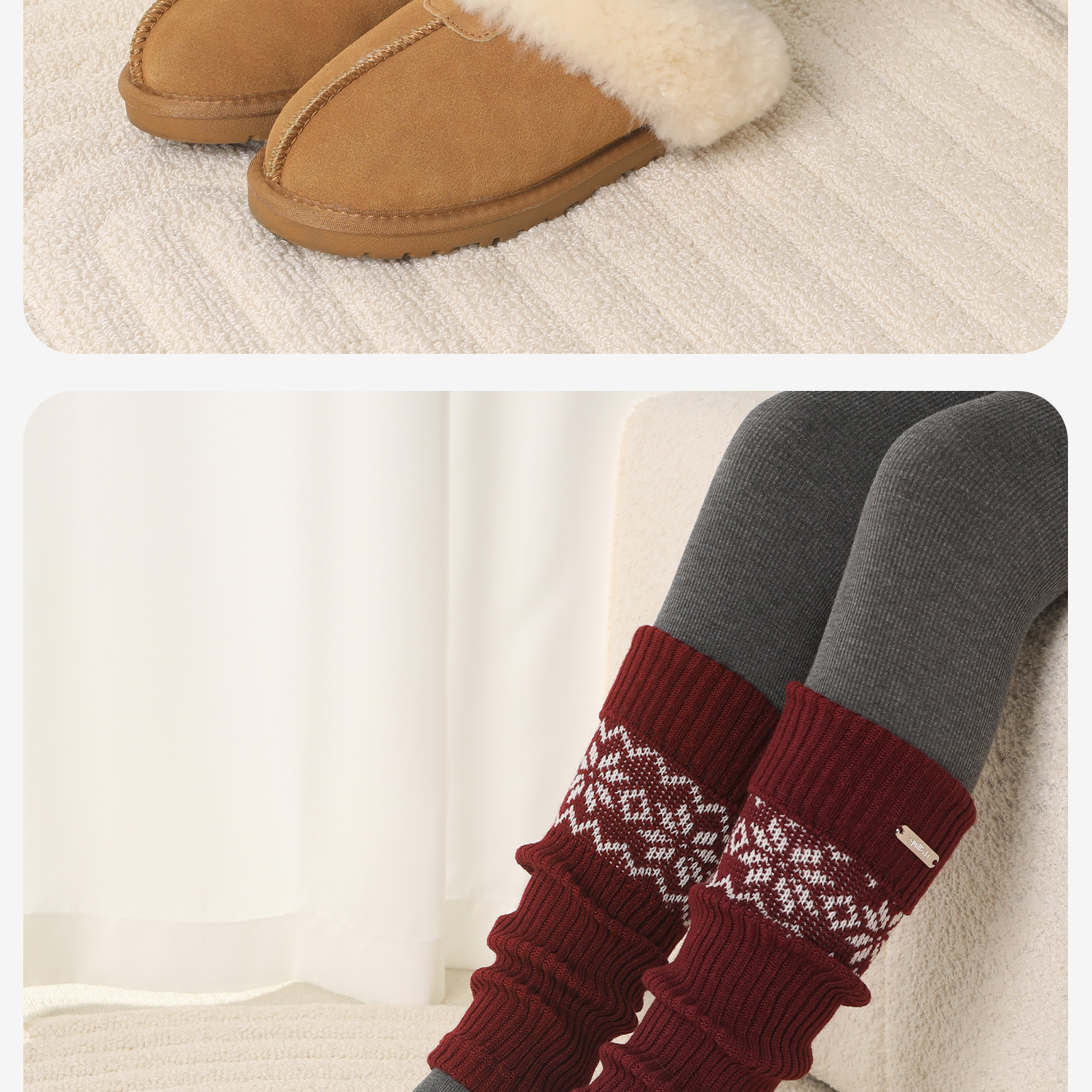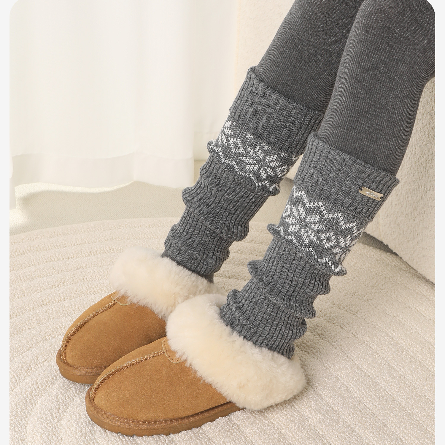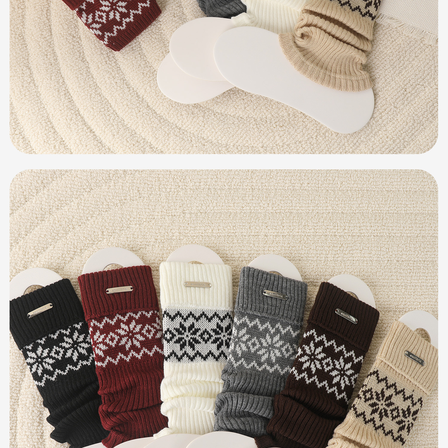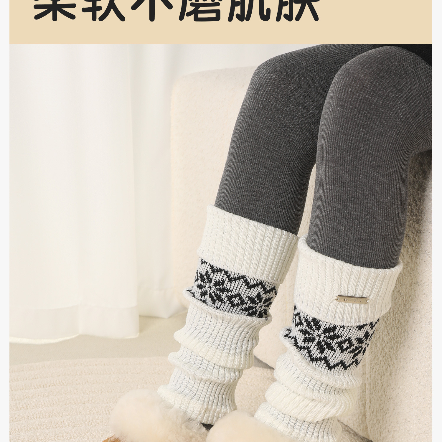Children's Socks Spring & Fall Girls' Pile Stockings Retro Fair Isle Style Autumn and Winter Girls' Silver Label Calf Socks