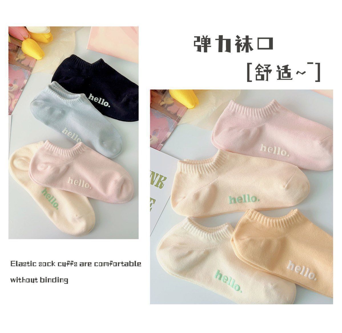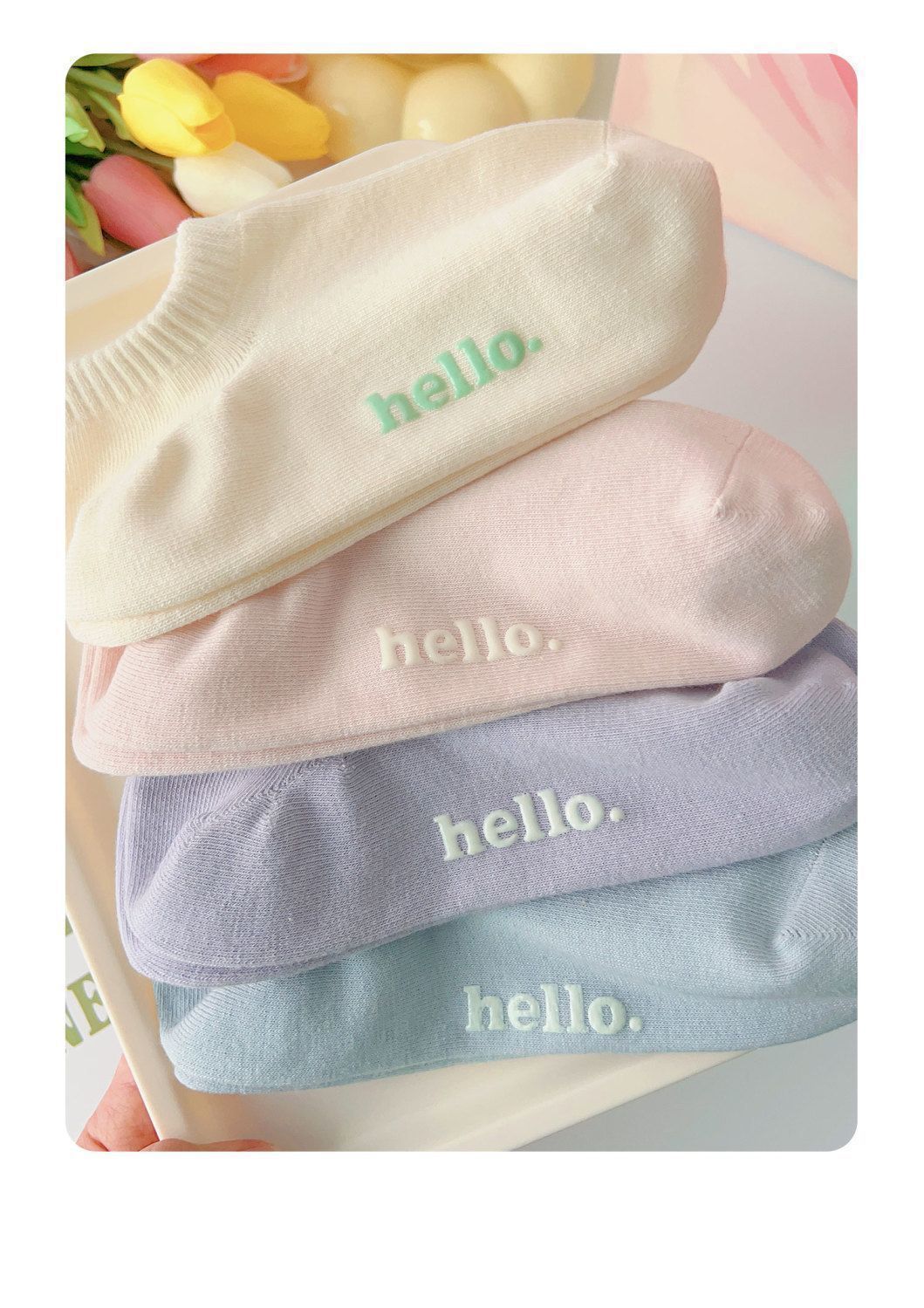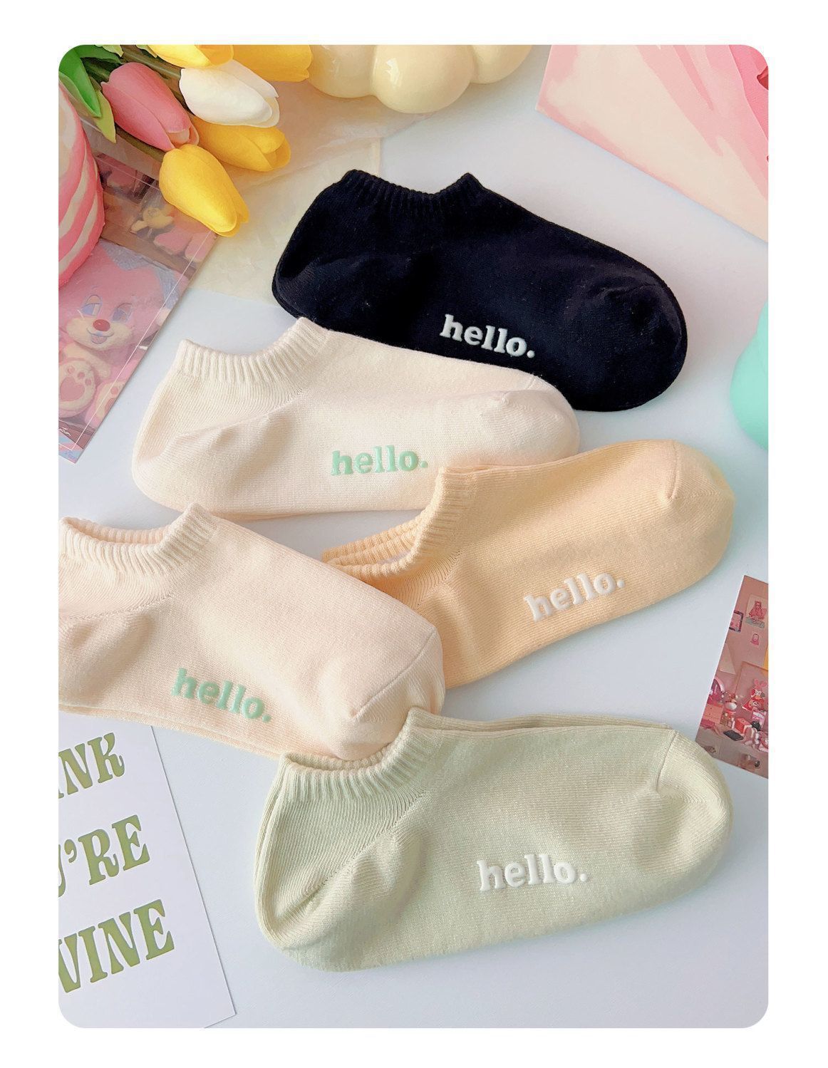 Spring and summer thin socks ins style cream letter women's socks breathable non-falling heel boneless boat socks for women