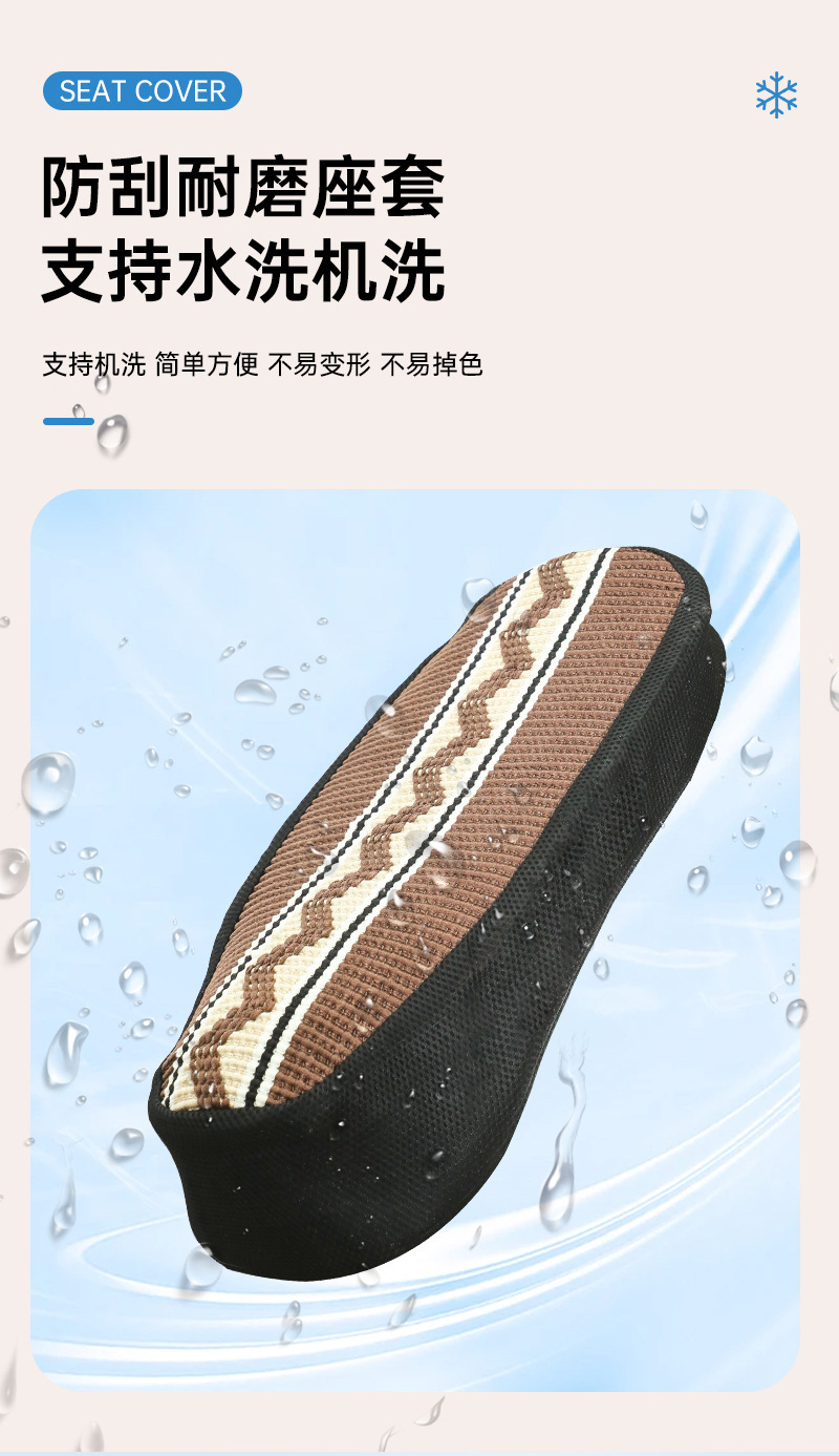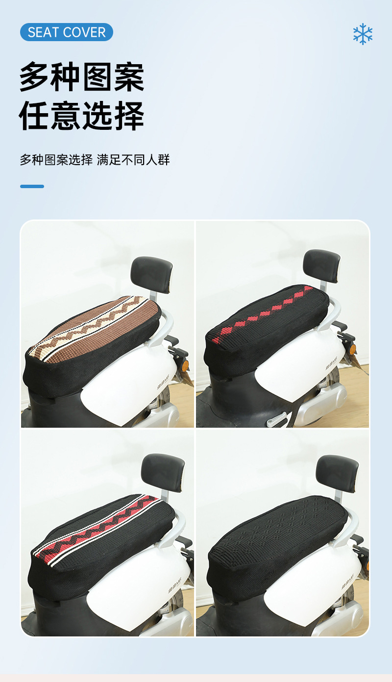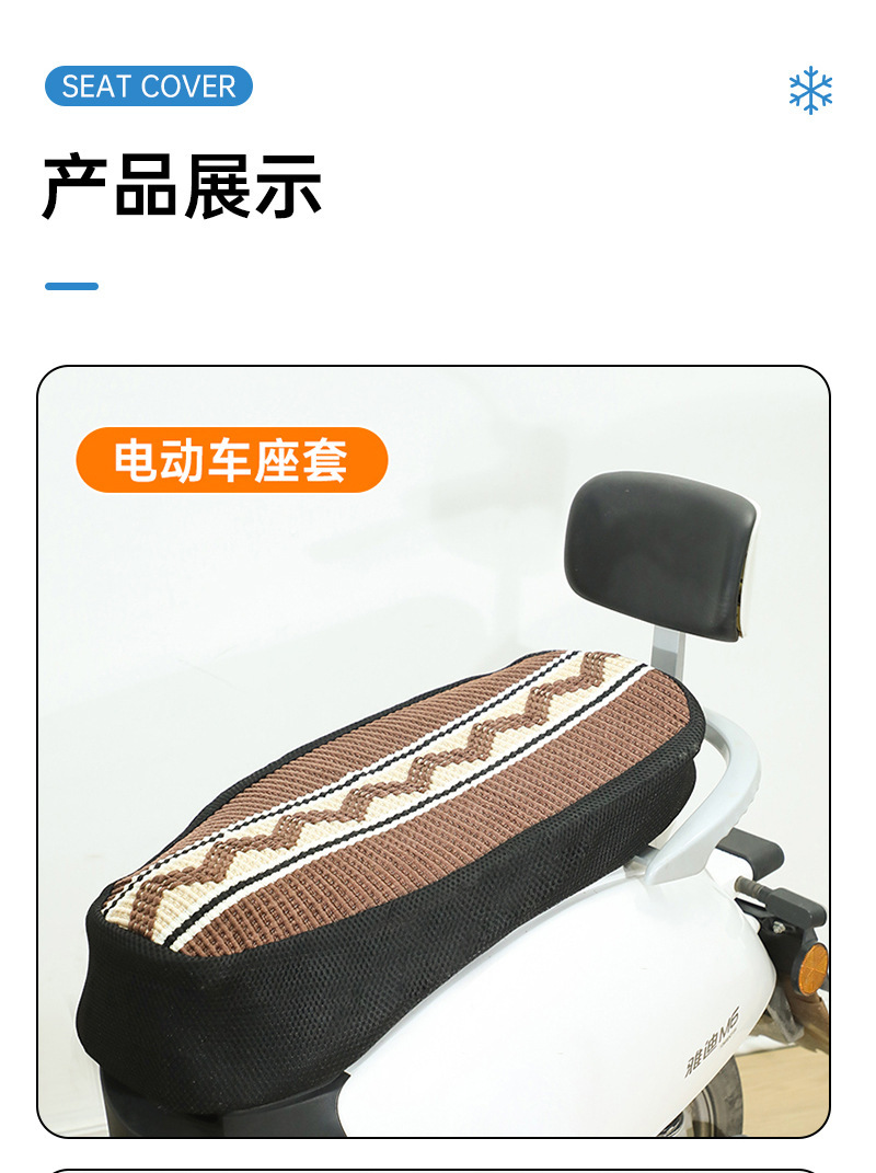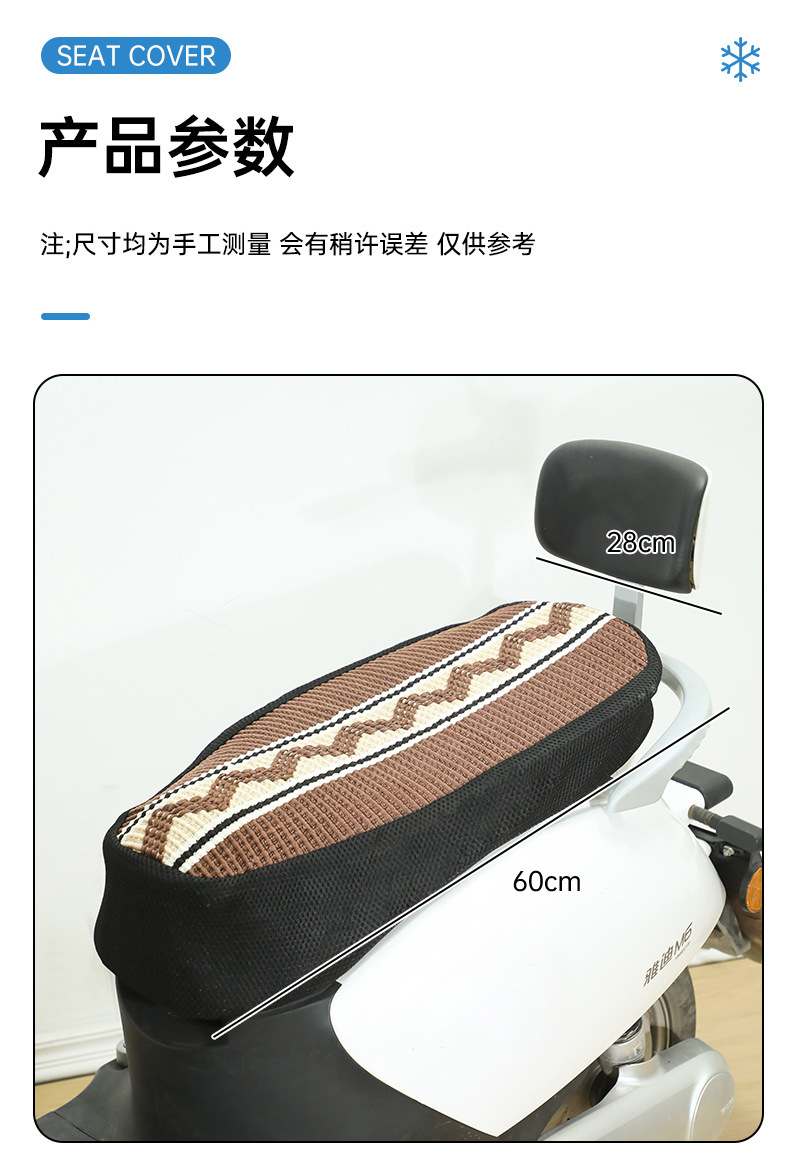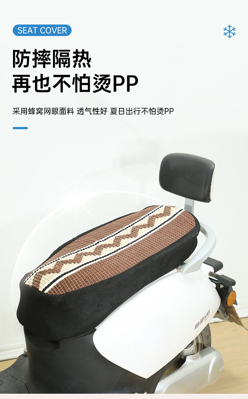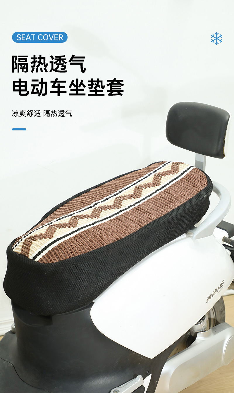 Electric motorcycle ice silk seat cover (l) brown diamond shape