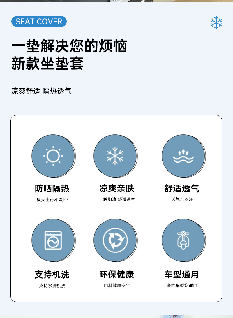 Electric Vehicle Seat Cover, Sun Protection and Heat Insulation, Electric Motorcycle Ice Silk Breathable Thickened Electric Vehicle Seat Cushion Cover, Battery Vehicle Cooling Seat