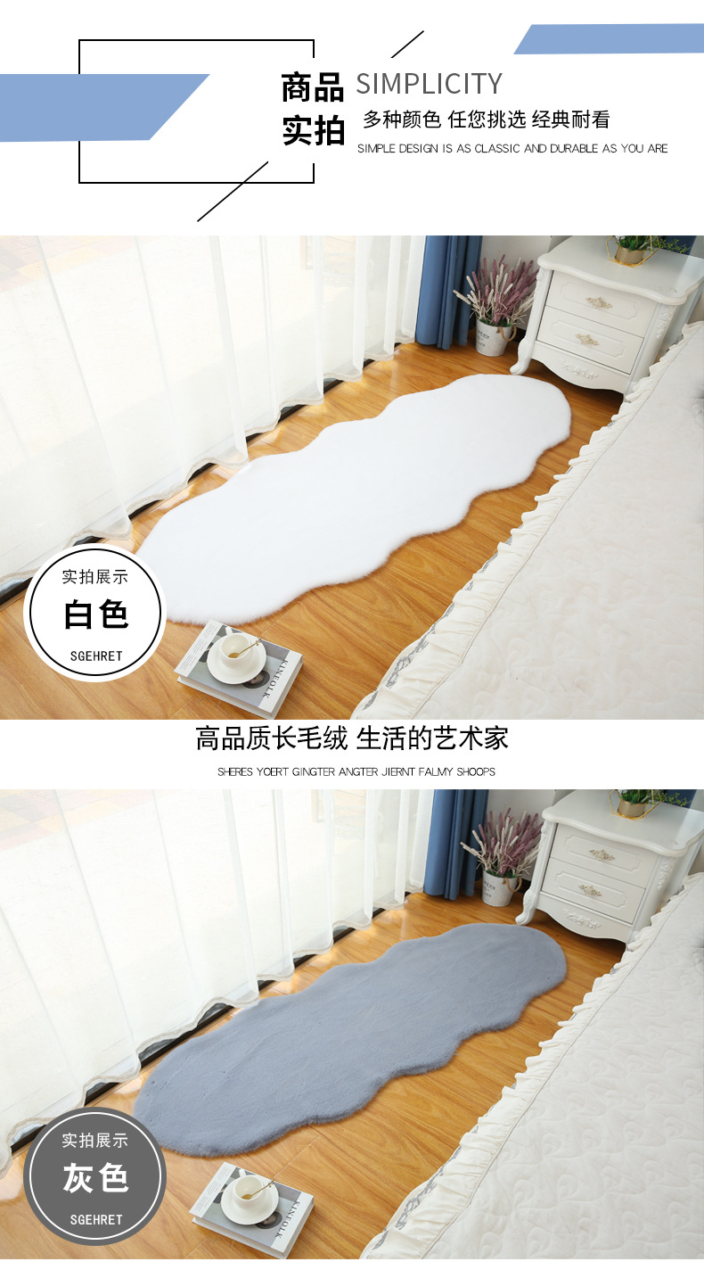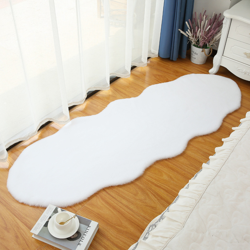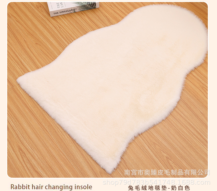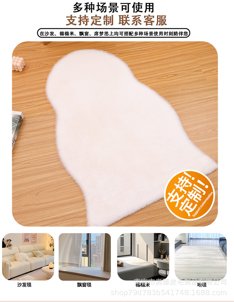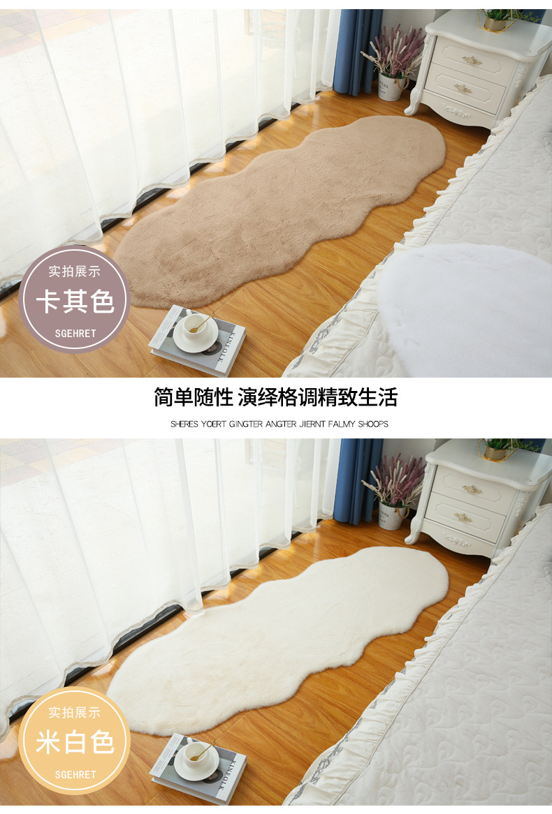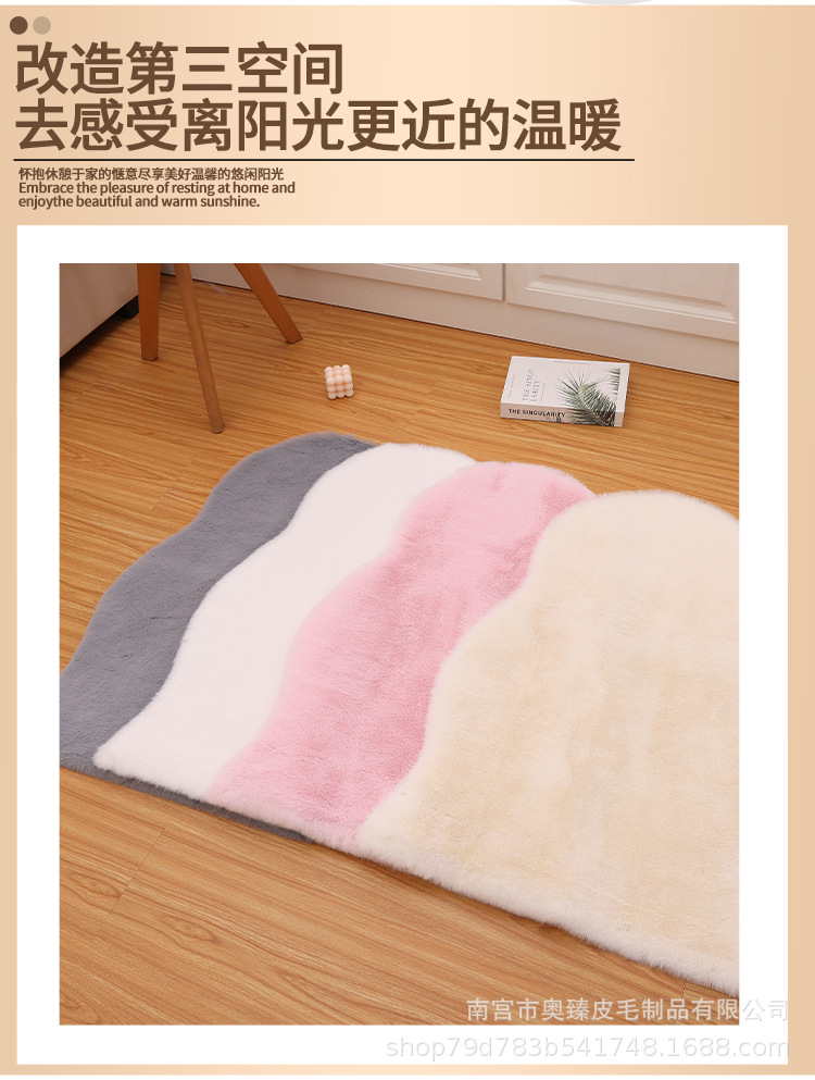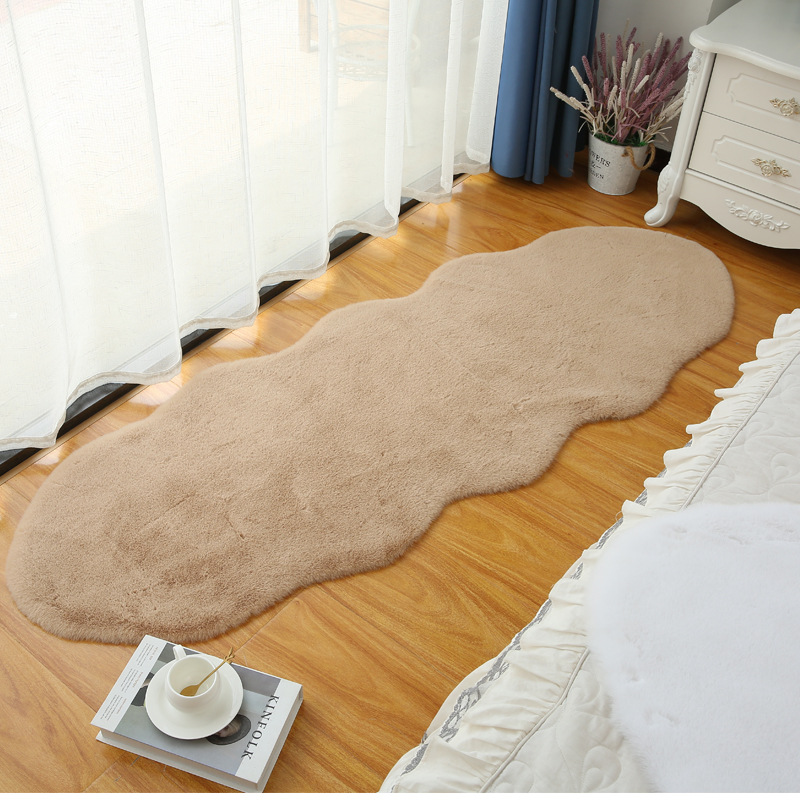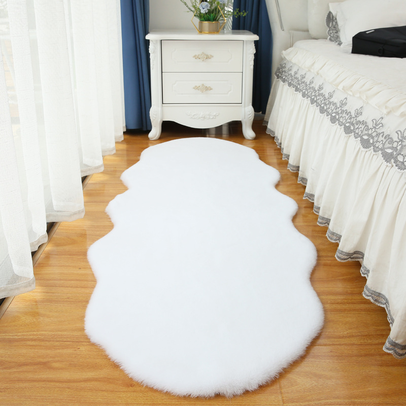 Carpet for Living Room and Bedroom, Irregular Coffee Table Rug, Bedside Blanket, Thick Bay Window Cream Style, High-End Faux Rabbit Fur Cushion