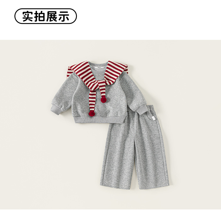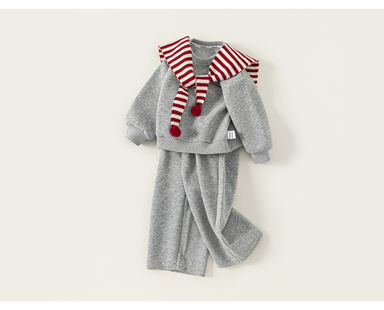 Bangxuan Children's Clothing Spring and Autumn Round Neck Sweatshirt Straight Pants Red Shawl Girls Three-Piece Set Holiday Baby Outfit