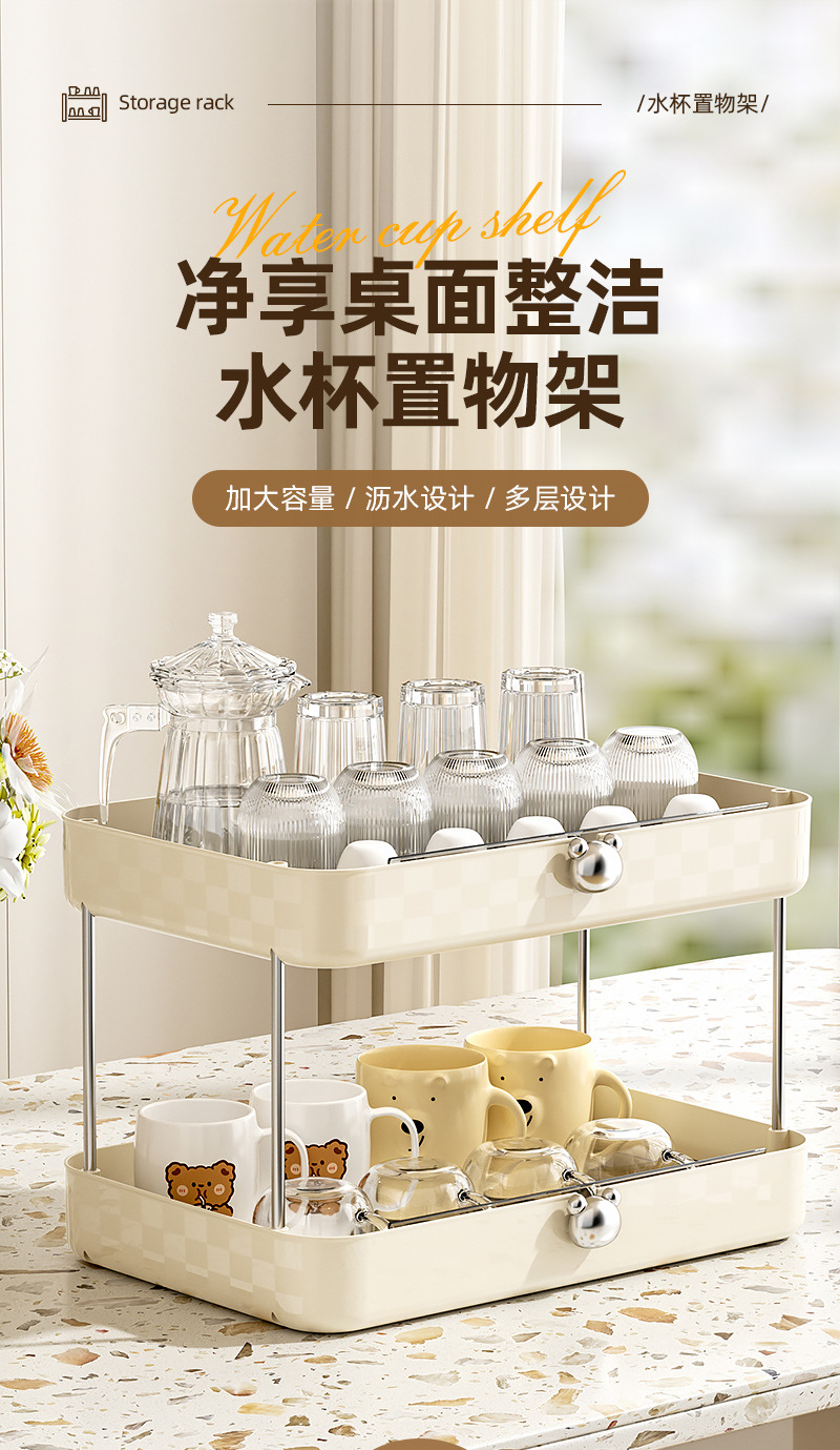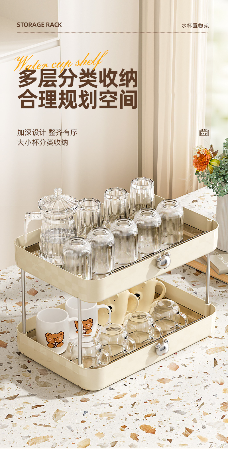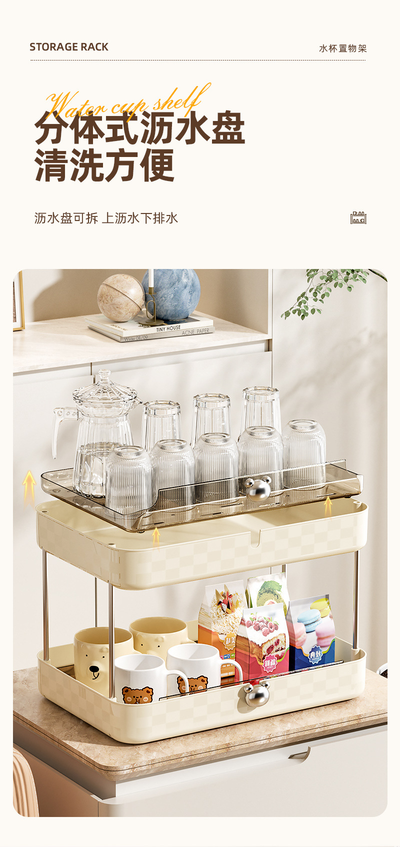 Household Water Cup Storage Rack with Tray Tea Cup Tea Set Storage Rack Drain Cup Holder Dining Table Cup Storage Rack