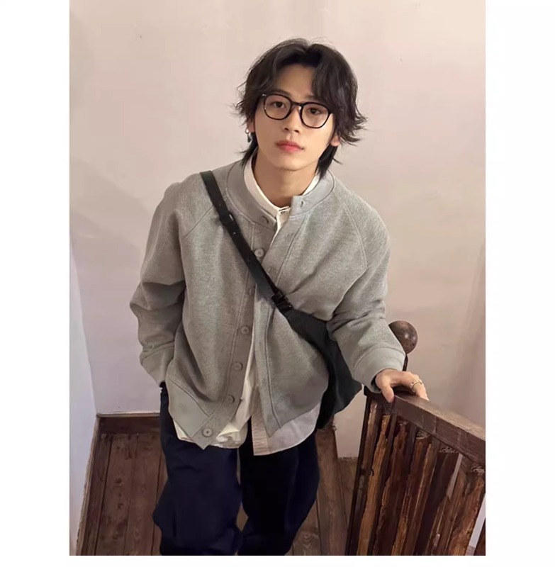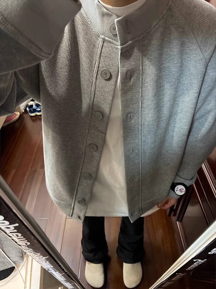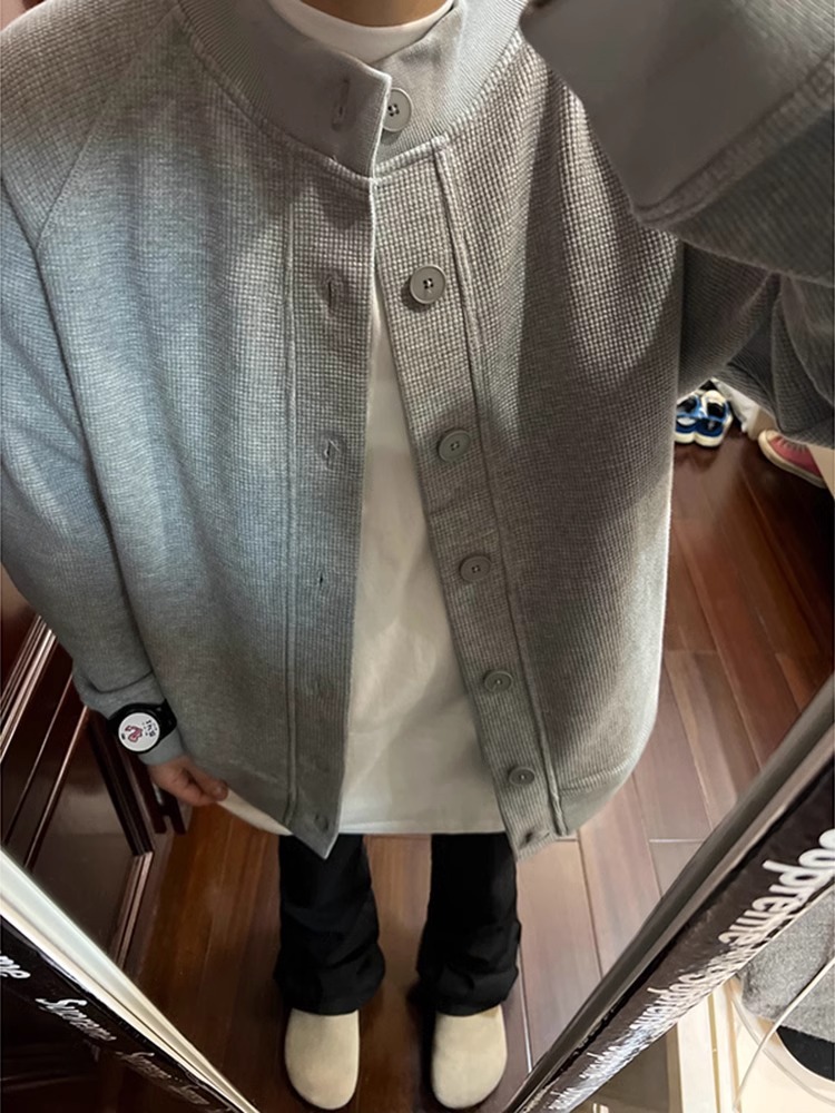 Choice Spring and Autumn Thick Waffle Cardigan Jacket Korean Style Trendy Round Neck Sweater Men's Casual Loose High-End Feel