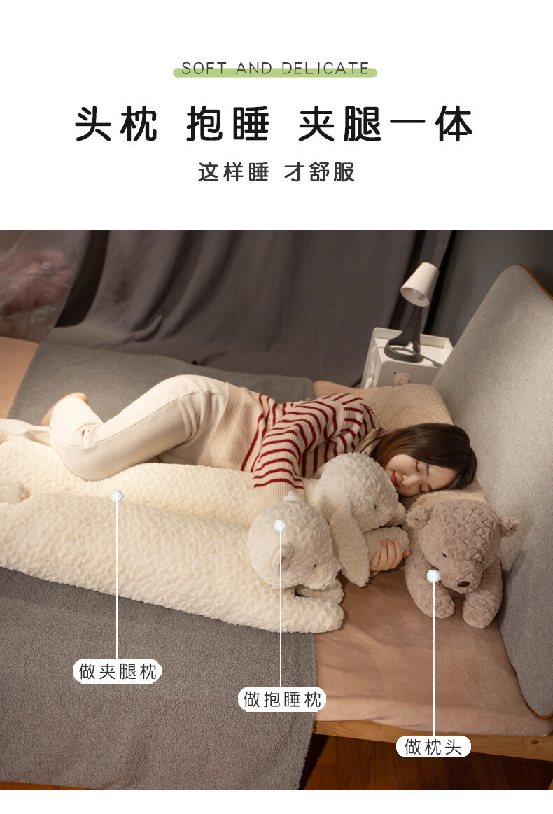 Small Animal Long Pillow for Girls to Sleep On, Special Side Sleeping Leg Clamp Artifact, Cylindrical Pillow, Bed Pillow
