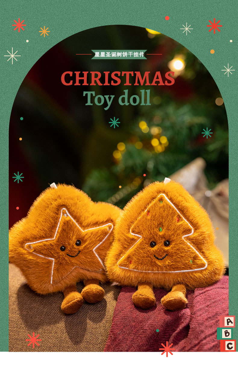 Fun Star-Shaped Christmas Tree Cookie Plush Doll Pendant Ins-Style Decoration Keychain Wedding Toss Doll