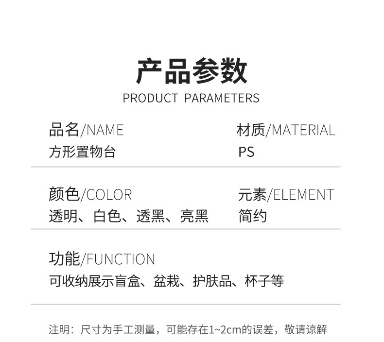 Acrylic Porcelain White Square Display Stand Box Black Box Wedding Holiday Display Stand Shopping Mall Jewelry Bottom Storage Box