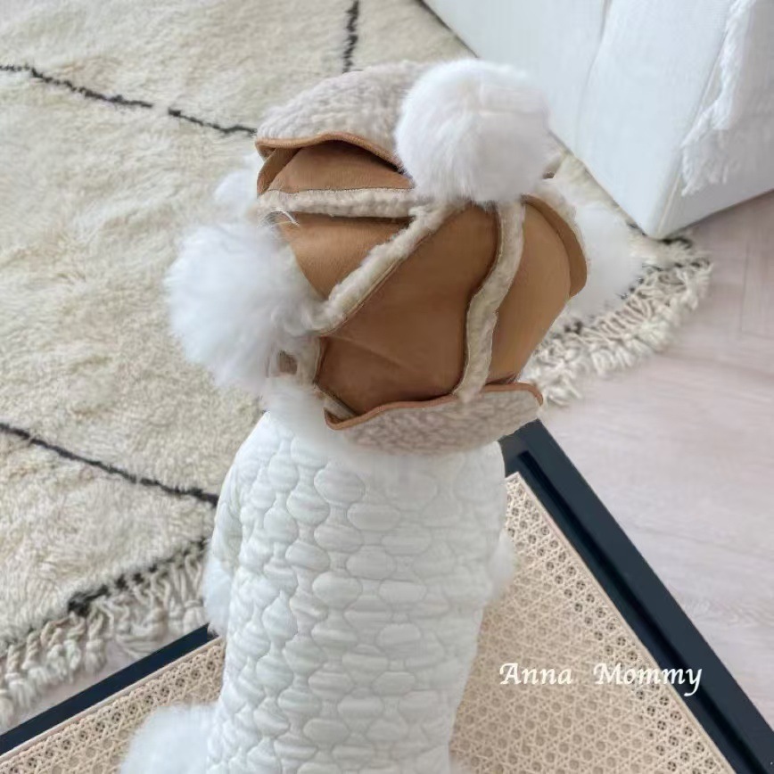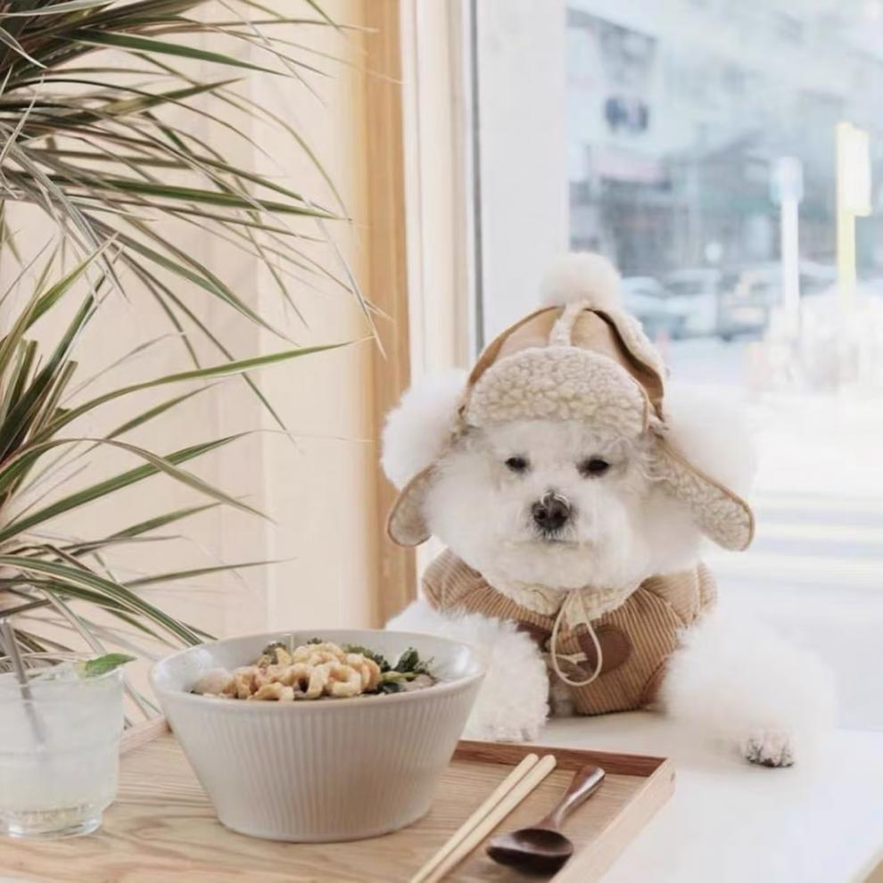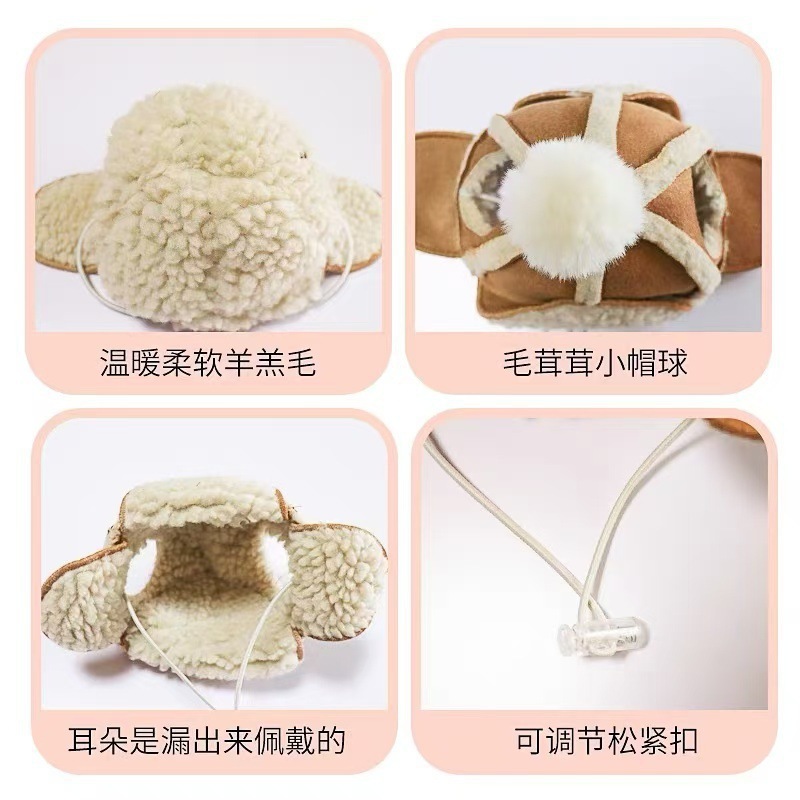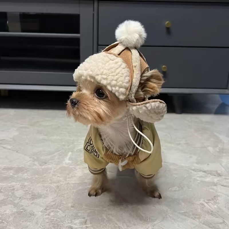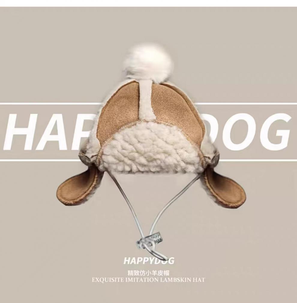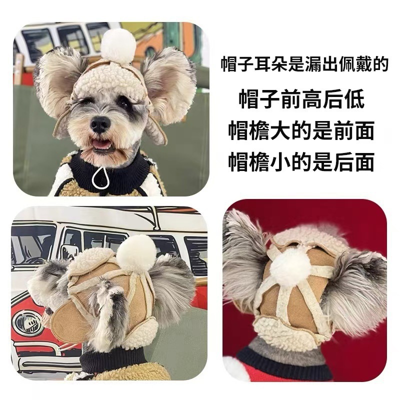 Dog Hat Fleece-Lined to Heattech in Autumn and Winter Teddy Bichon French Dou Shiba Inu Schnauzer Pet Headwear Hat Imitation Goatskin Hat