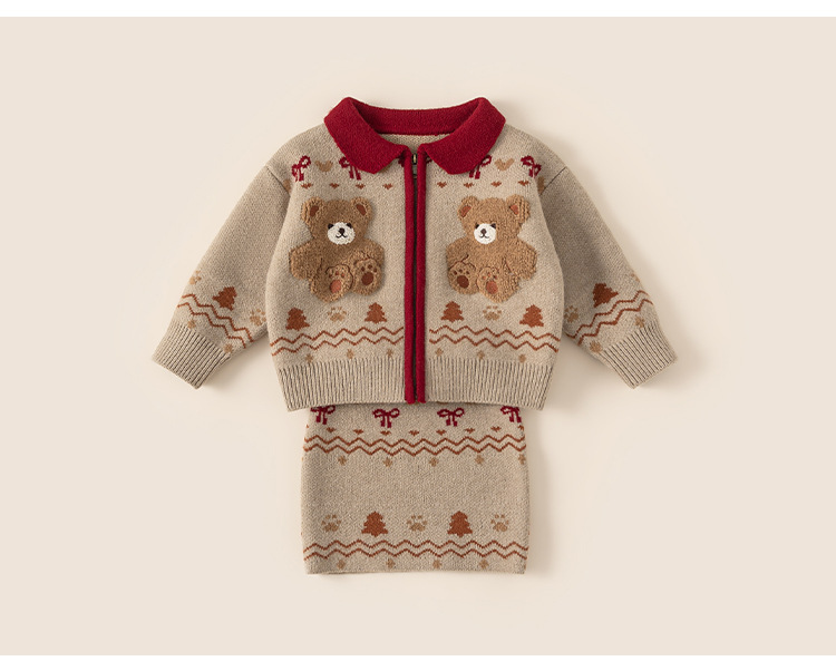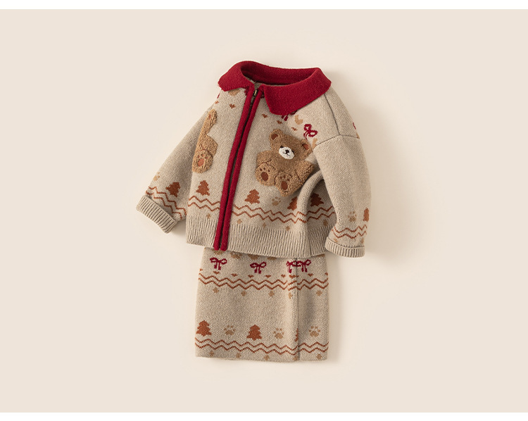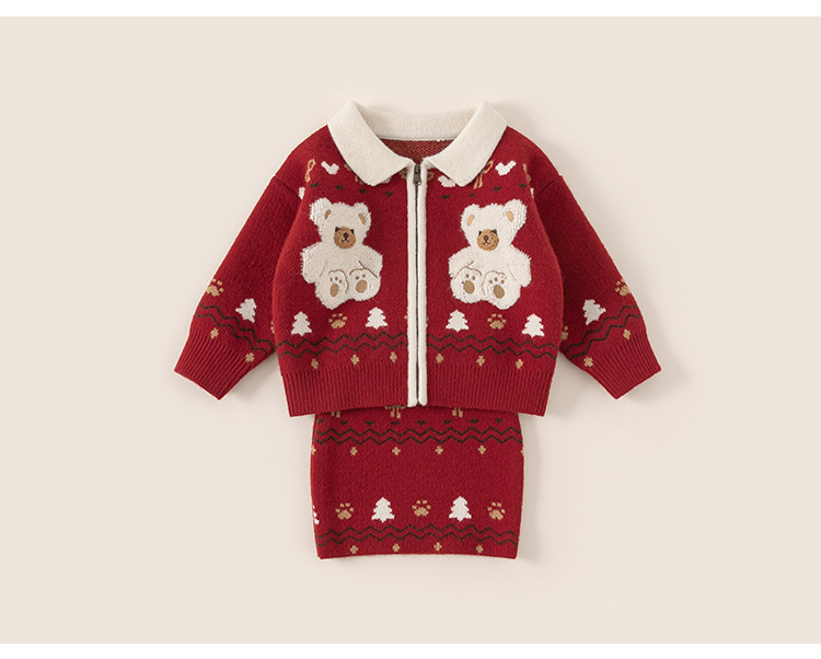 Children's Clothing Set for New Year: Toddler Sweater Jacket and Skirt Two-Piece Set for Girls, New Year Outfit