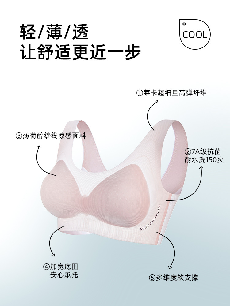 Seamless Beautiful Back Bra for Women, Push-Up, Cool, Breathable, Thin Bra, Invisible Soft Support Vest Style, No Rims Bra