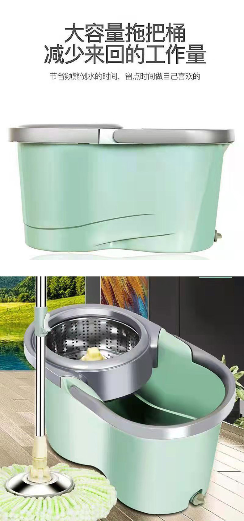 Rotating Mop Set for Home Use, One-Step Cleaning, Hands-Free Lazy Mop, Automatic Spin-Dry Mop with Round Head