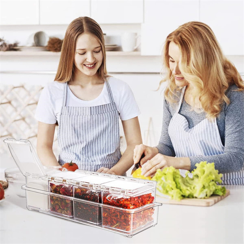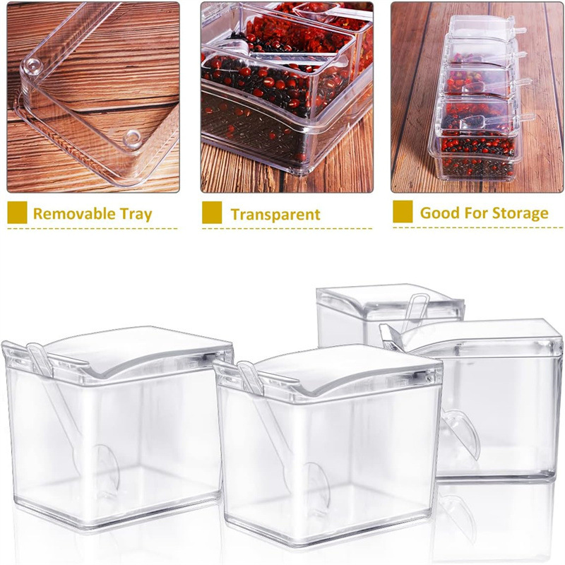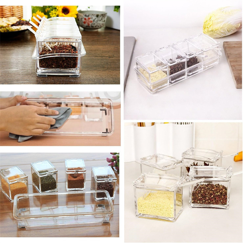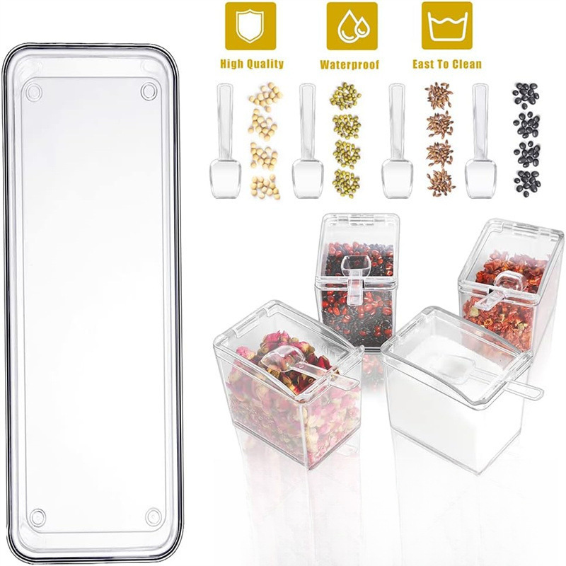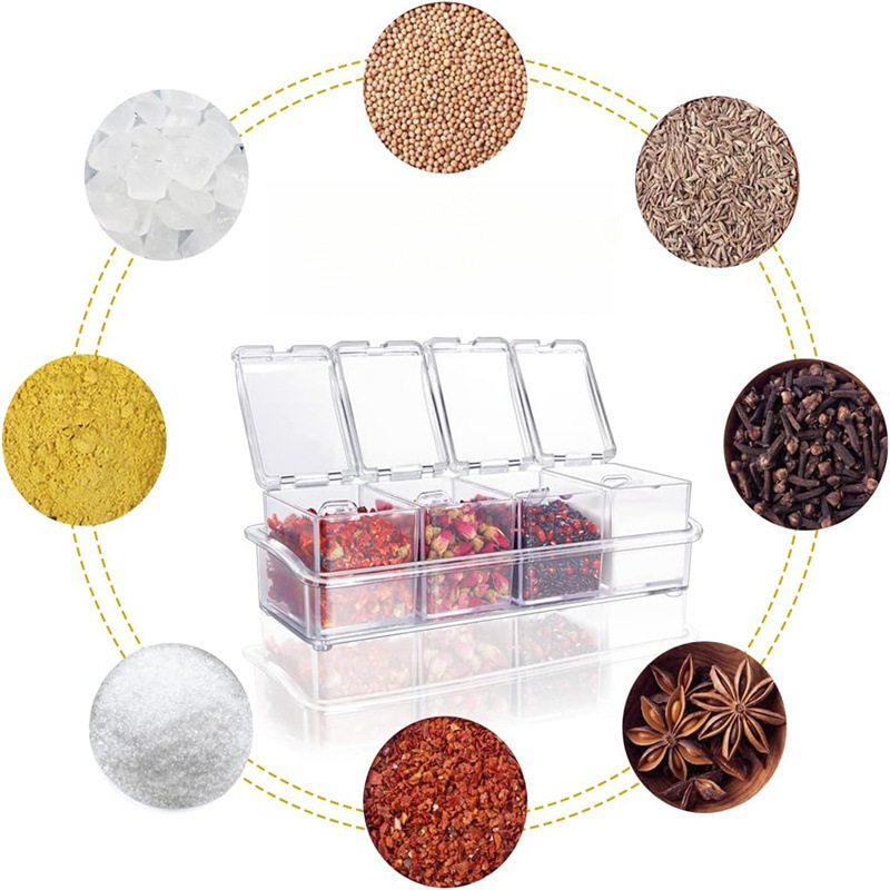 Cross-Border Transparent Seasoning Box Seasoning Jar with Lid for Household Kitchen Salt Sugar Msg Four-In-One Multi-Piece Storage Set