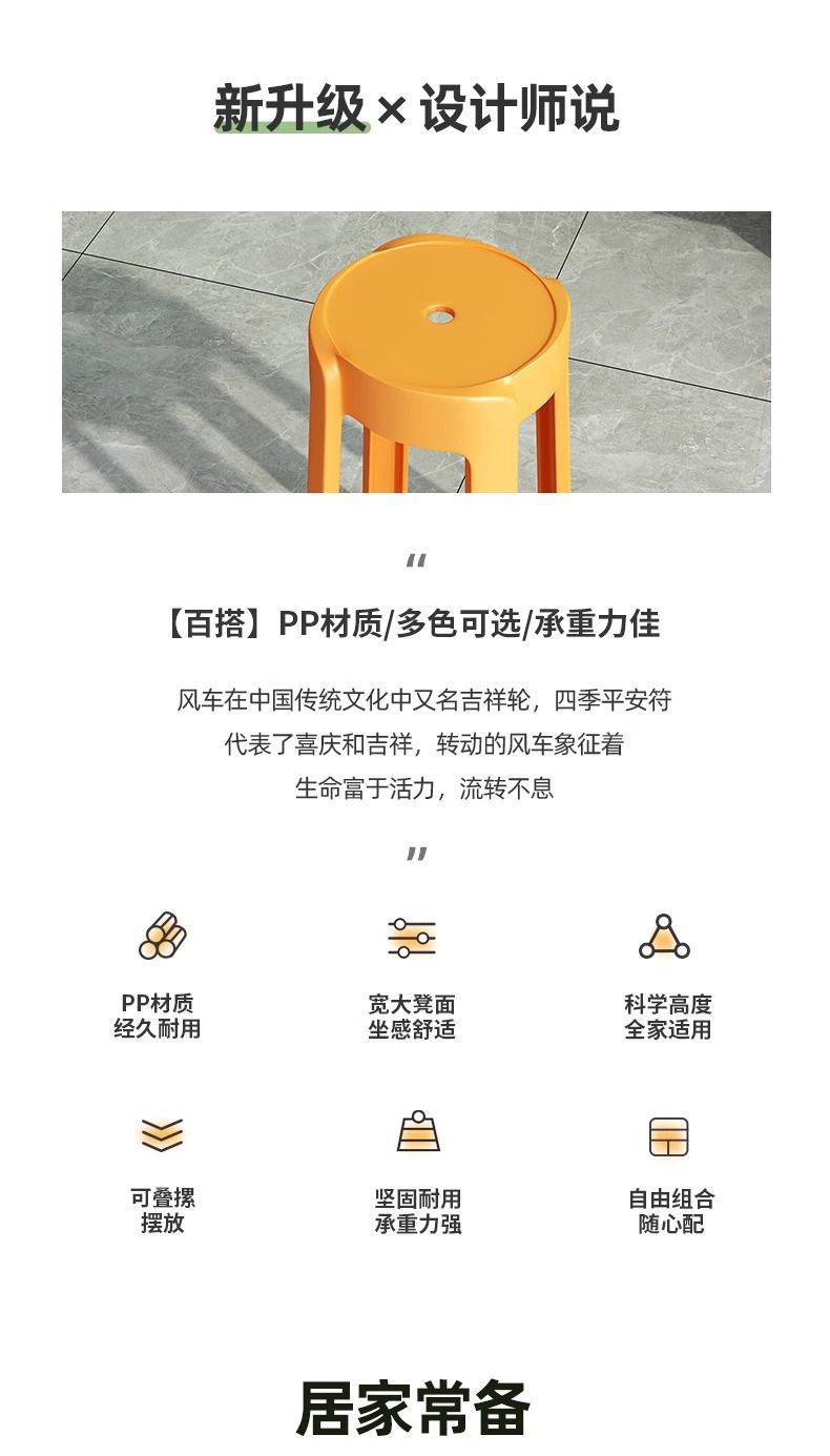 Stackable High Stools for Home Use, Thickened Plastic Stools, Modern Simple Plastic Large Whirlwind Stools, Stackable Windmill Benches