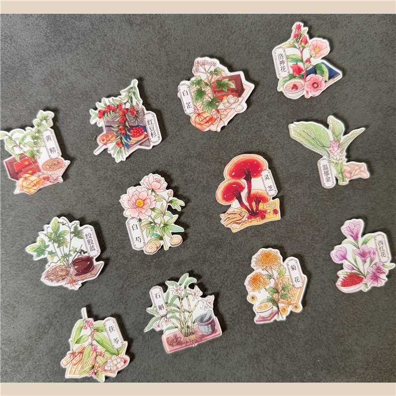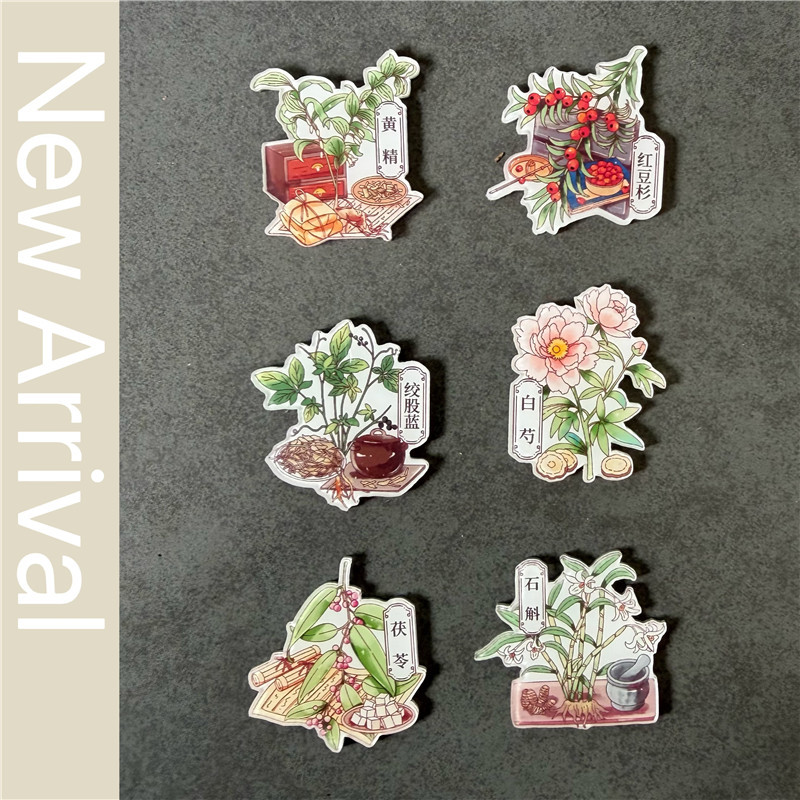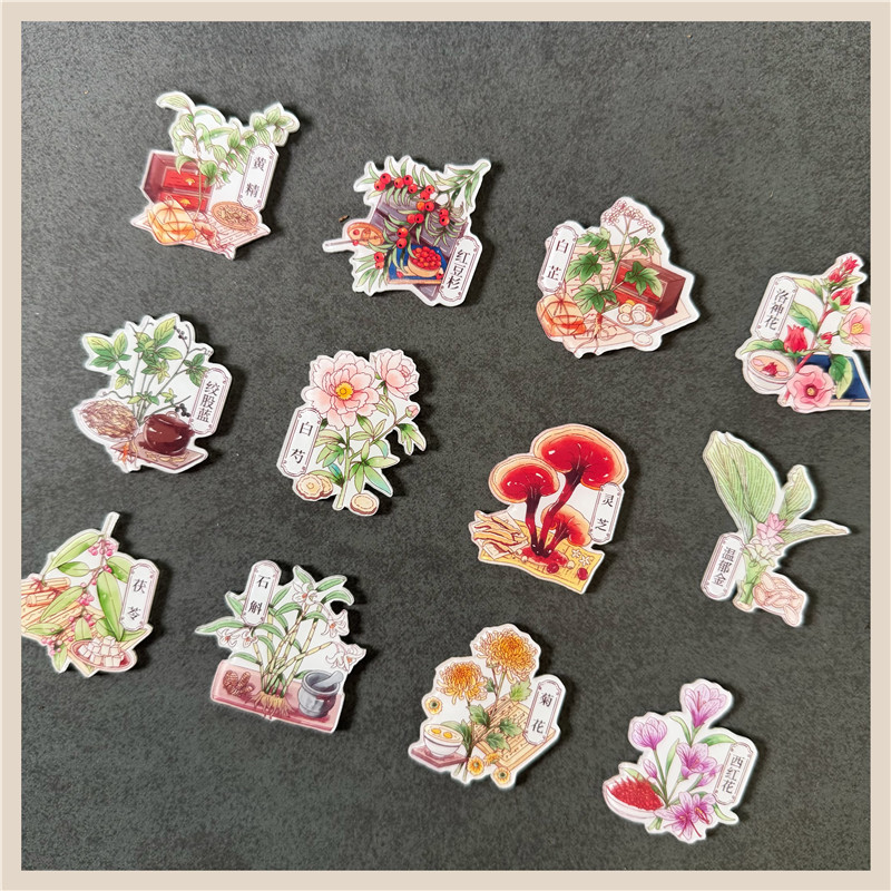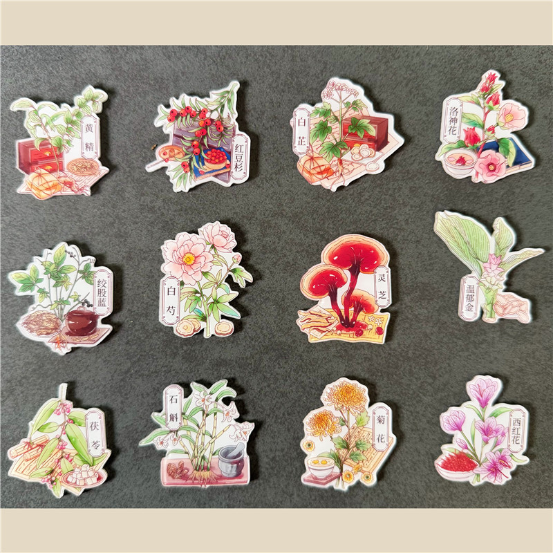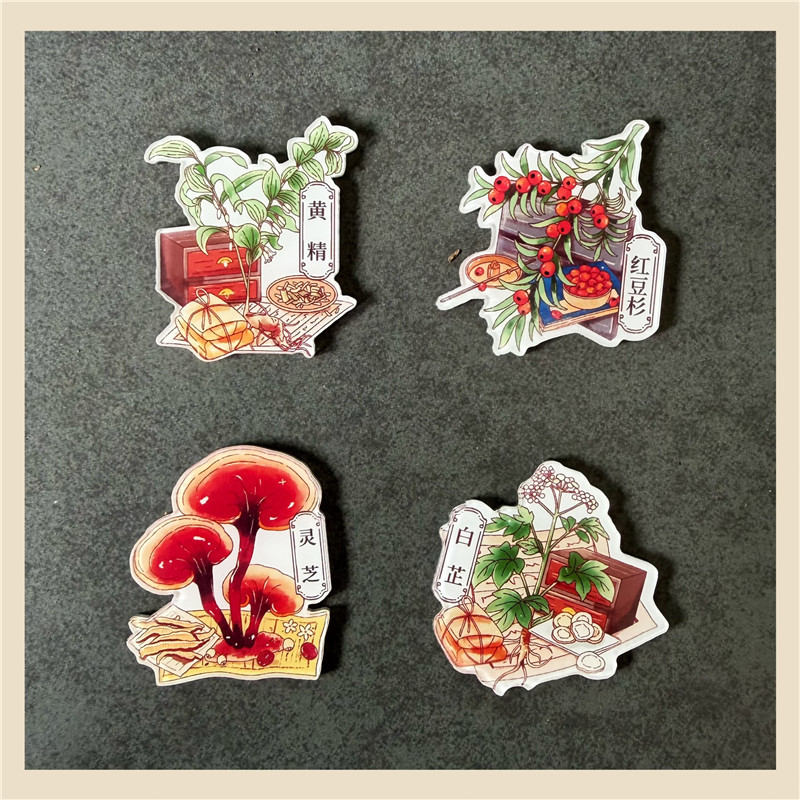 Choice Chrysanthemum, Ganoderma, Dendrobium, Roselle, Yew, Refrigerator Magnet, Decorative Magnet, Popular Science Medicinal Materials Magnet, Gift for Friends