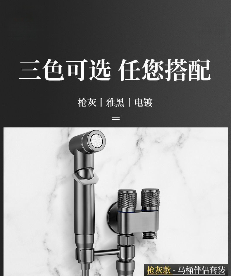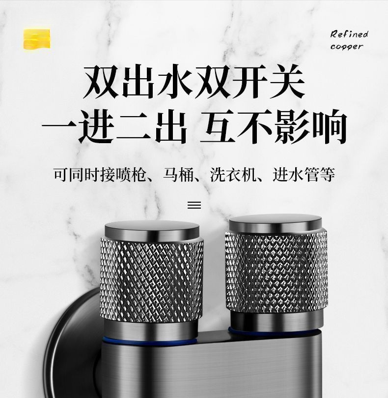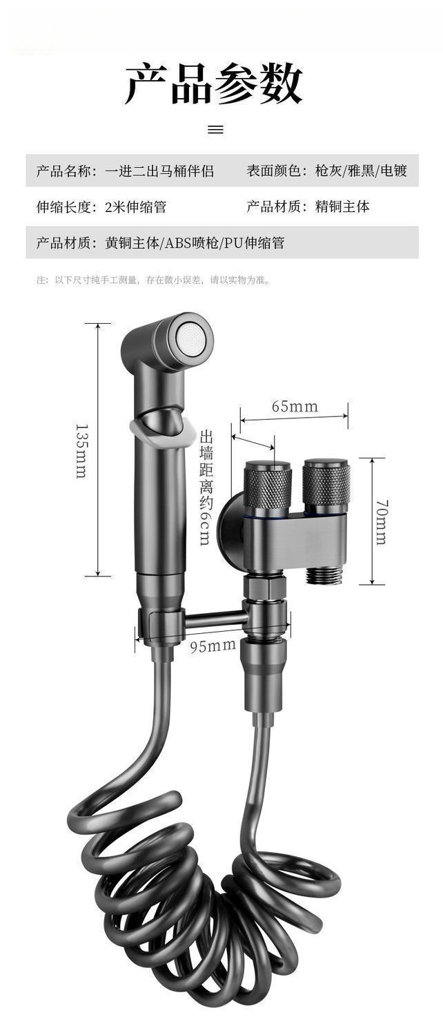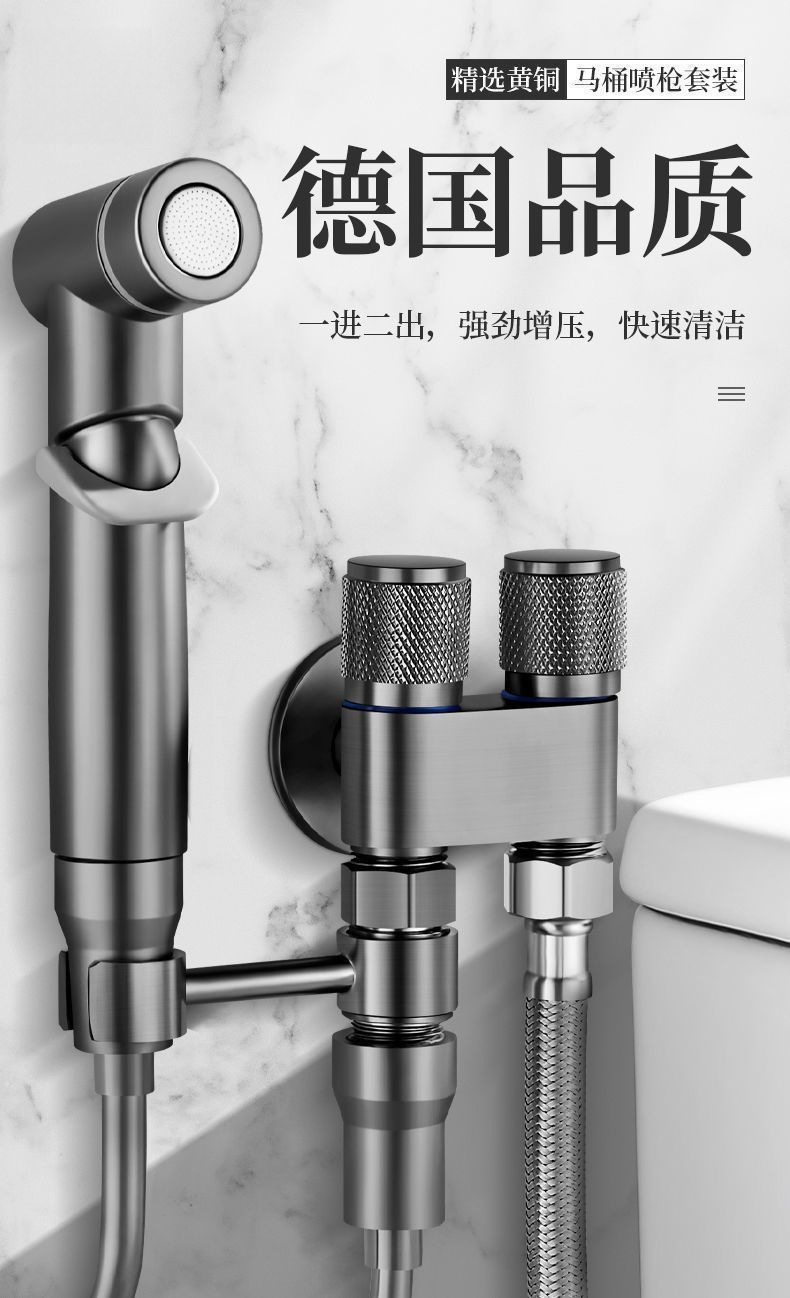 All-Copper New High-End Toilet Companion with One Inlet and Two Outlets, Dual-Control Dual Water Outlets, Powerful Spray Gun, Bathroom Dual-Control Angle Valve