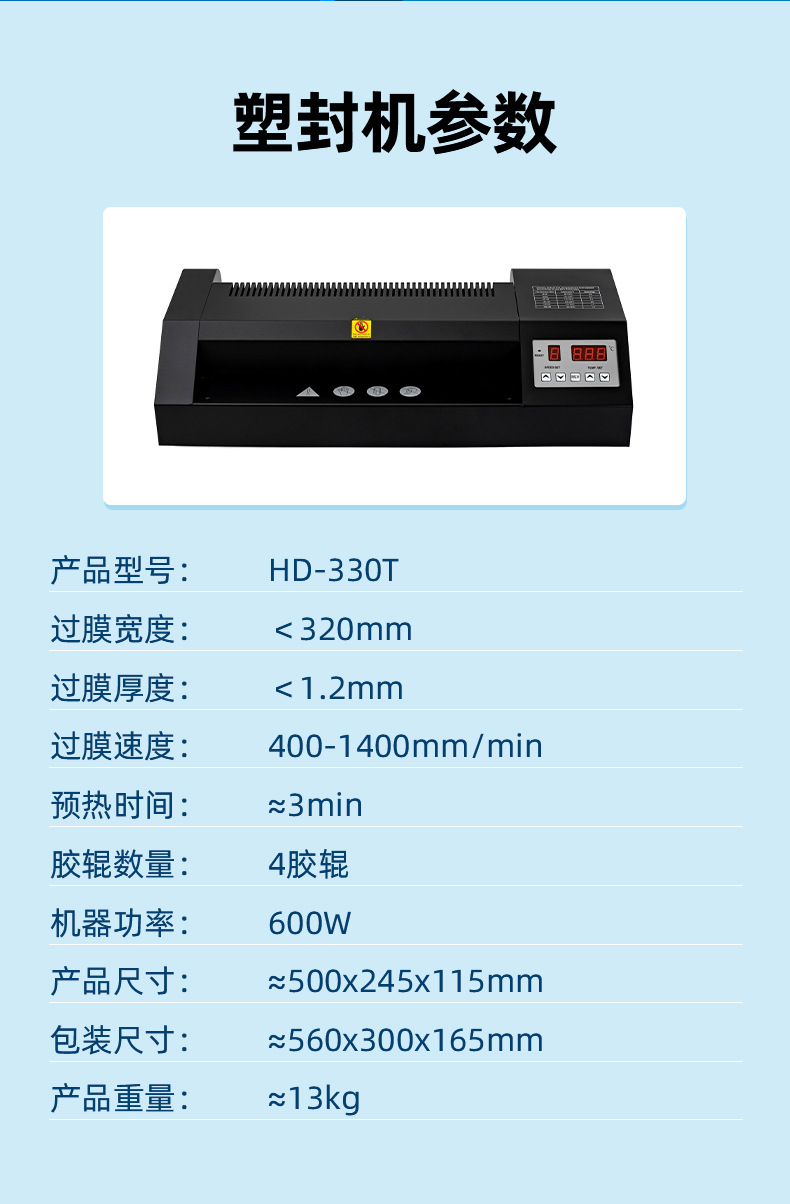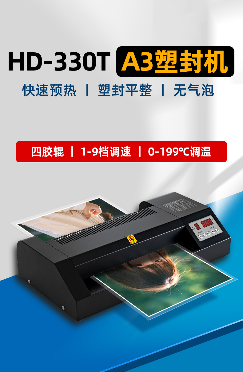 Plastic Laminating Machine with Nine-Speed Adjustment, A3 Laminating Machine Hd-330T, Photo Laminating Machine, Film Laminating Machine, Office and Commercial Use