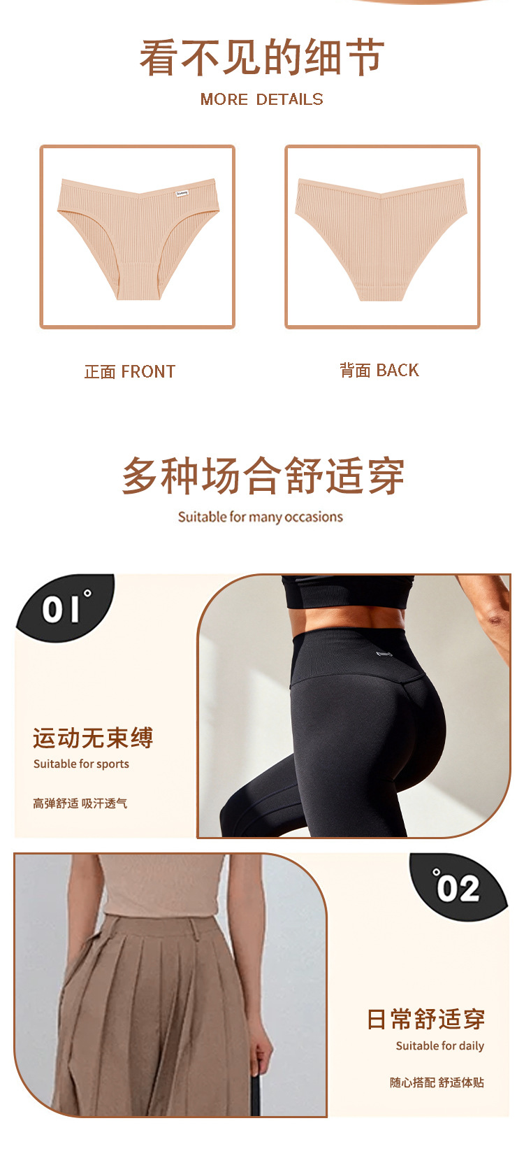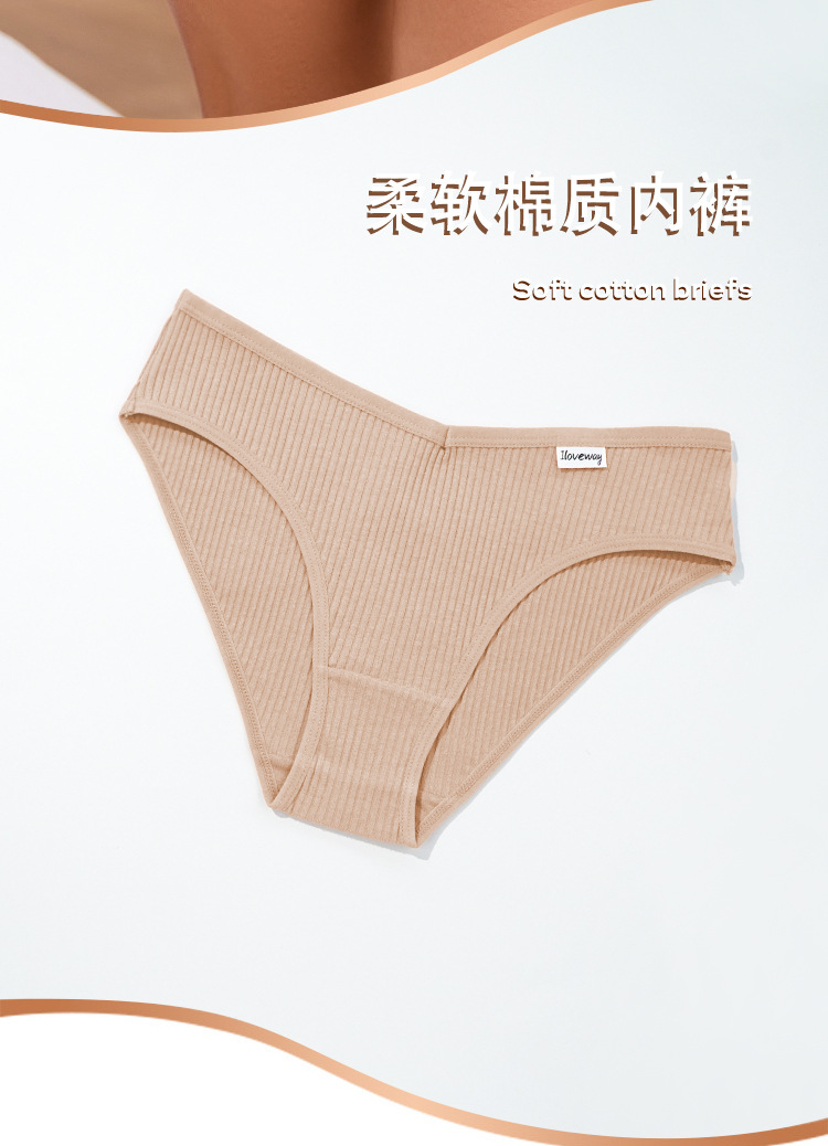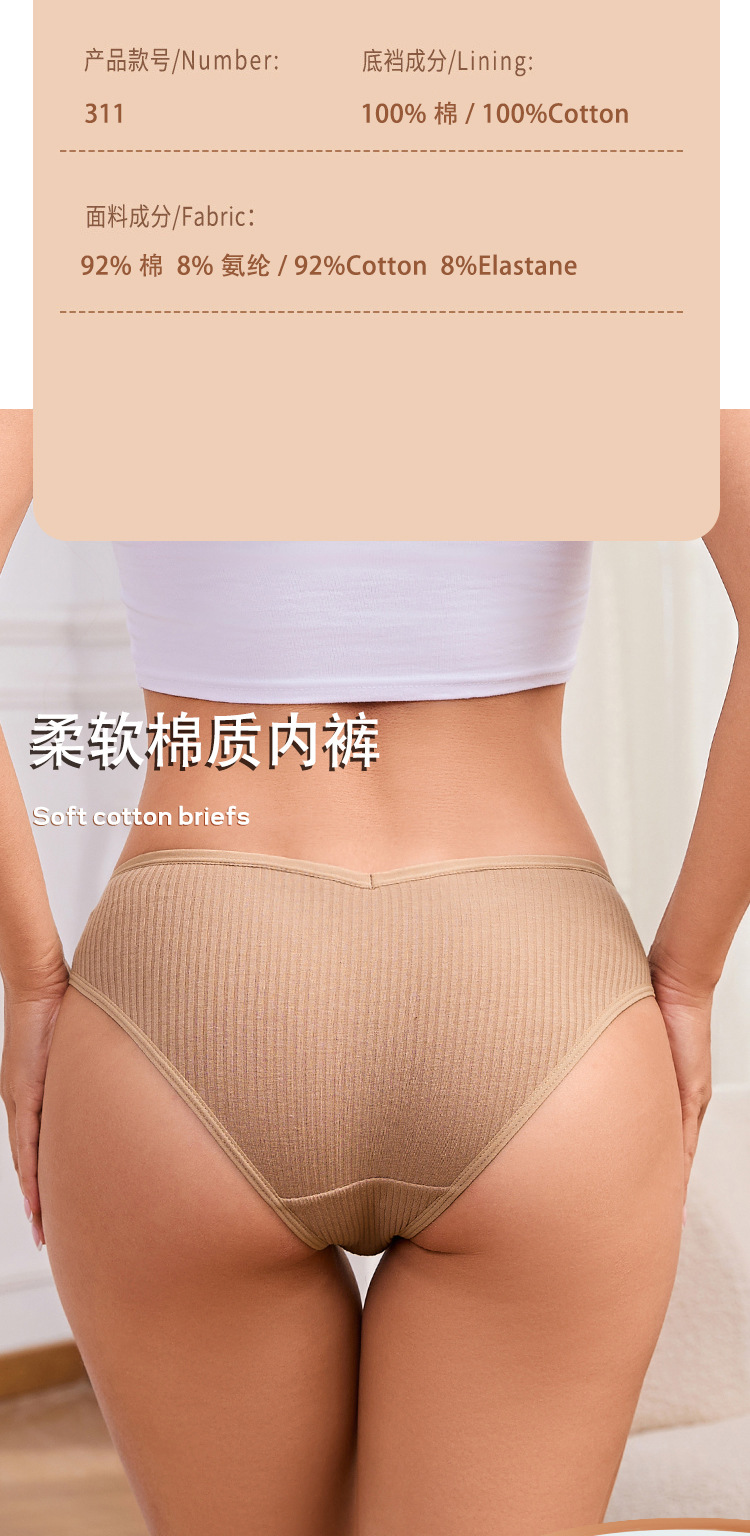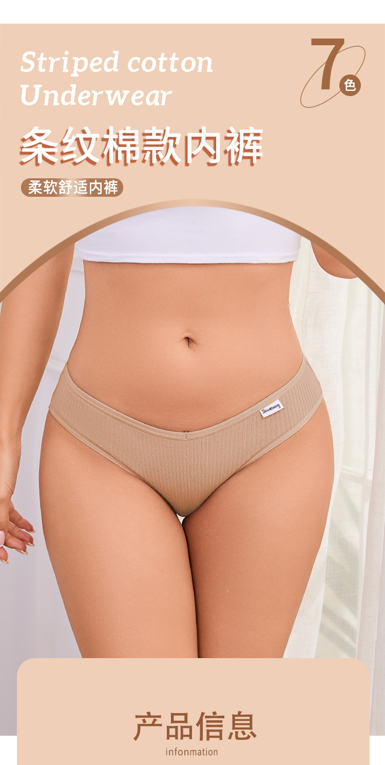 Cross-Border New Women's Cotton Briefs, Comfortable and Breathable Ribbed Hip-Lifting Panties, European and American Style Girl's Cotton Underwear