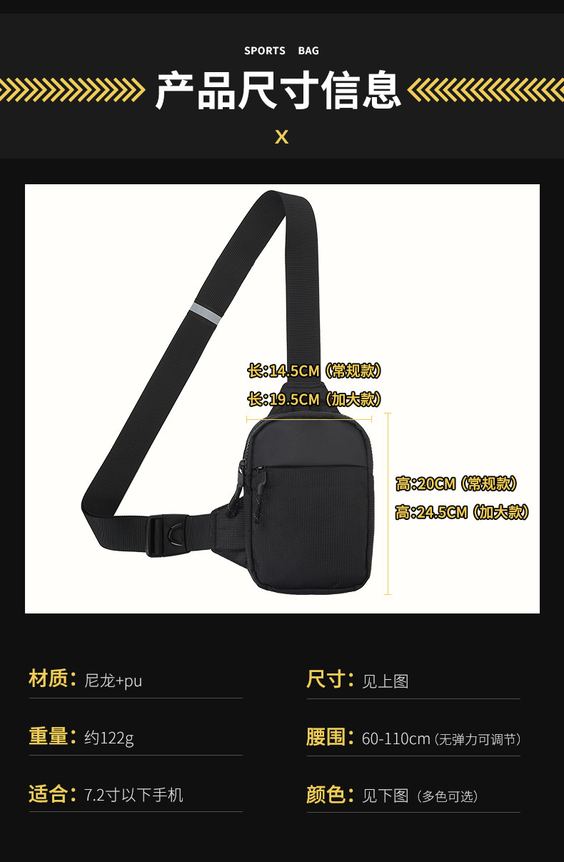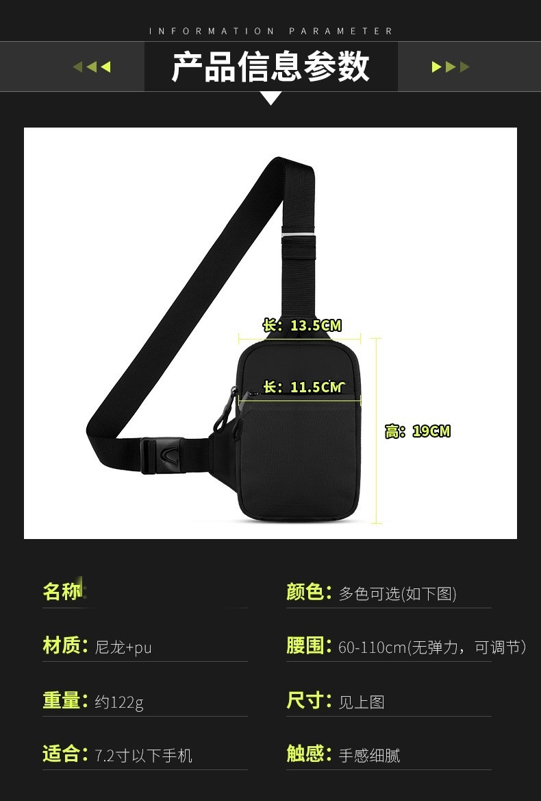 New Sports Mobile Phone Waist Bag Small Chest Bag Multi-Functional Carry-On Bag Men's Portable Men's Crossbody Bag Storage Bag