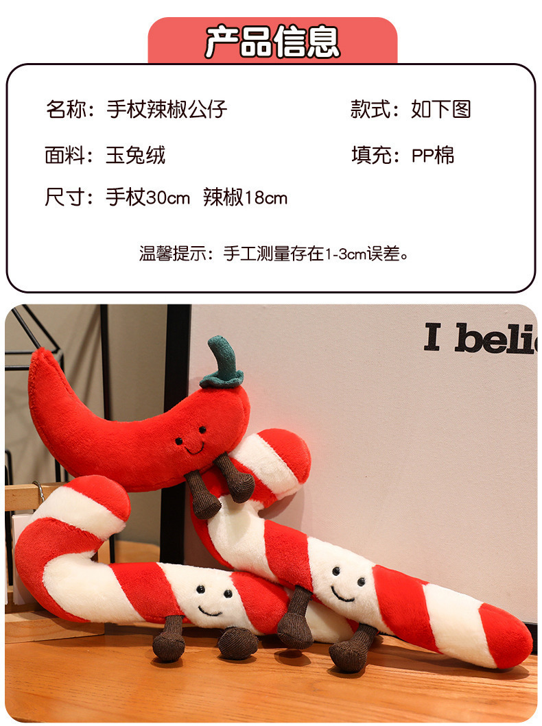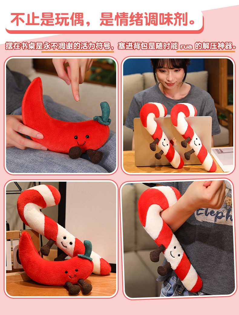 Jc New Fun Christmas Cane Doll Cute Chili Milk Tea Ice Cream Cup Stuffed Toy Holiday Gift Batch