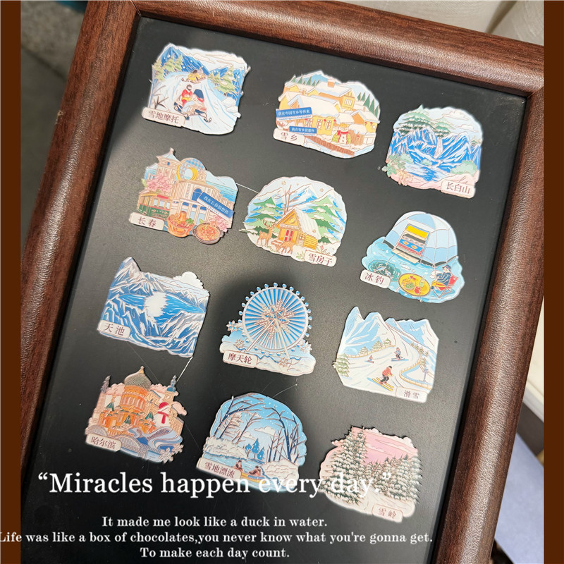 Choice Northeast Harbin Changbai Mountain Tourism Commemorative Refrigerator Magnet Decorative Magnet Erdao White River Rafting Ice Fishing Magnet