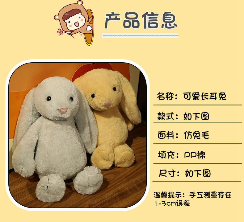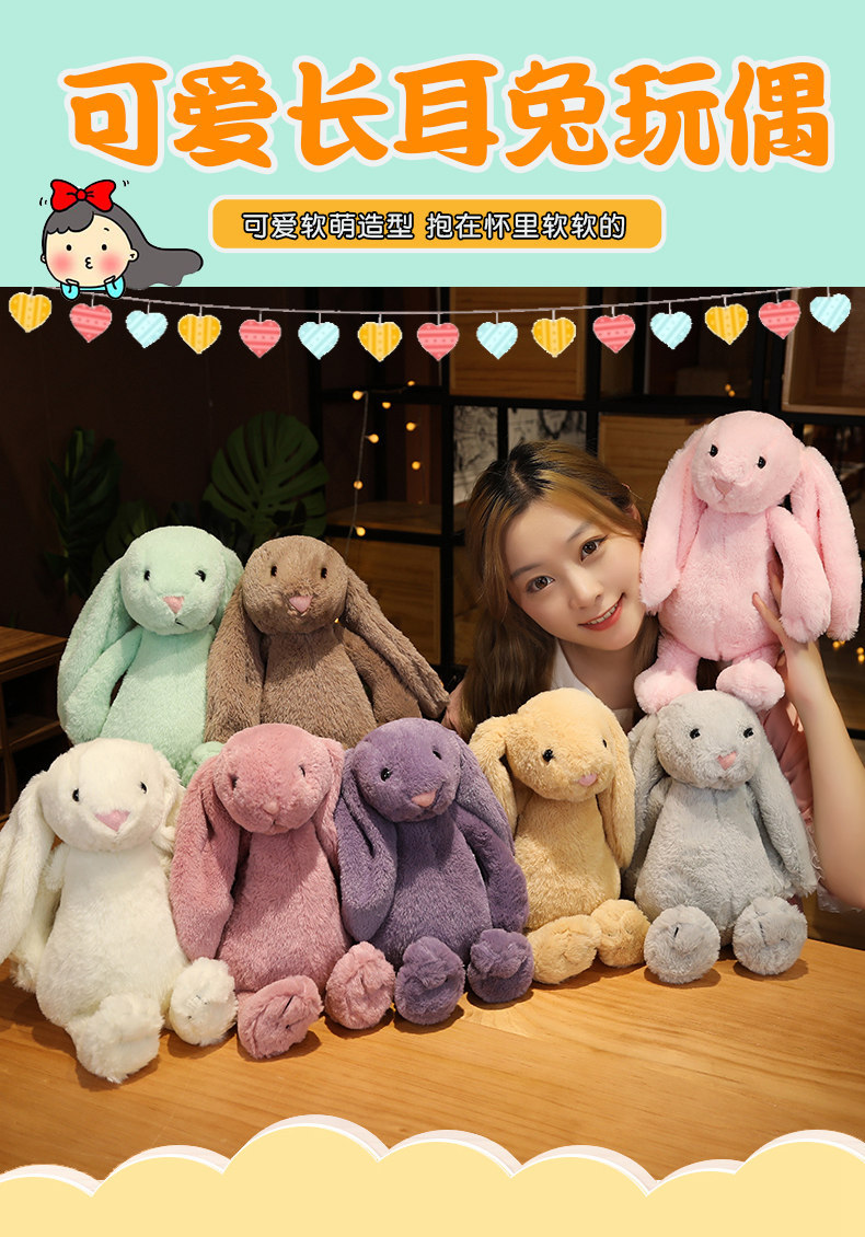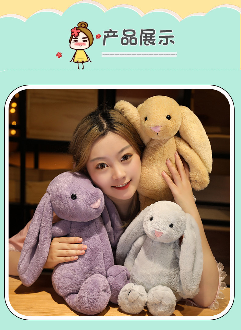Shy Bonnie Rabbit Cute Lop-Eared Rabbit Skin Friendly Soft Stuffed Toy Children's Soothing Accompanying Rag Doll Gift