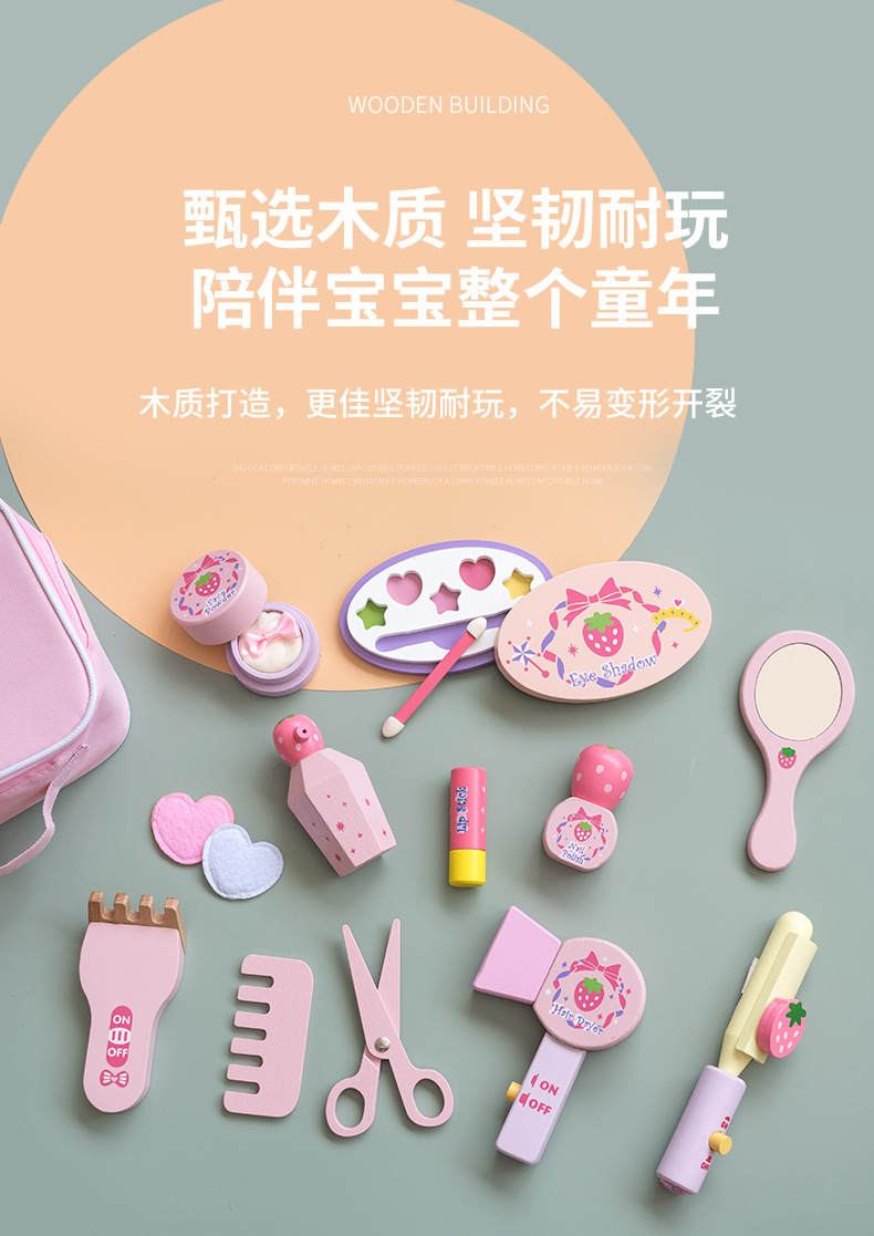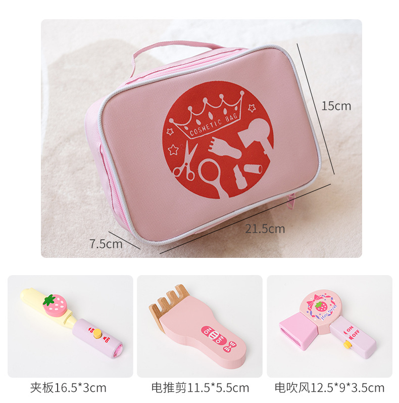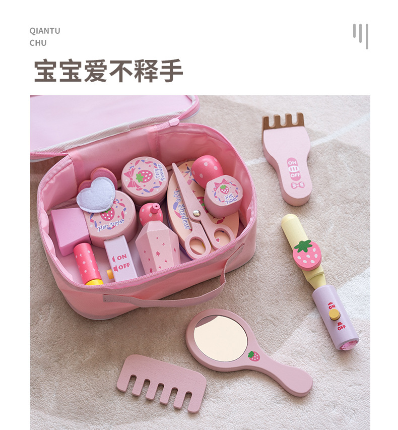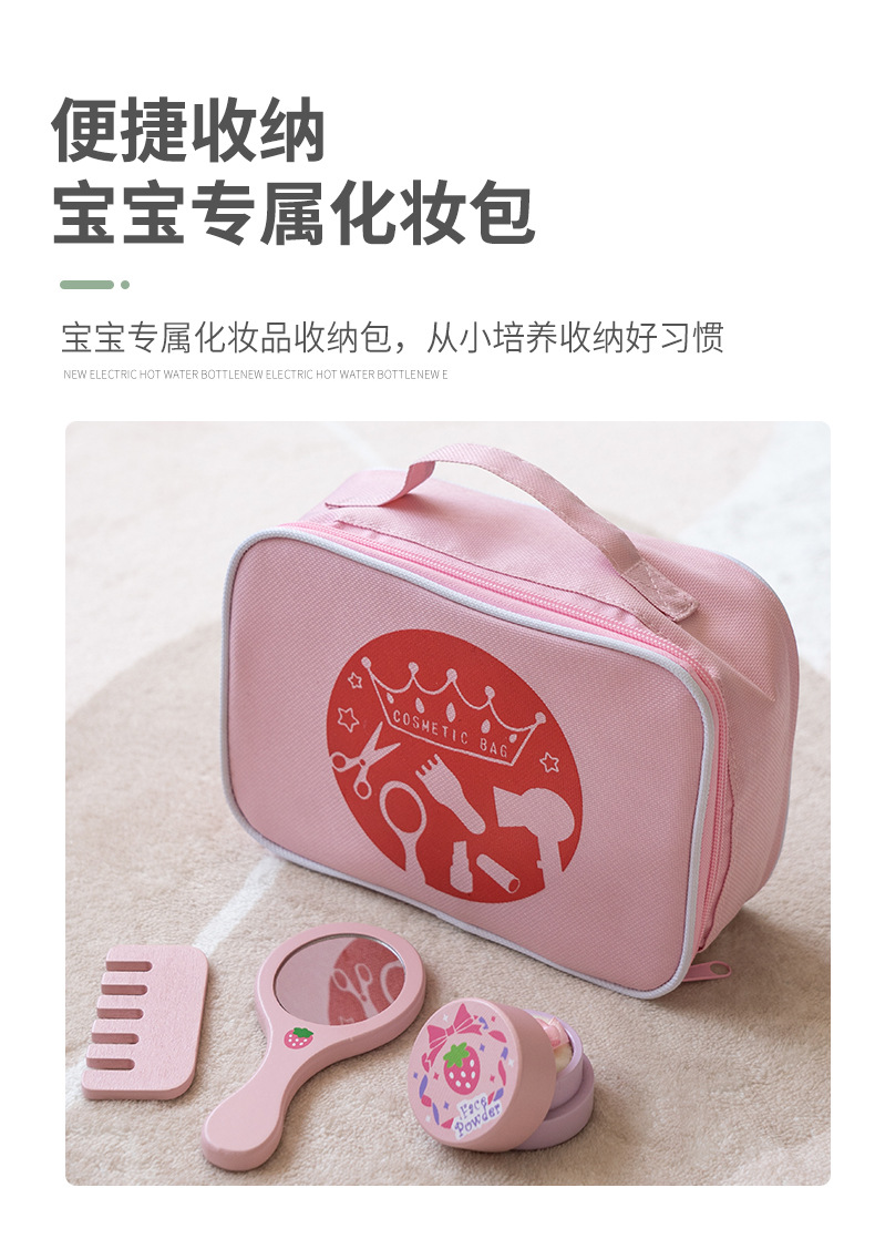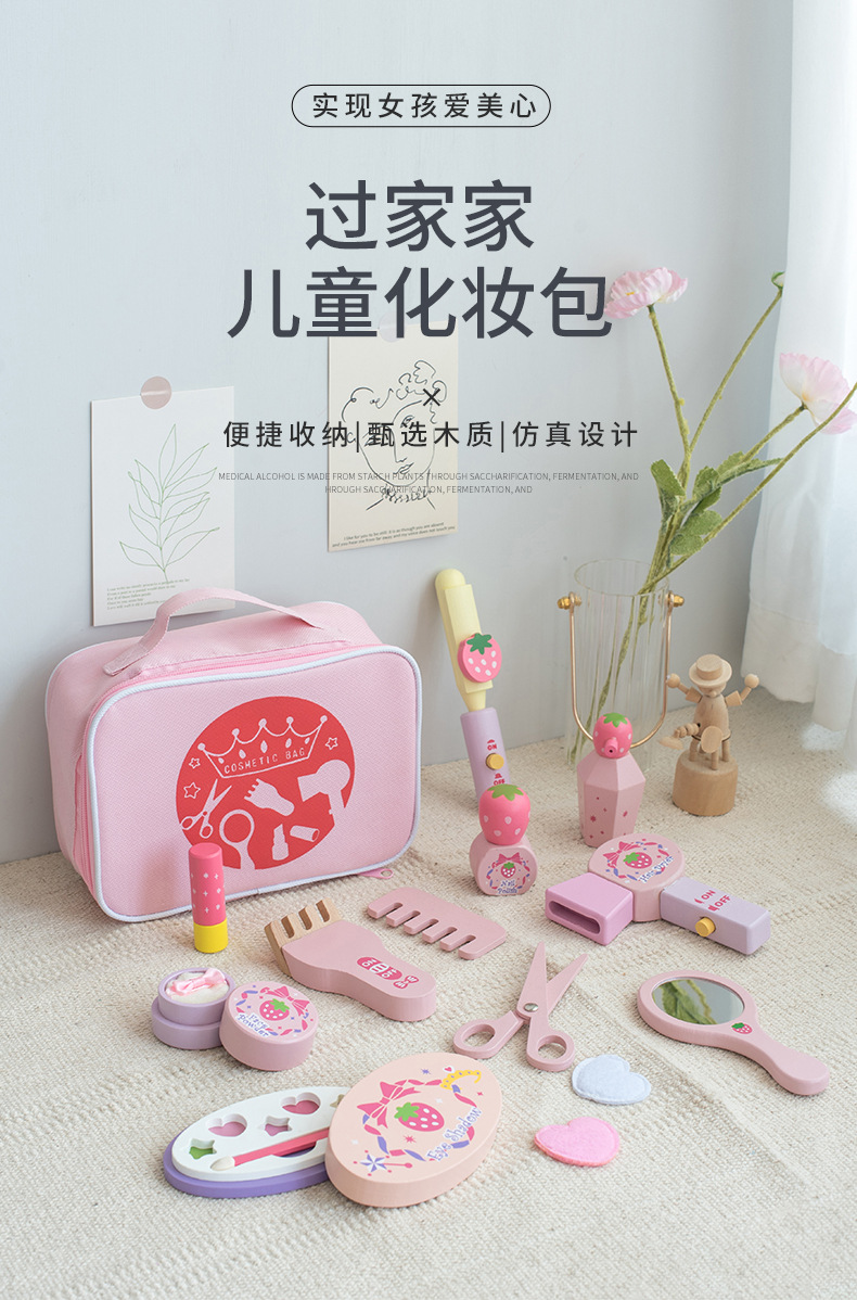 Choice Young Children's Wooden Simulation Pink Cosmetic Bag Play House Set Hand-Eye Coordination Early Education Educational Toy Gift