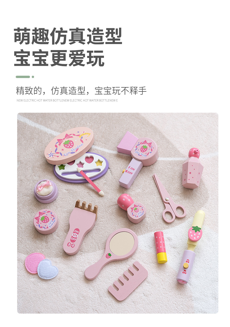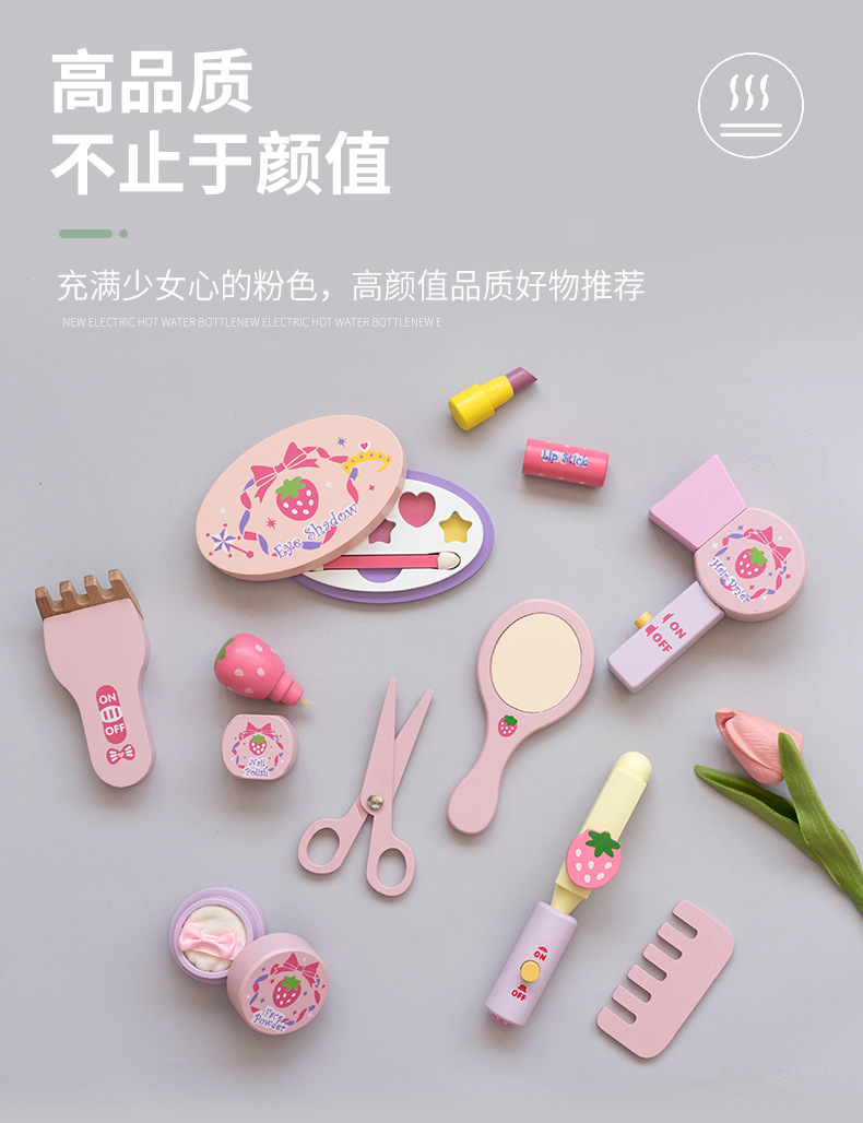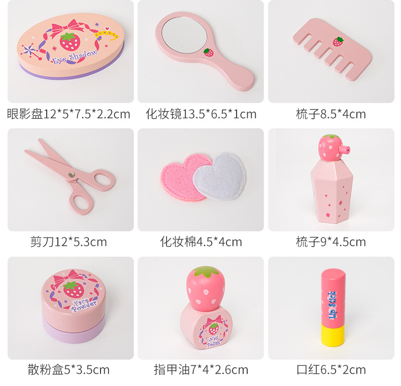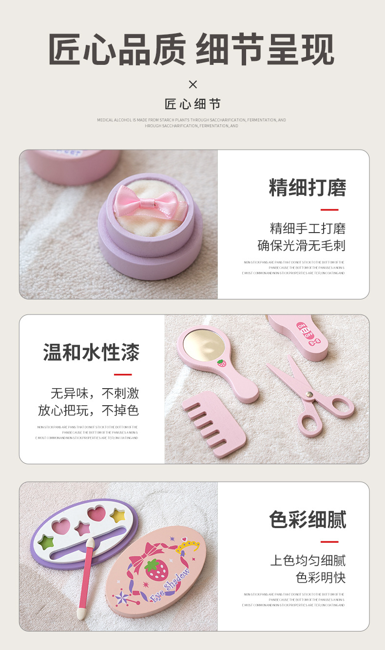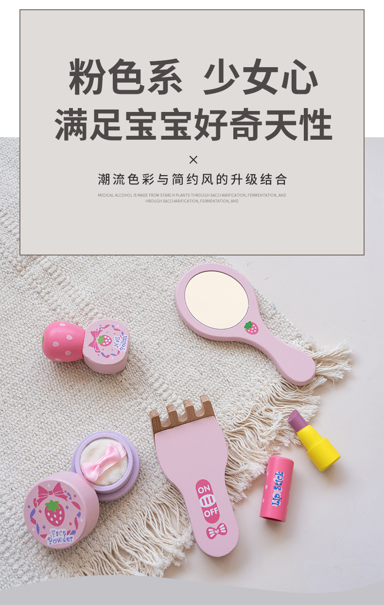 Choice Young Children's Wooden Simulation Pink Cosmetic Bag Play House Set Hand-Eye Coordination Early Education Educational Toy Gift