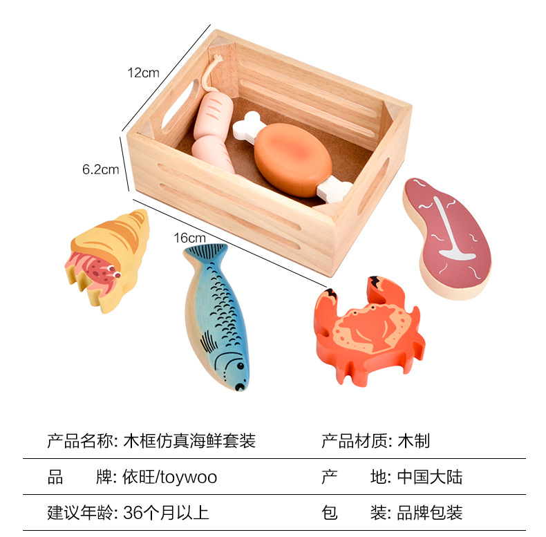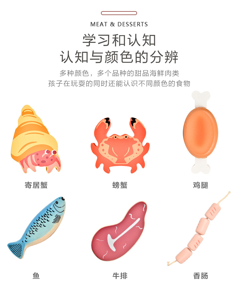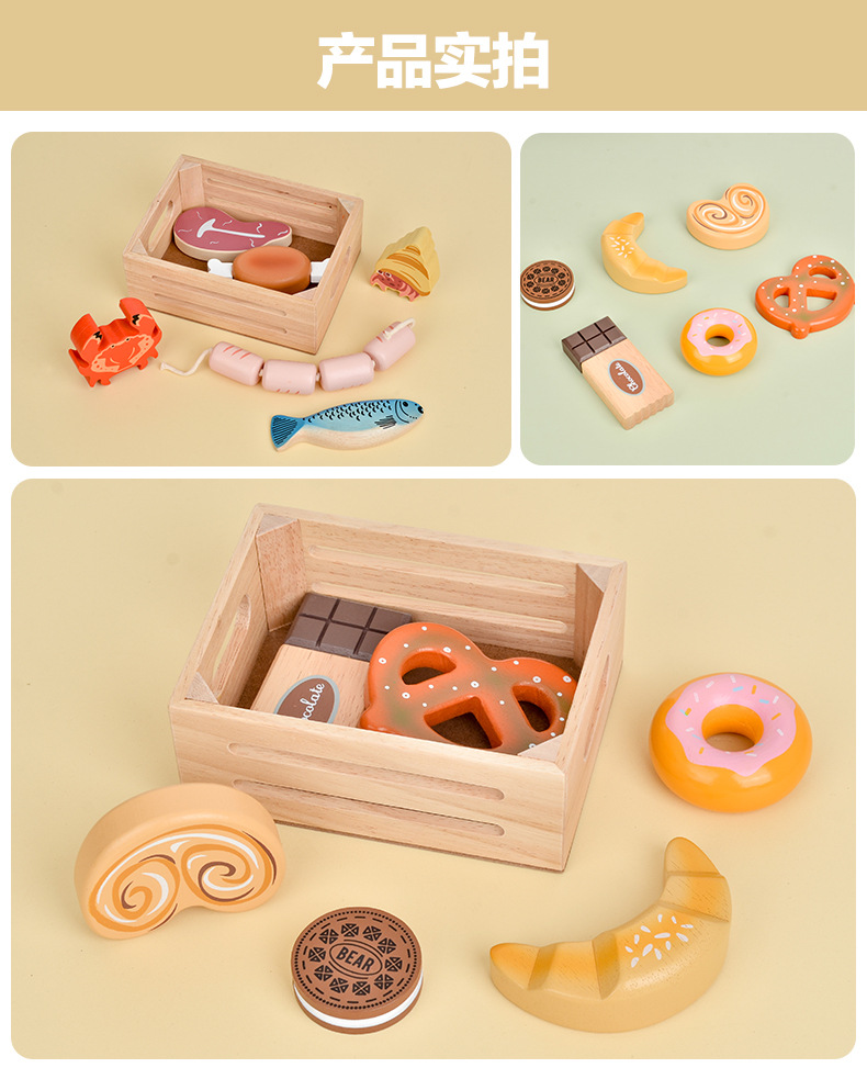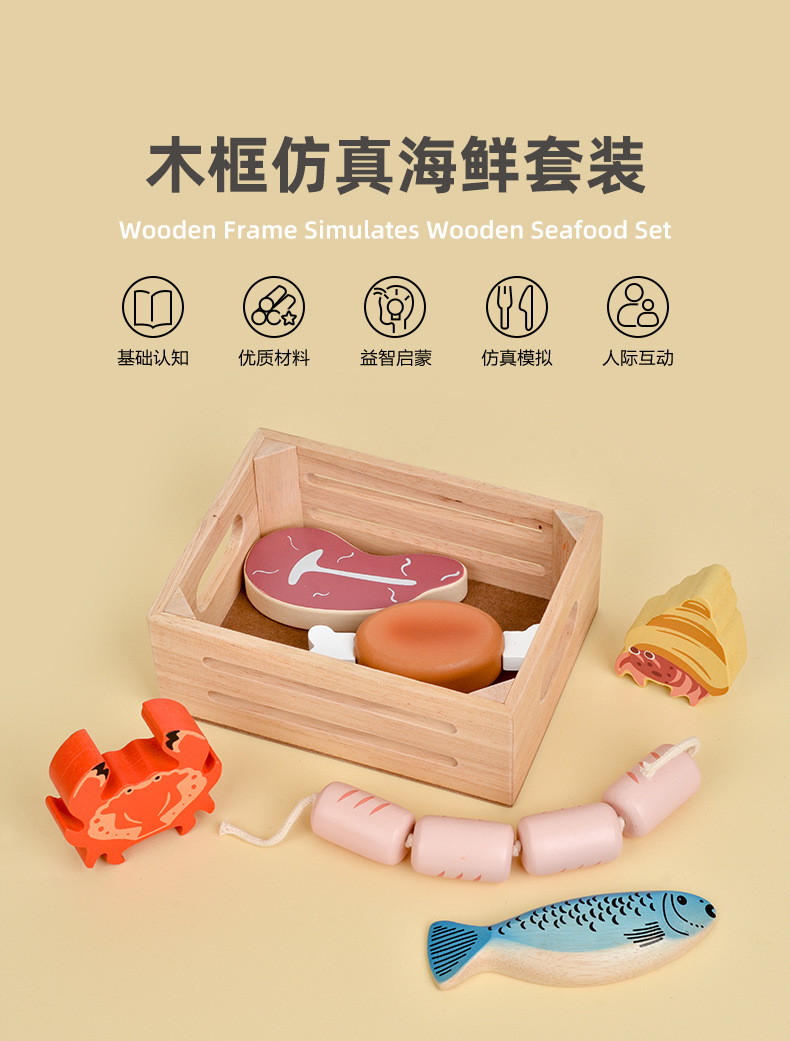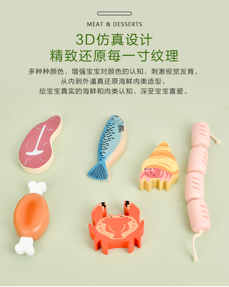 Choice Role-Playing Simulation Seafood Dessert Wooden Frame Set Early Education Cognitive Large Particle Building Blocks Children's Educational Kitchen Toys