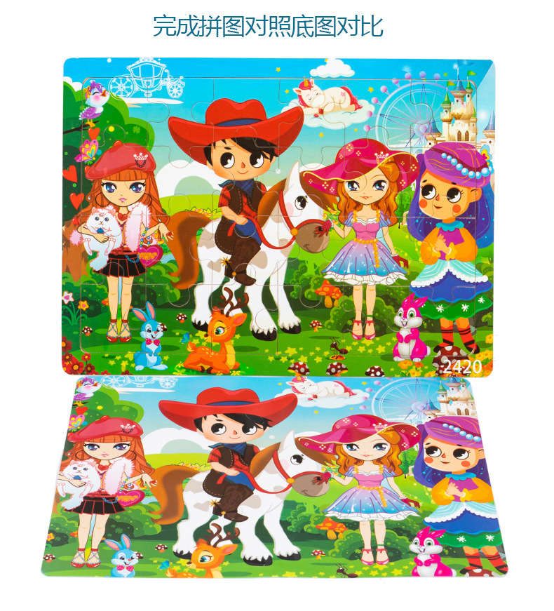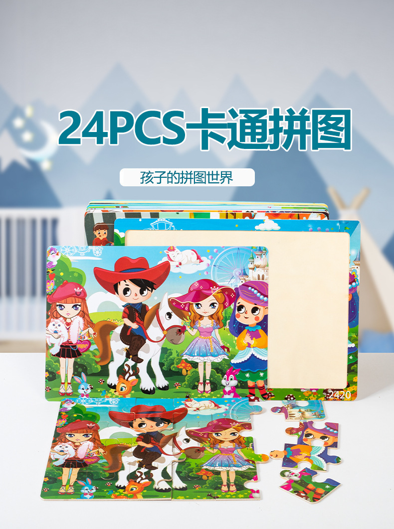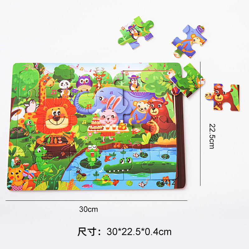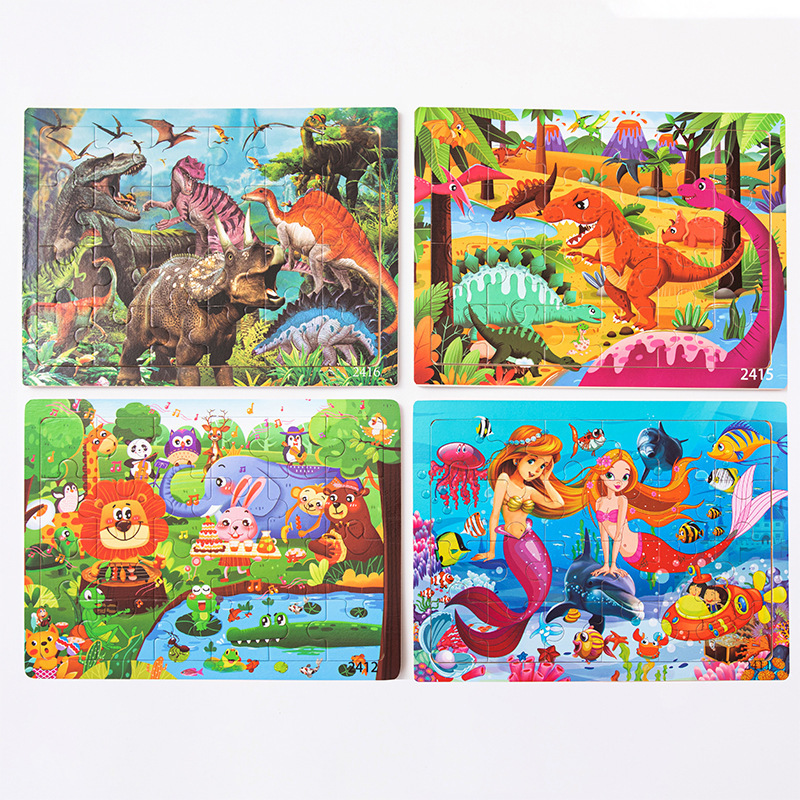 Choice Wooden Cartoon Animal Dinosaur 24-Piece Puzzle Puzzle Board Intelligence Development Game Enlightenment Early Education Kidsren's Educational Toys