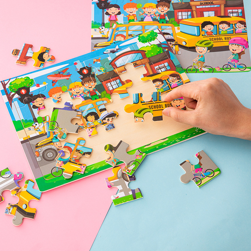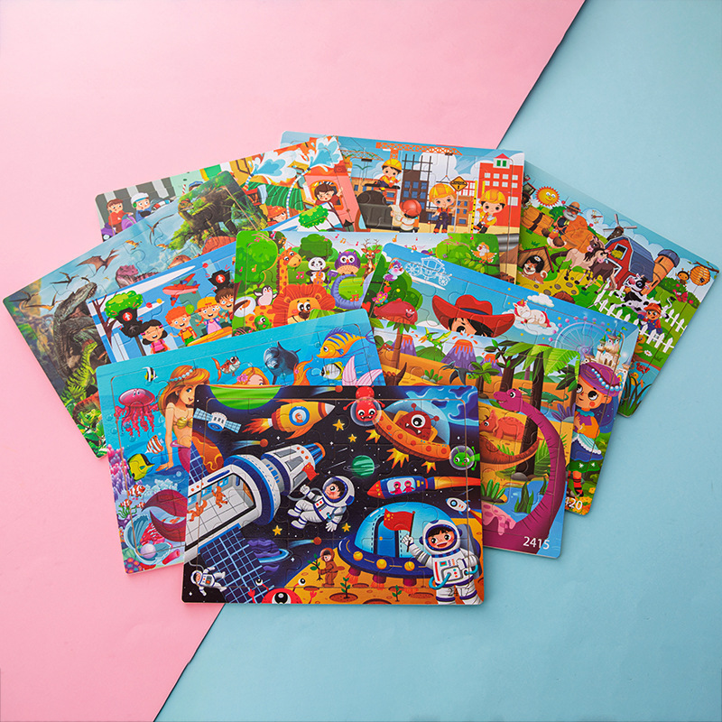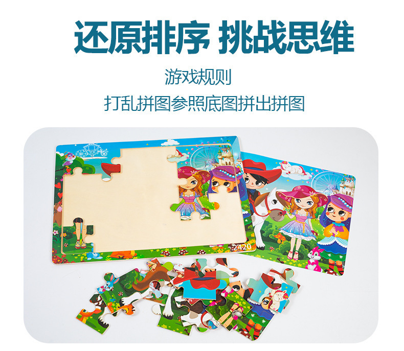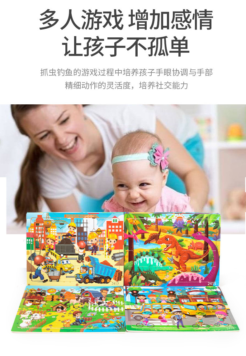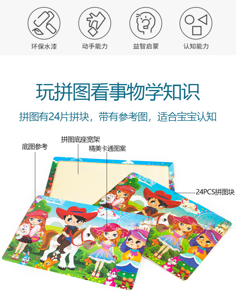 Choice Wooden Cartoon Animal Dinosaur 24-Piece Puzzle Puzzle Board Intelligence Development Game Enlightenment Early Education Kidsren's Educational Toys