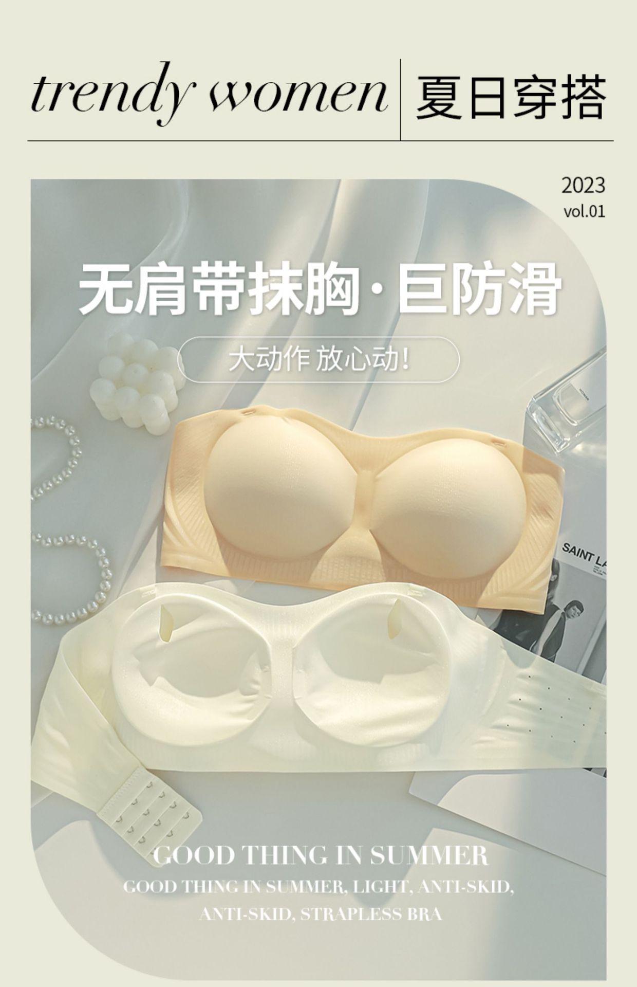 Vietnam Quality Store High Quality 047 Strapless Bra for Women, Non-Slip, Push-Up, Seamless, Anti-Exposure Bra