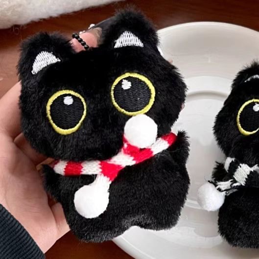 귀여운 봉제 검은 고양이 인형 펜던트 소녀 하트 삐걱거리는 다용도 펜던트 배낭 열쇠 고리 펜던트