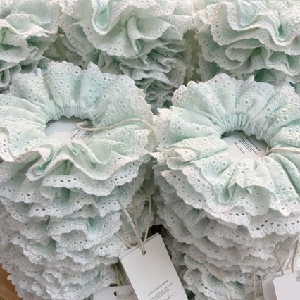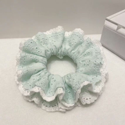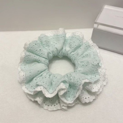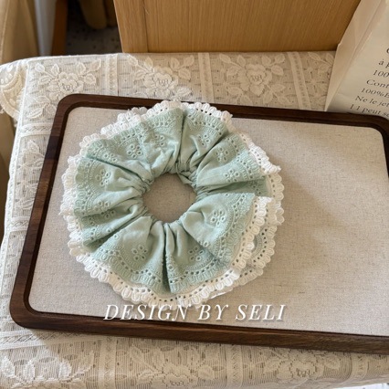 민트 그린 컬러 배색 이중 레이스 헤어밴드, 블루 그린 톤 프렌치 스타일 헤어밴드, 푹신한 매듭 디자인, 고탄력 디자인