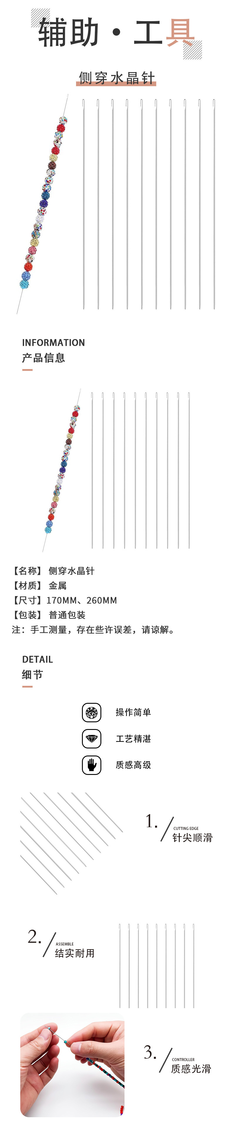 공장 직접 판매 슬림 비즈 크로 셰 뜨개질 크리스탈 비즈 크로 셰 뜨개질 바늘 없음 수제 보석 목걸이 diy 사이드 교수형 비즈 바늘
