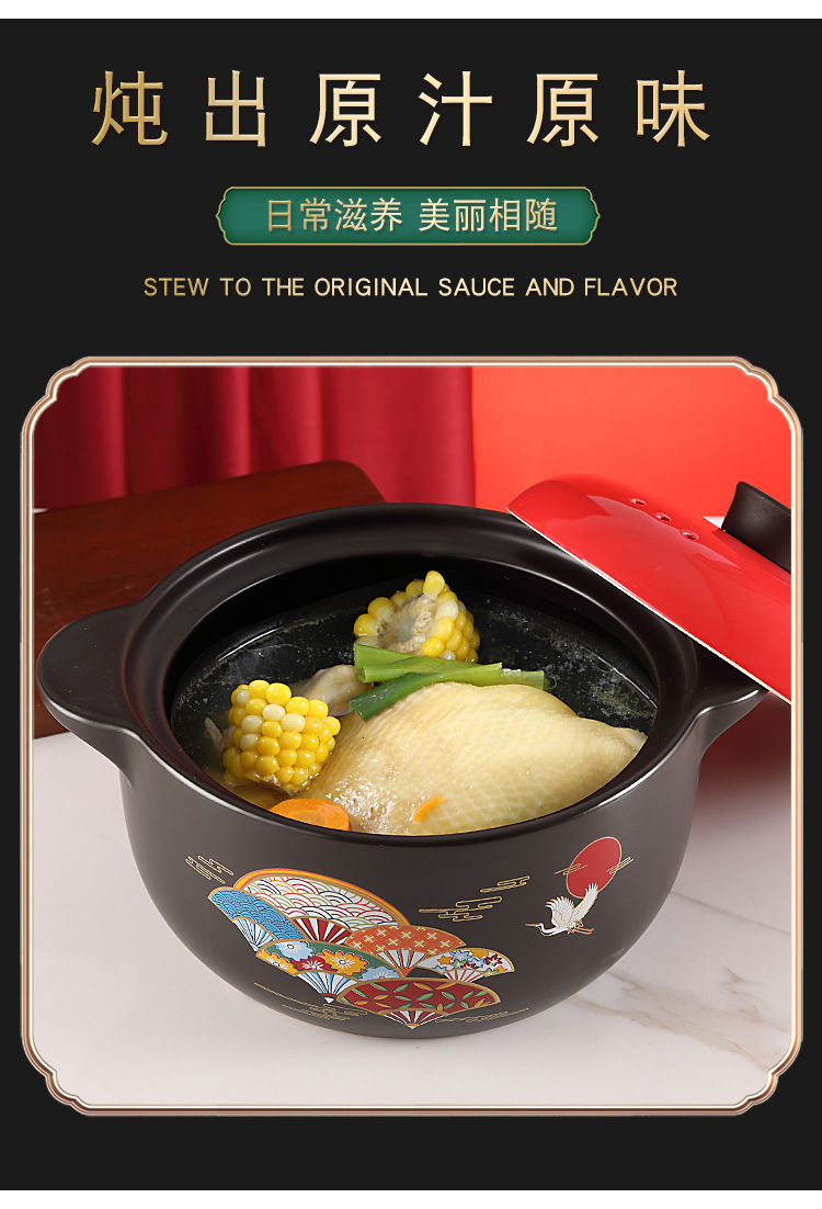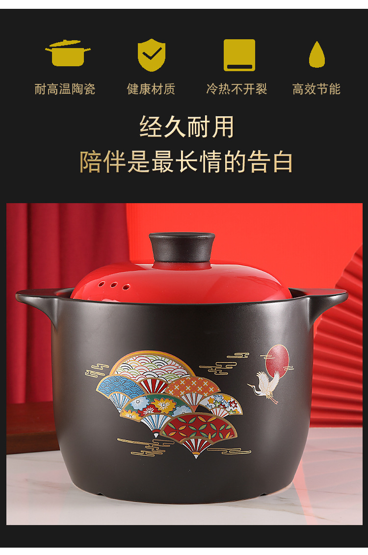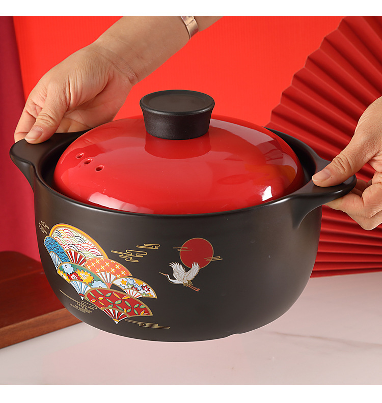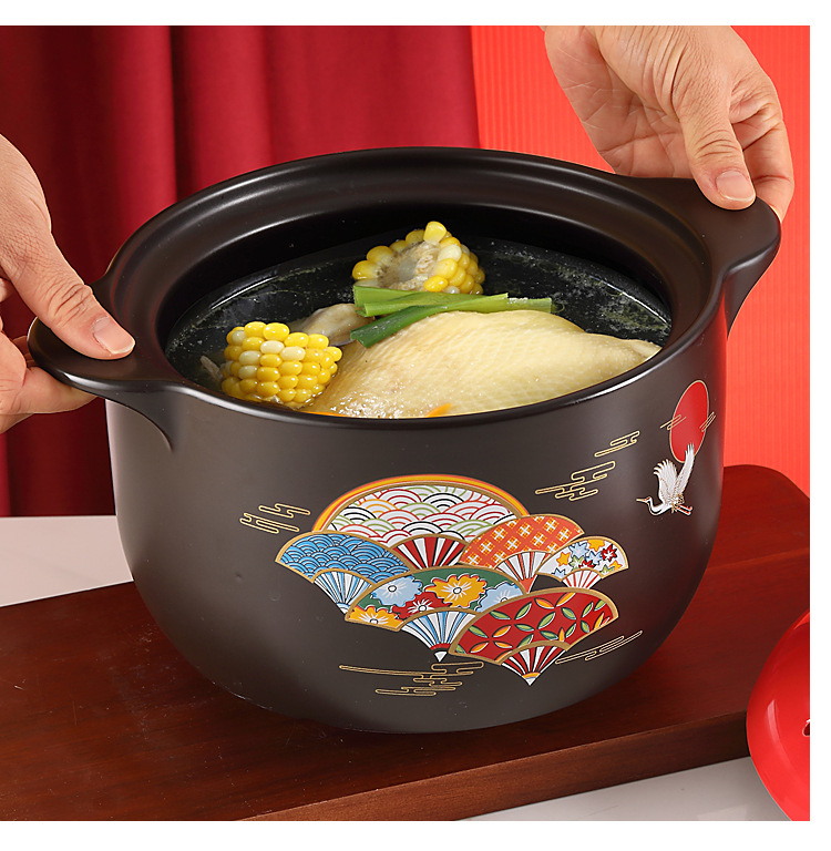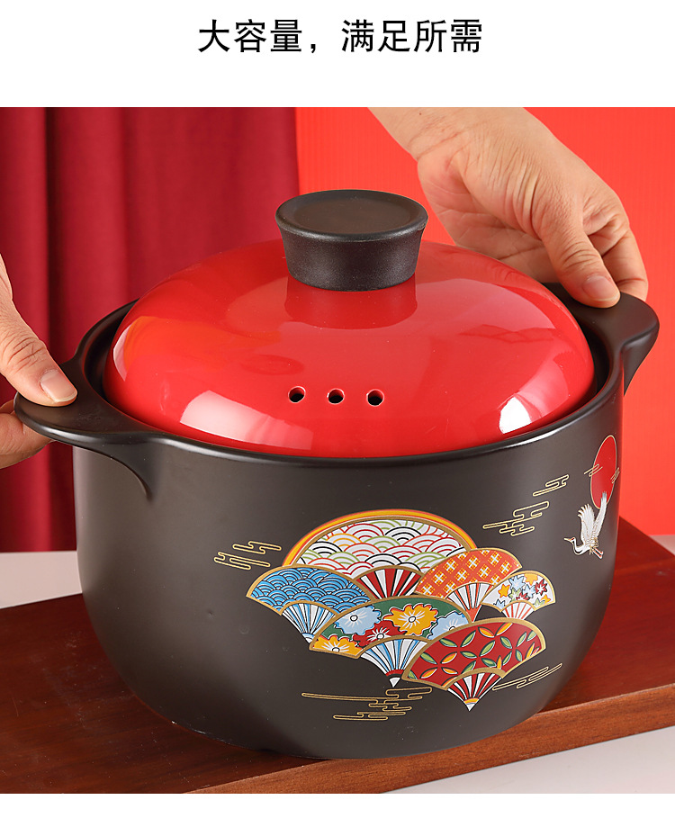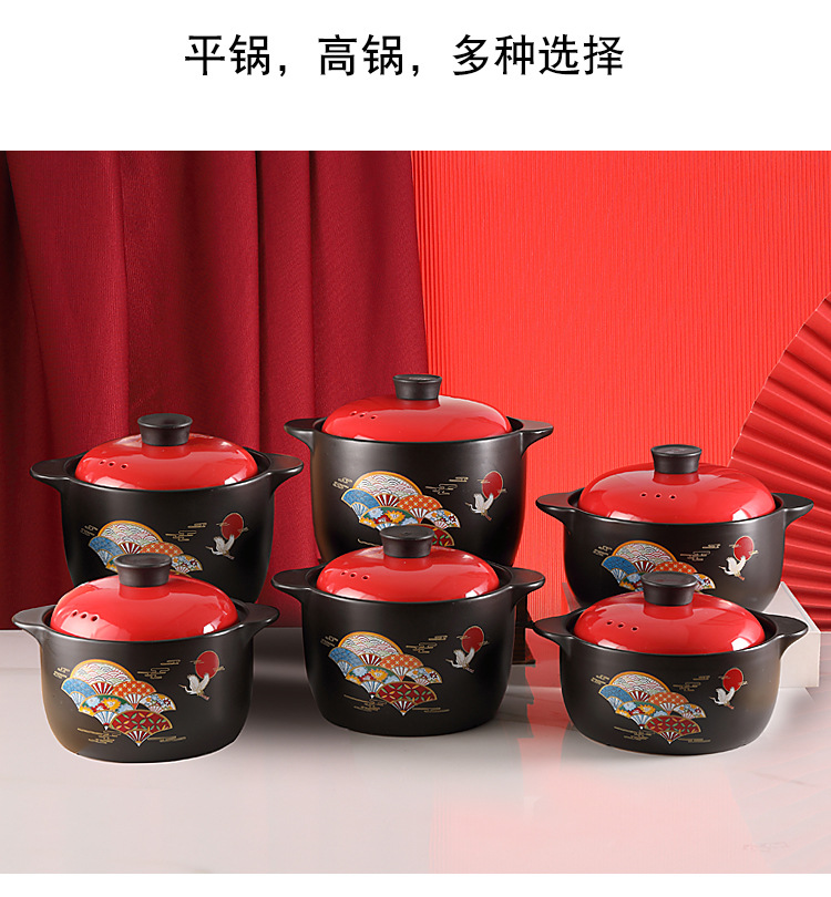 中国风砂锅煲汤家用明火干烧耐高温陶瓷煲炖锅酒店用大容量8L沙锅