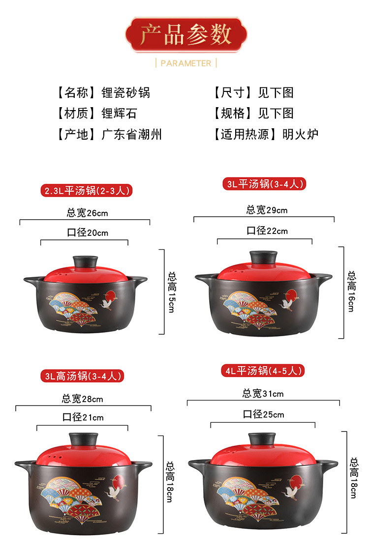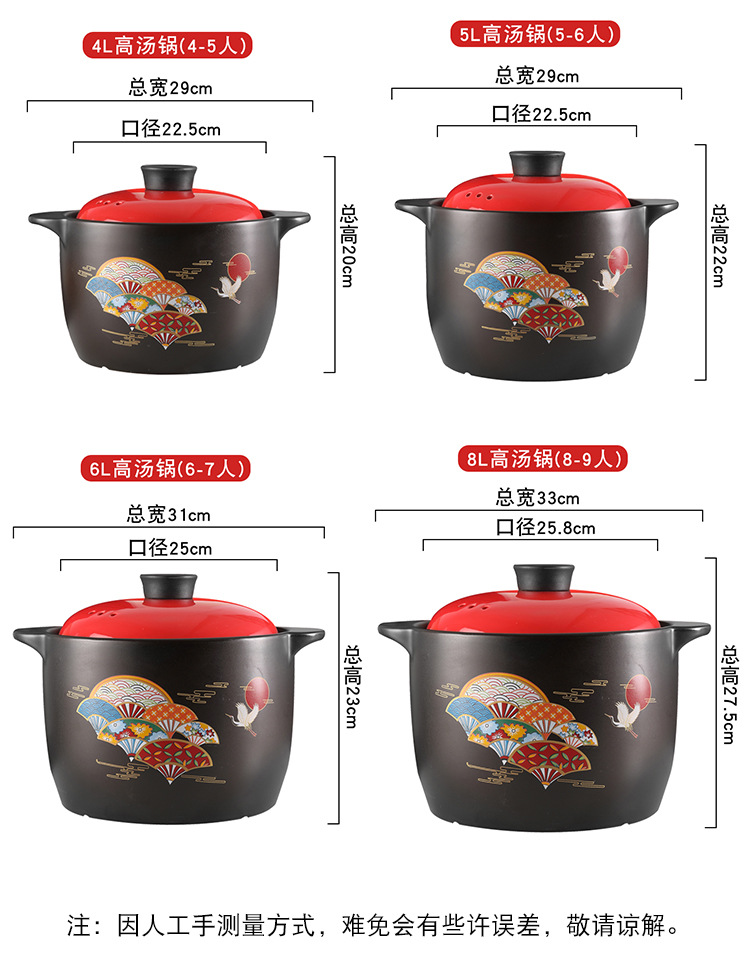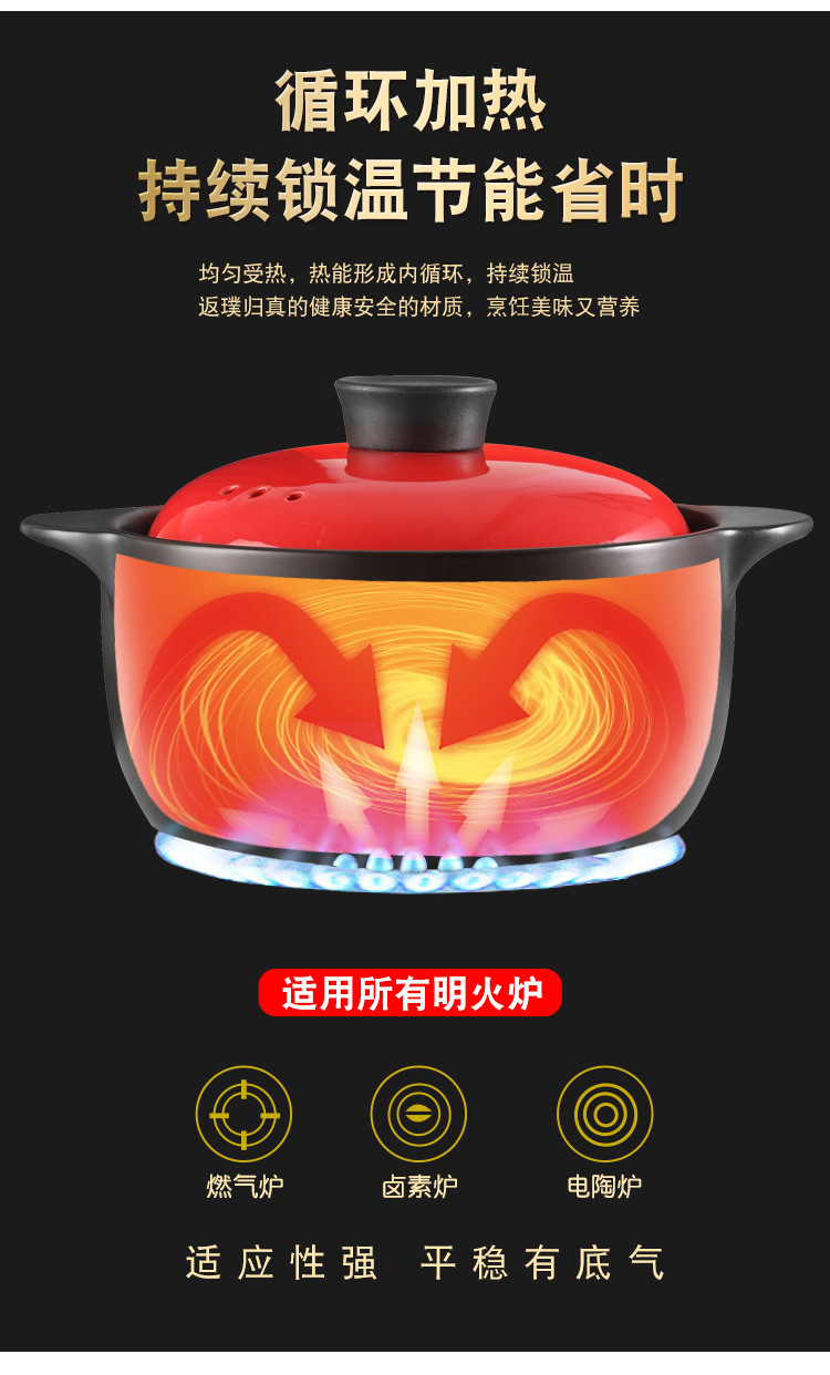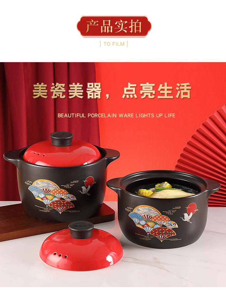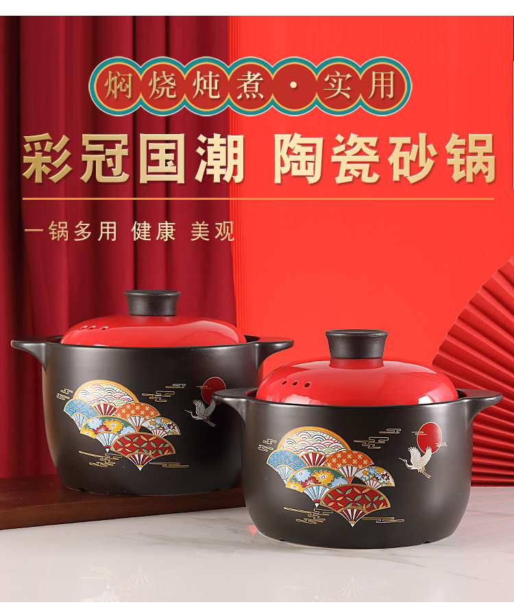 中国风砂锅煲汤家用明火干烧耐高温陶瓷煲炖锅酒店用大容量8L沙锅