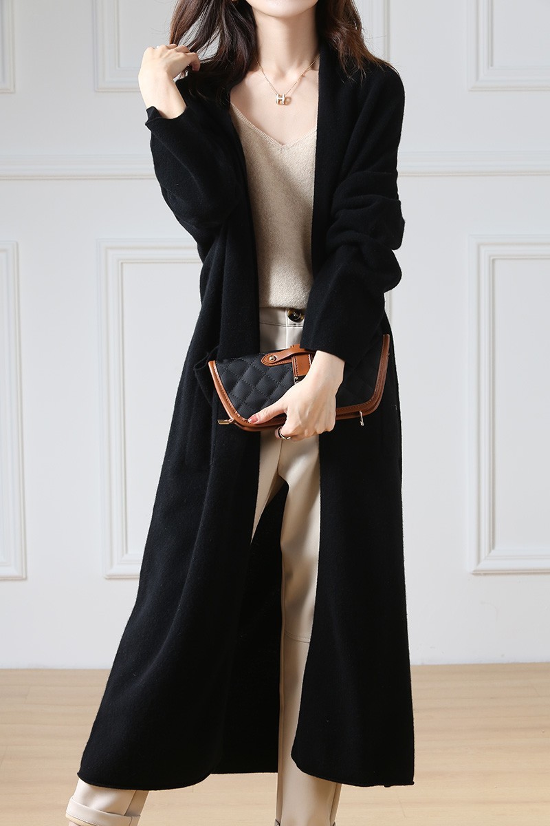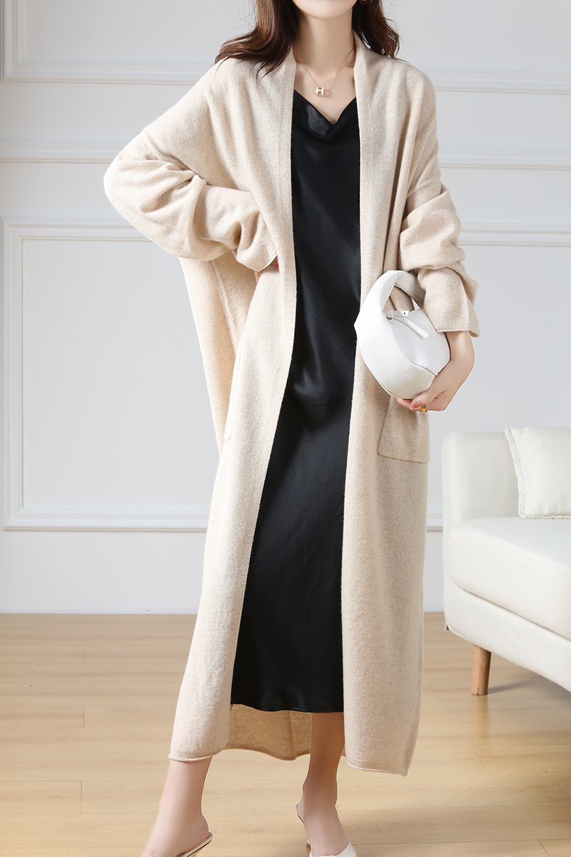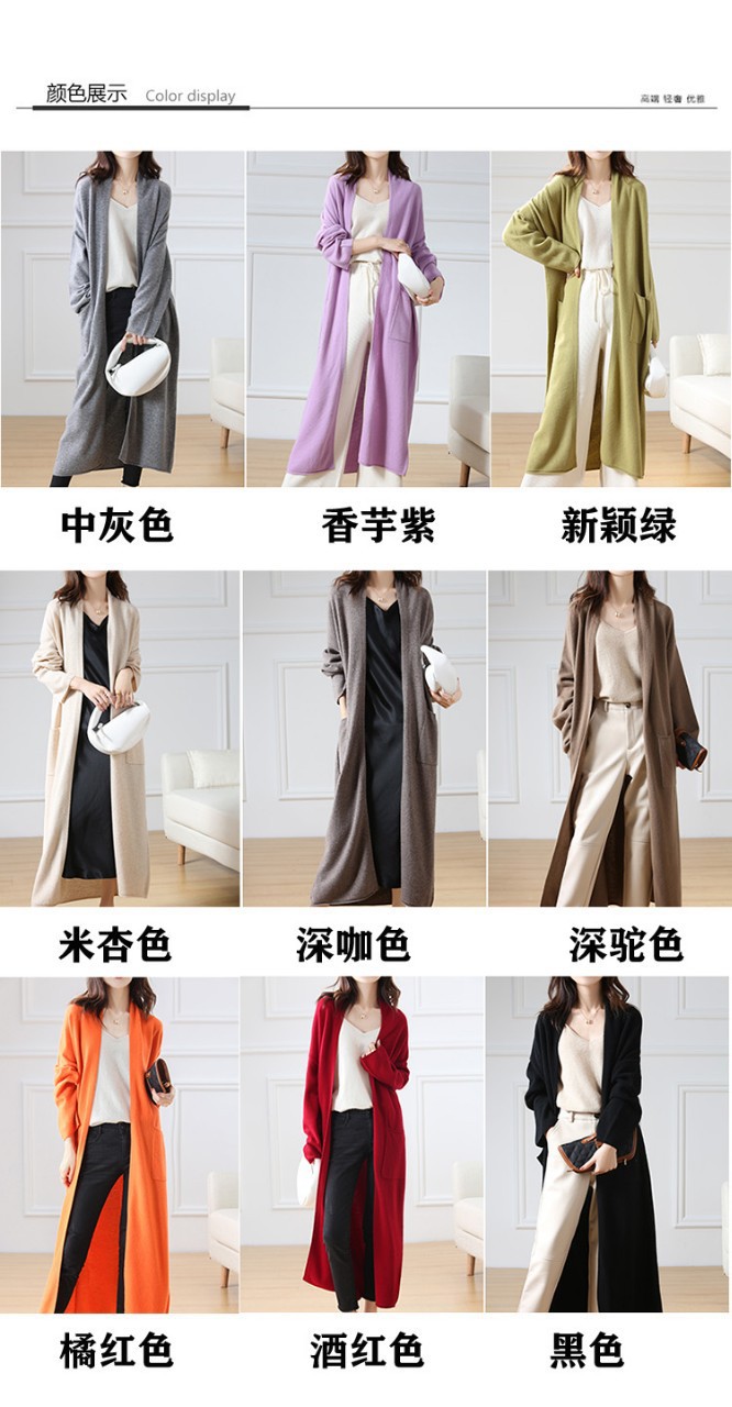 Choice 秋冬新款100羊毛针织开衫女长款宽松慵懒外搭超长过膝毛衣外套