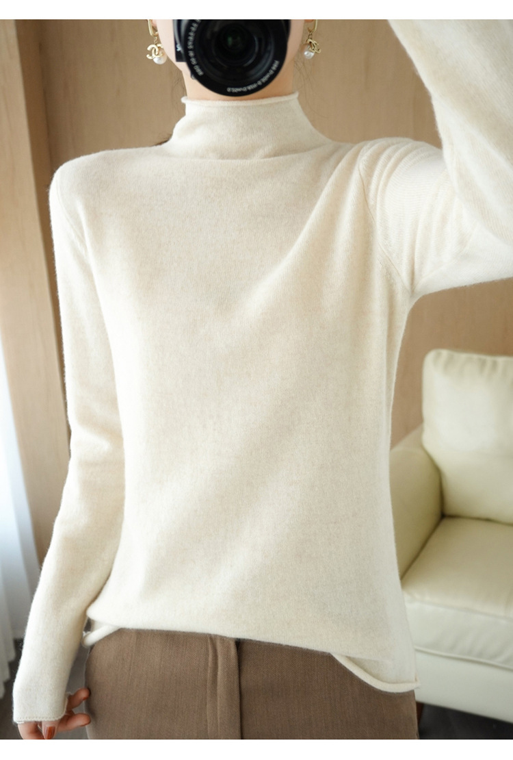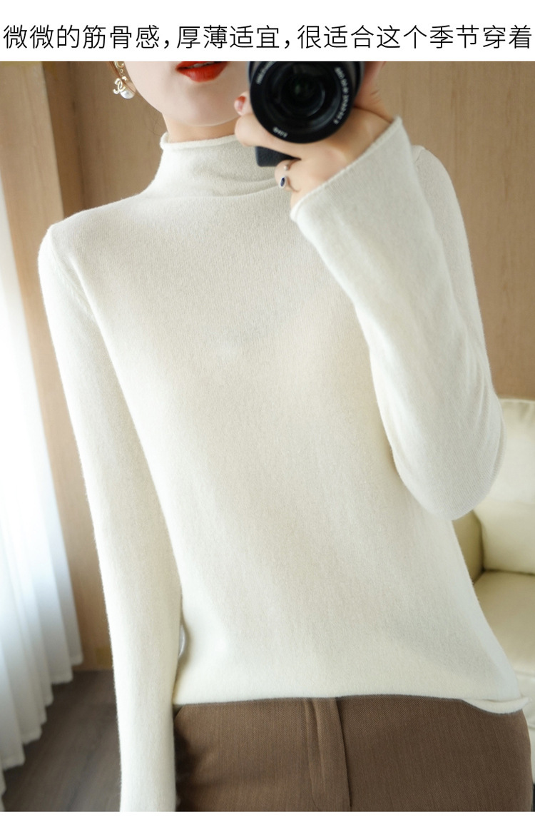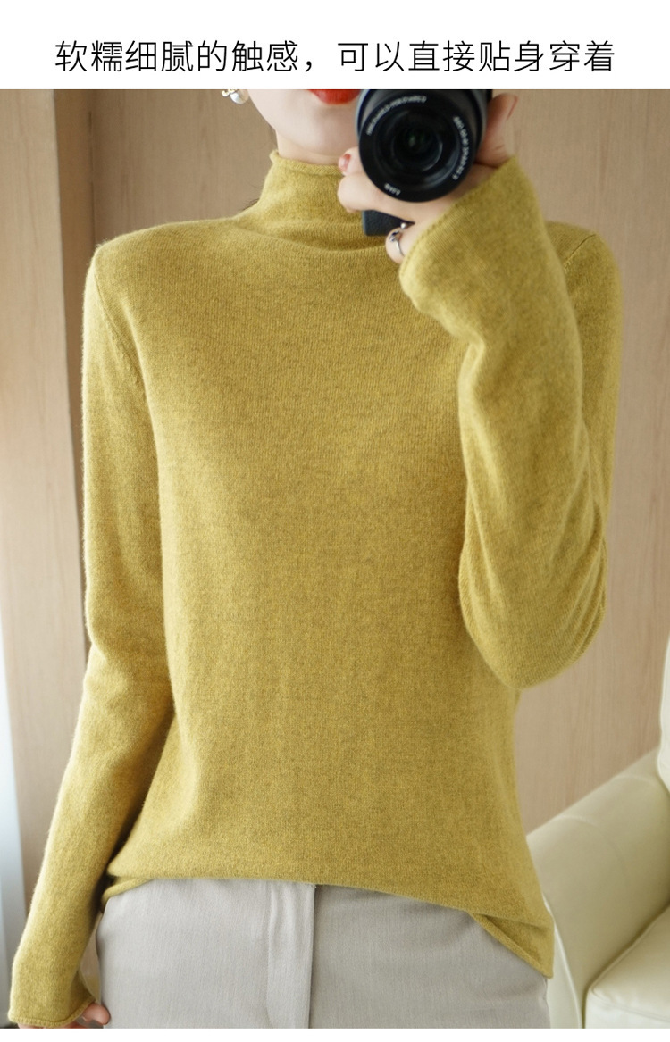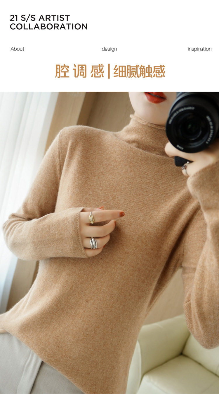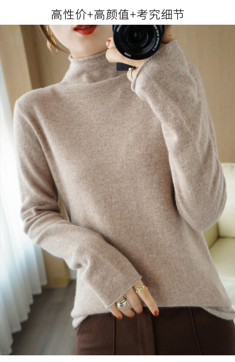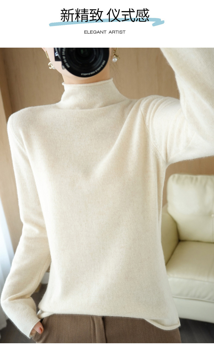 Choice 堆堆领羊毛衫女100 纯羊毛秋冬高领洋气内搭薄款针织打底羊绒毛衣