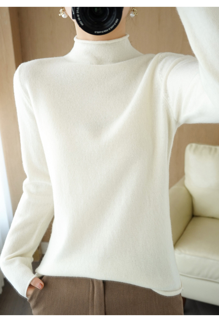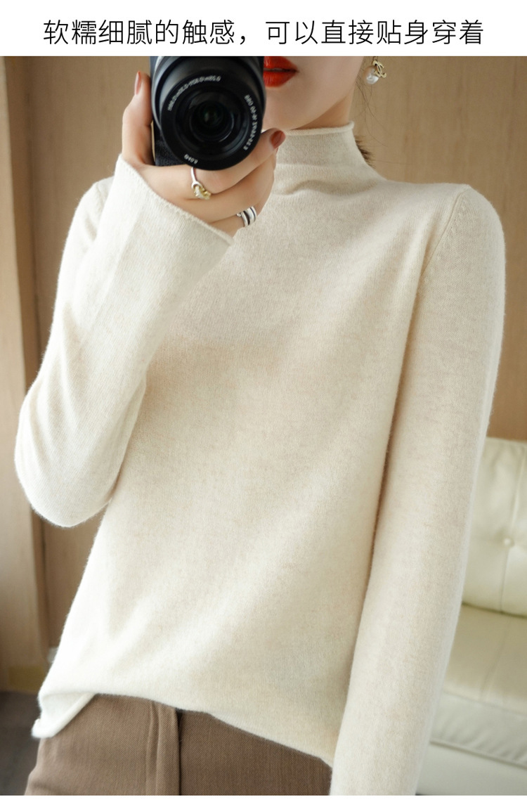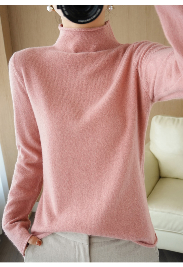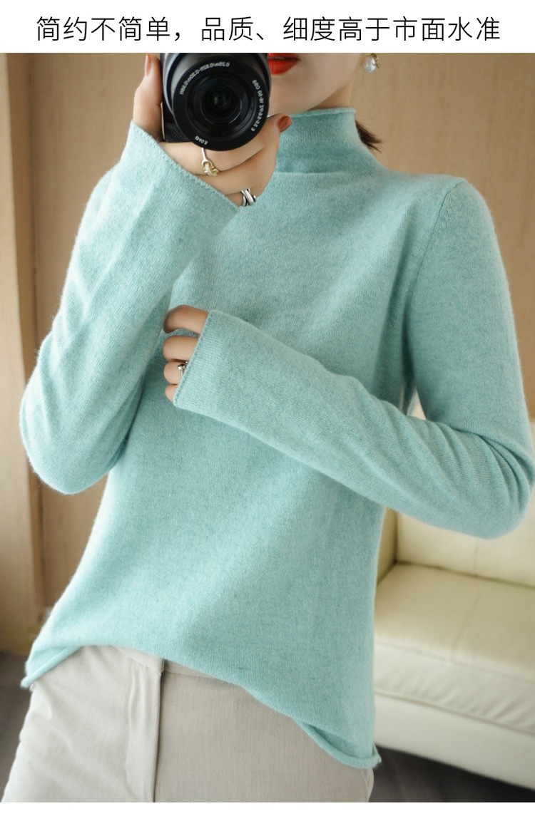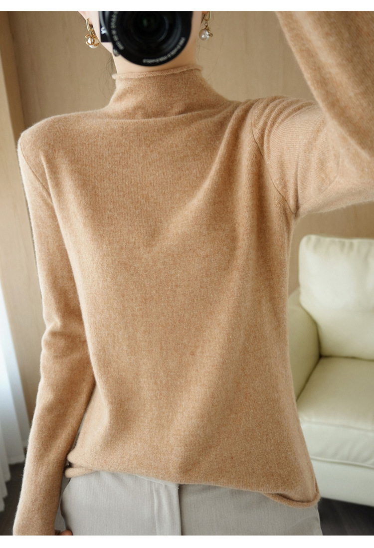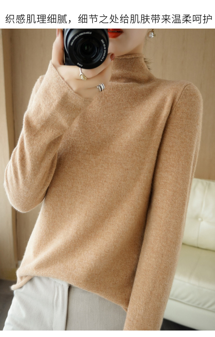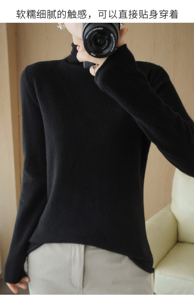 Choice 堆堆领羊毛衫女100 纯羊毛秋冬高领洋气内搭薄款针织打底羊绒毛衣