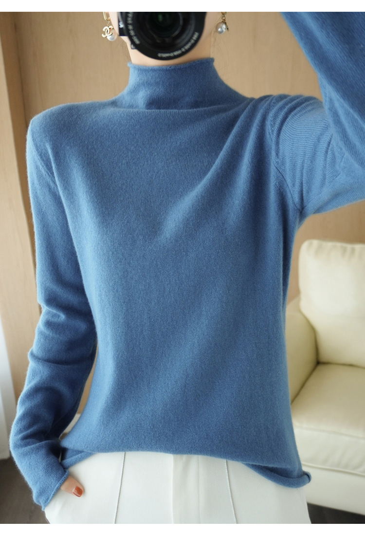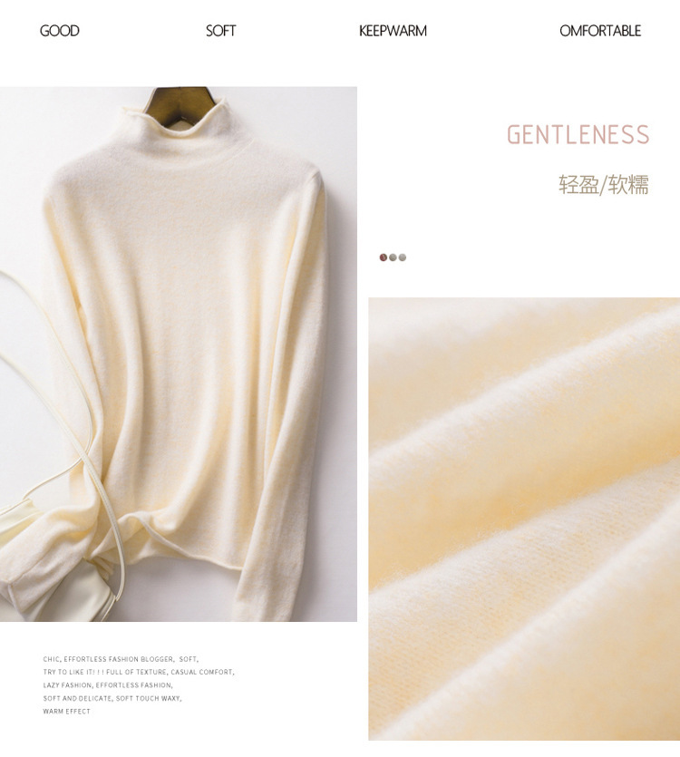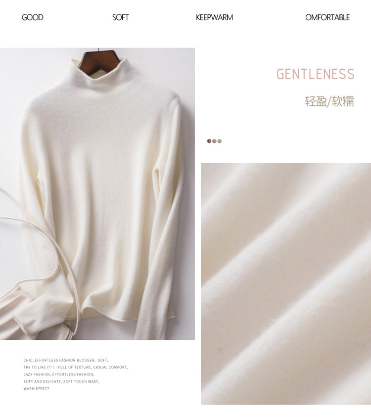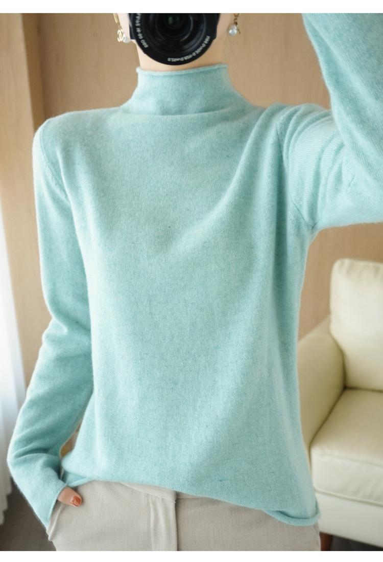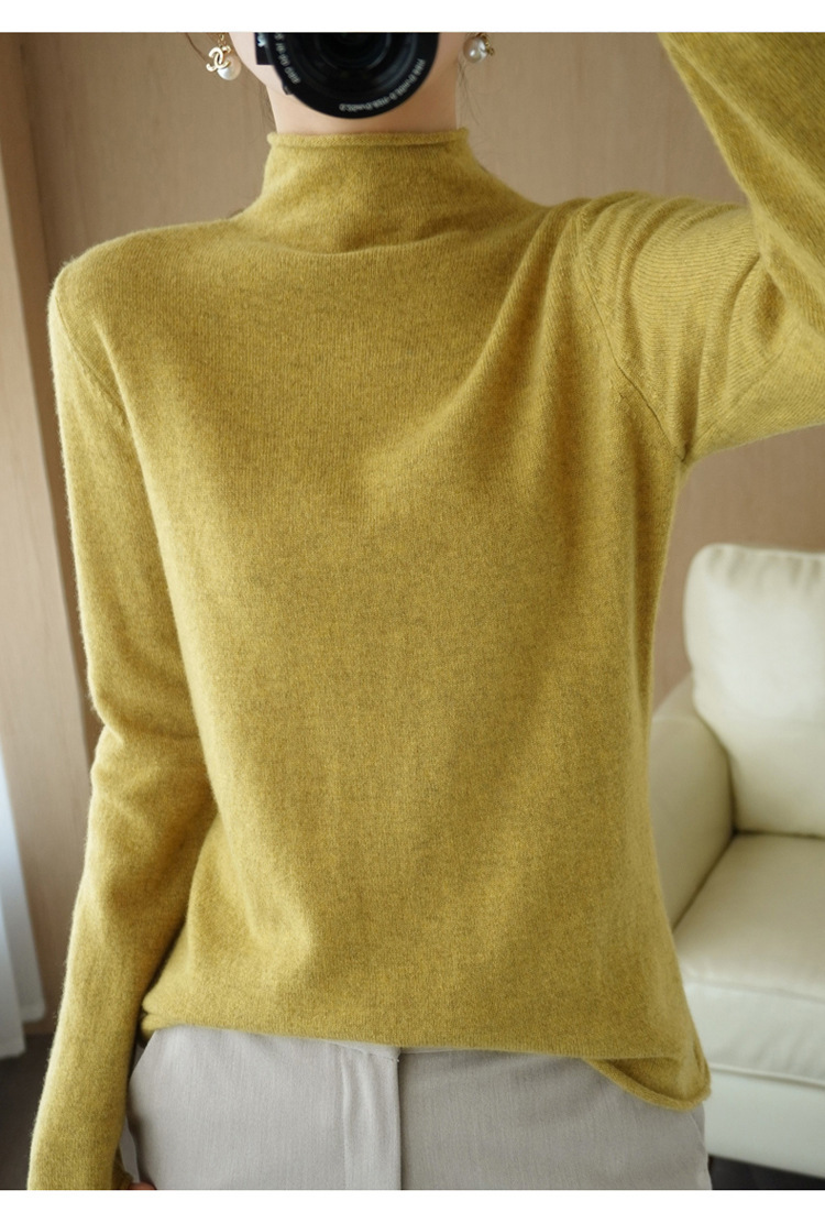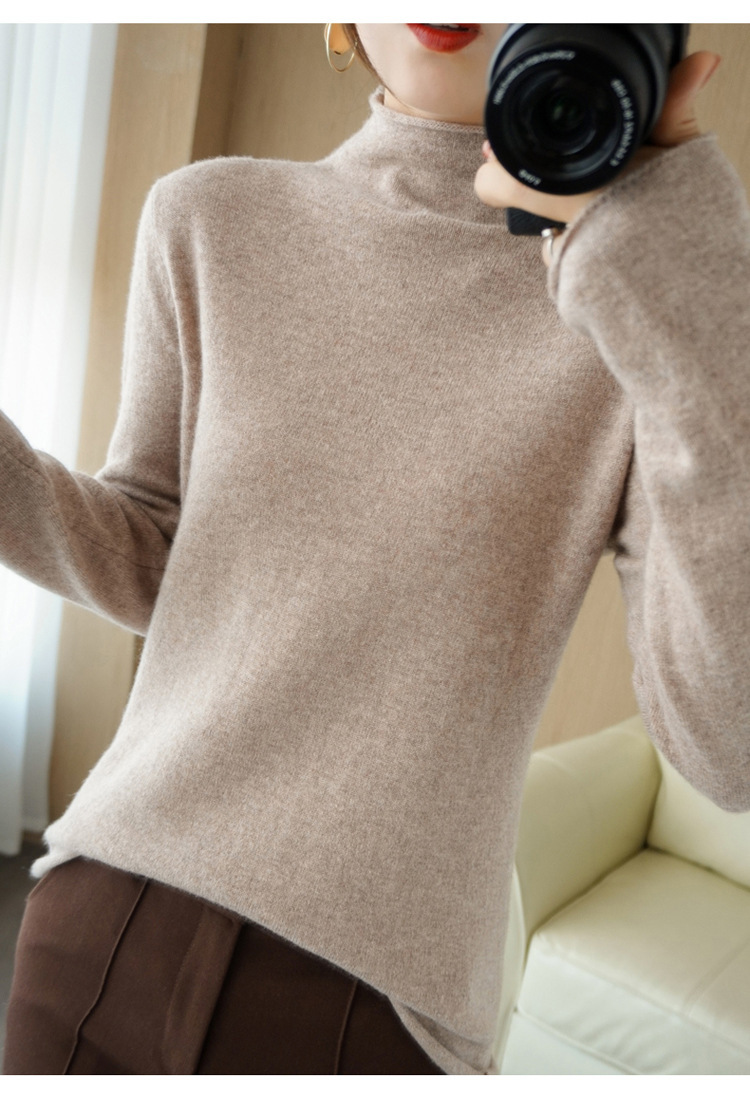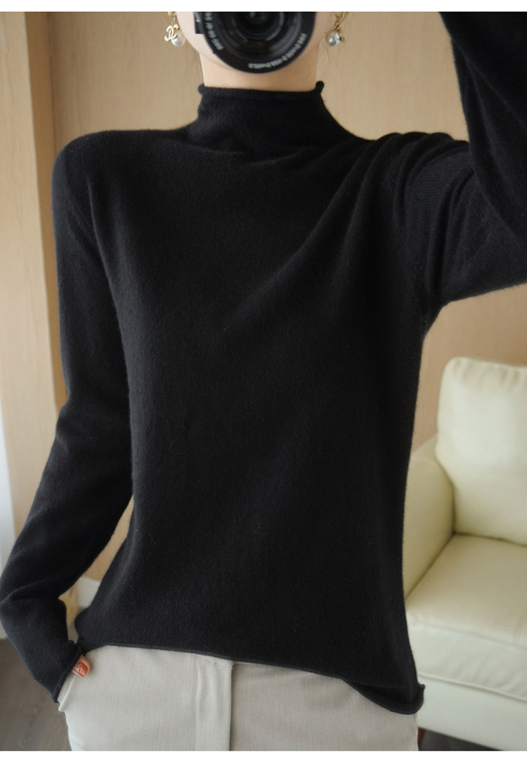Choice 堆堆领羊毛衫女100 纯羊毛秋冬高领洋气内搭薄款针织打底羊绒毛衣