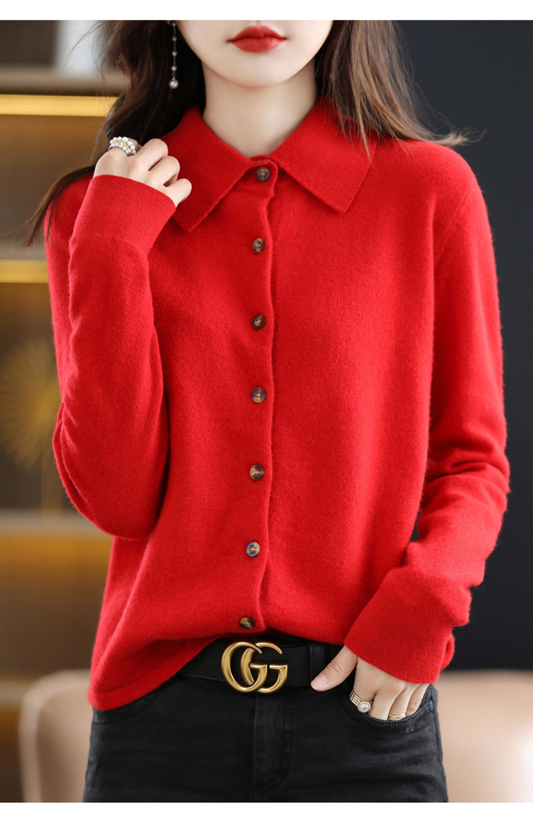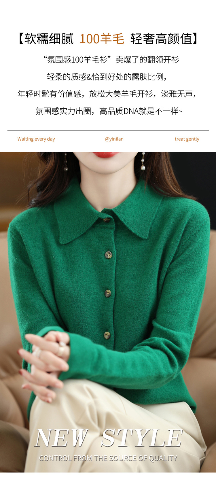 Choice 秋冬100%纯羊毛针织衬衫女外套POLO领打底衫羊绒毛衣开衫翻领外搭