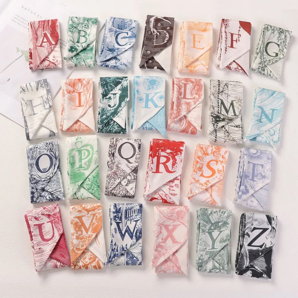 蝴蝶结带丝巾26个字母丝巾发带头巾装饰领巾绑包飘带头绳发饰领巾