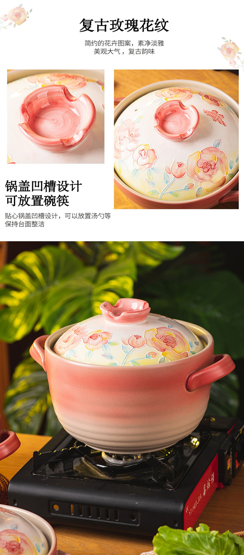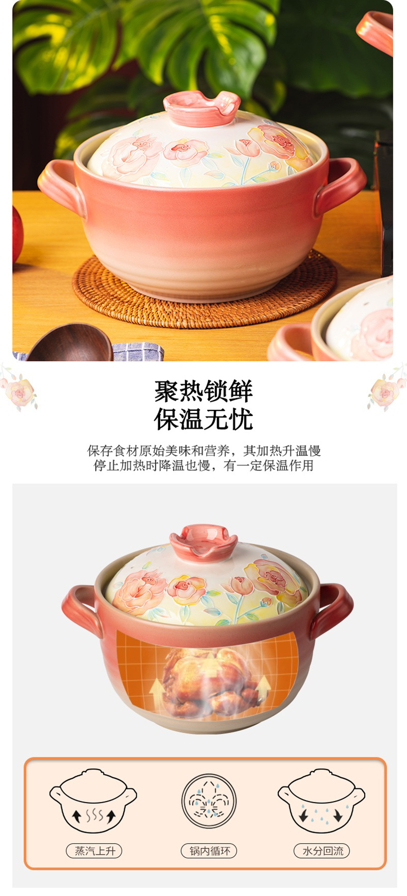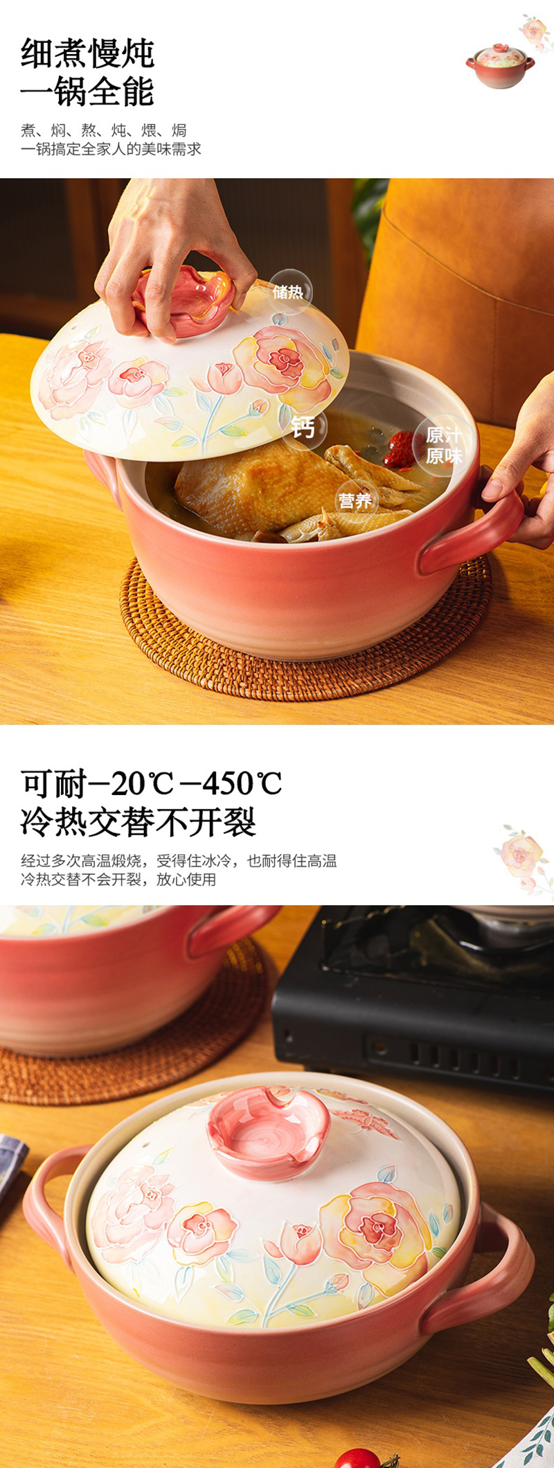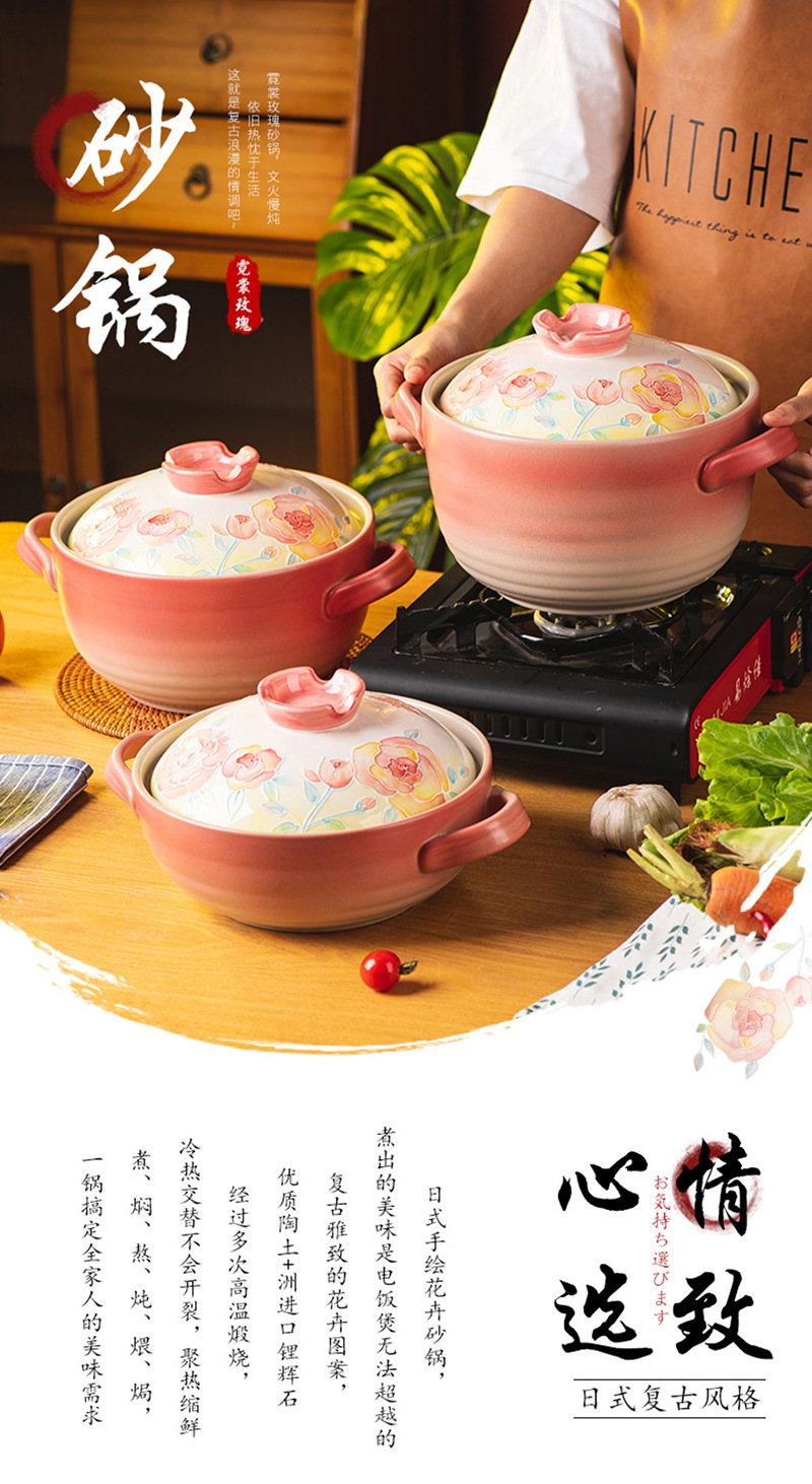 手绘陶瓷砂锅家用耐高温干烧锅煲仔饭啫啫煲燃气灶炖锅陶土浅炒锅