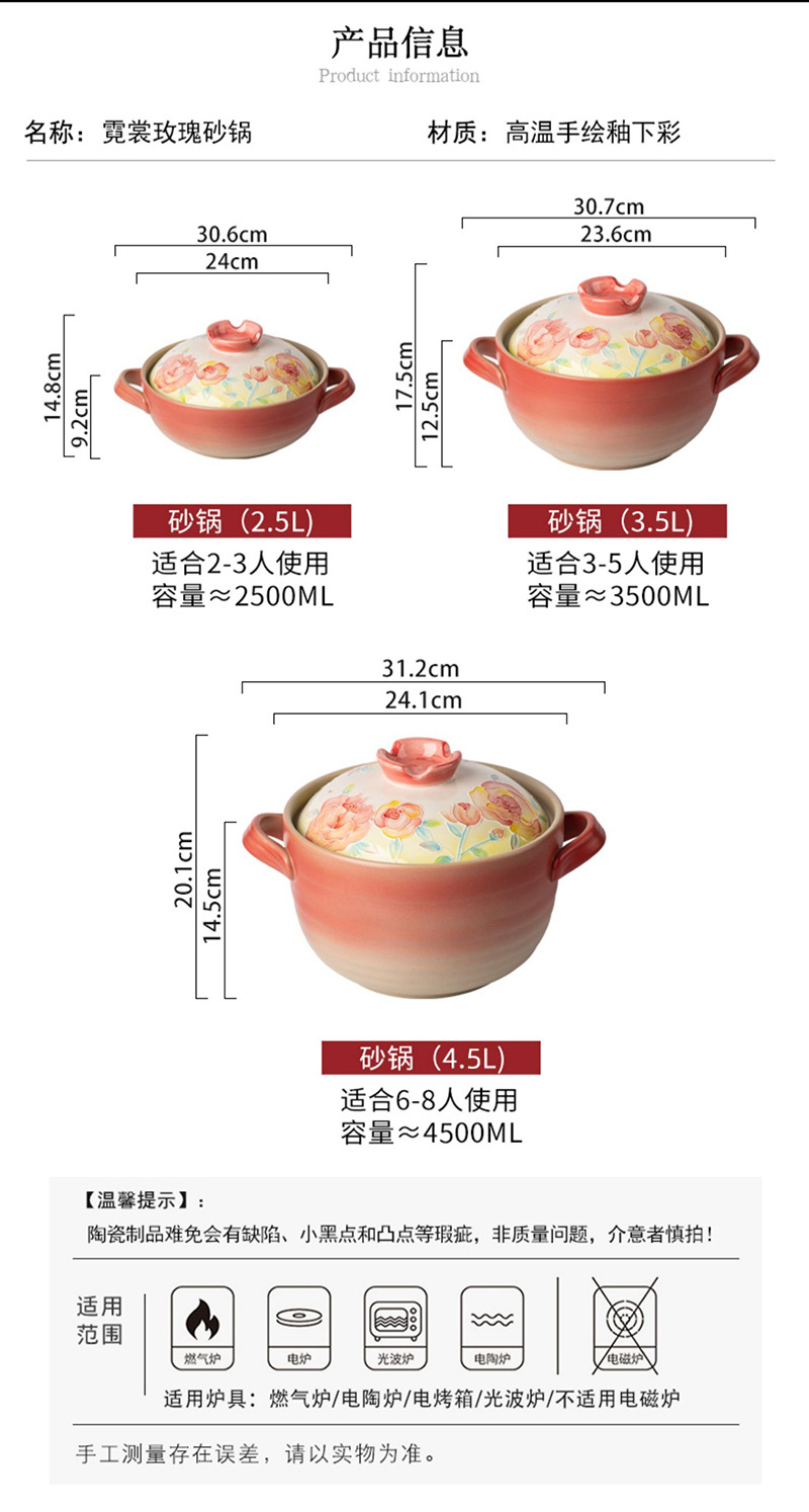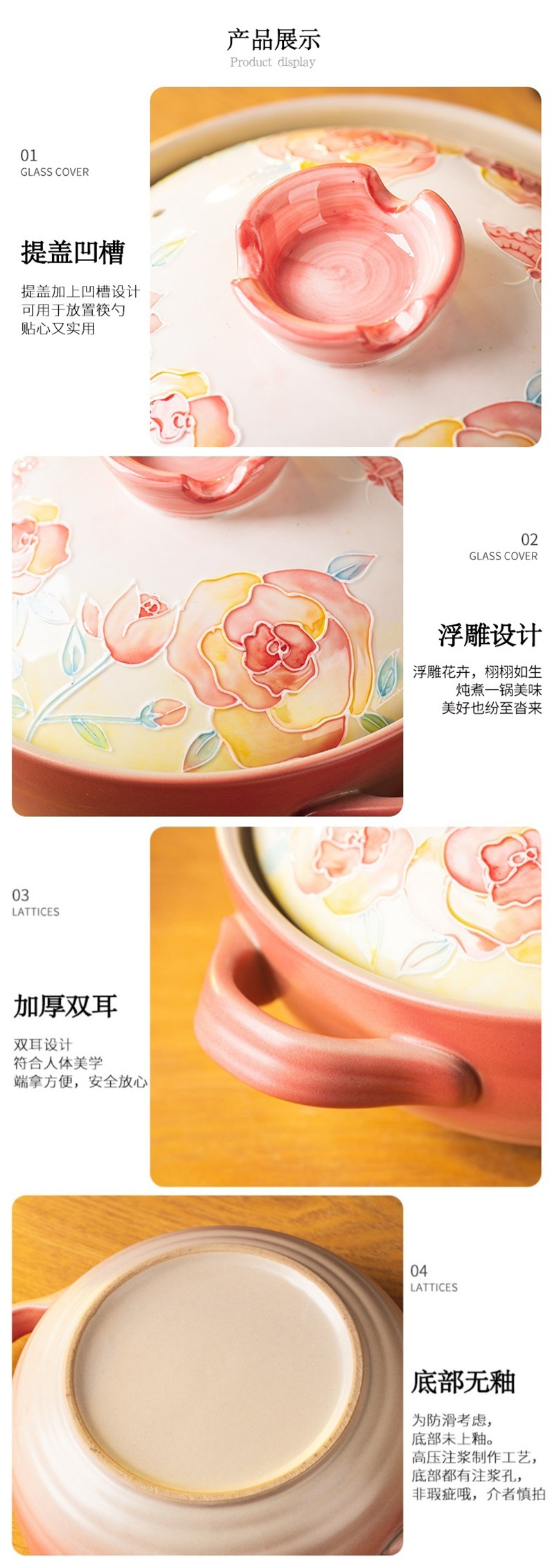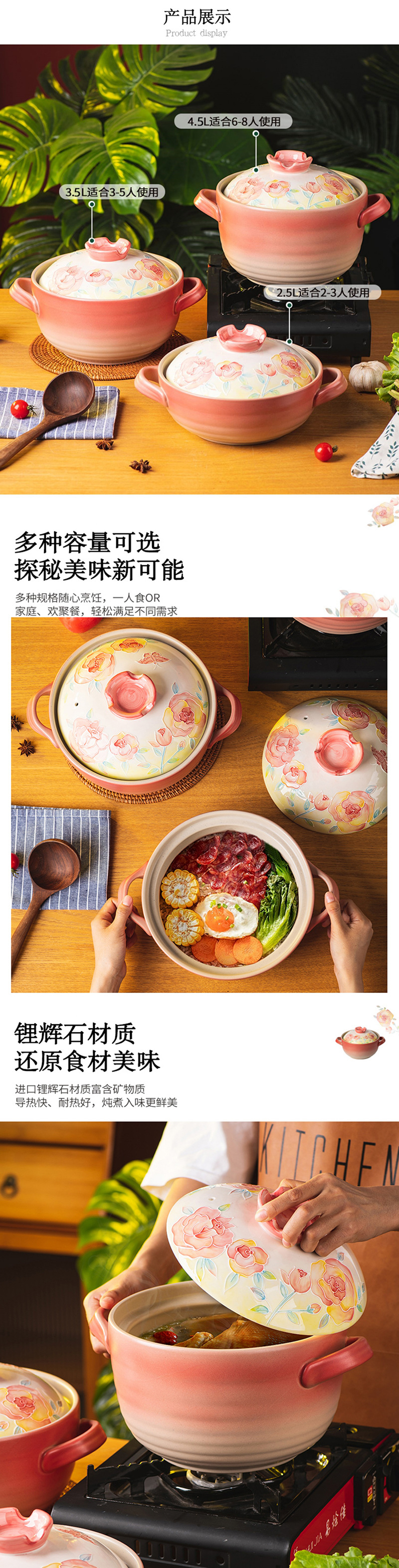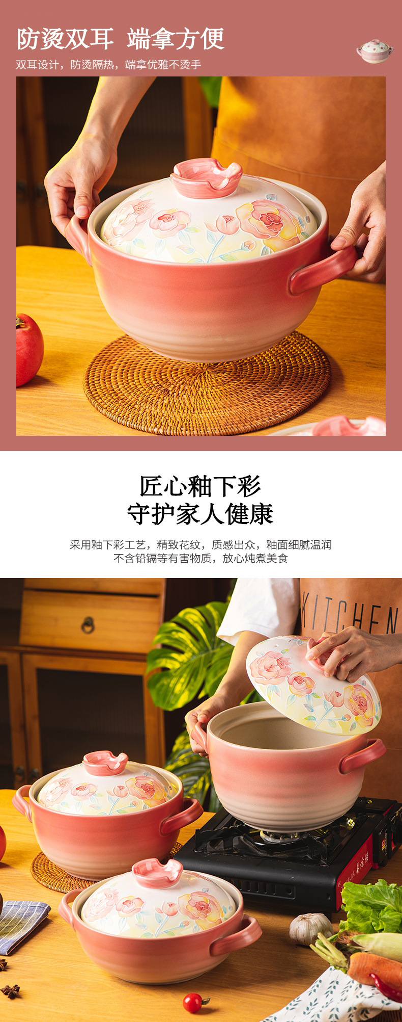 手绘陶瓷砂锅家用耐高温干烧锅煲仔饭啫啫煲燃气灶炖锅陶土浅炒锅