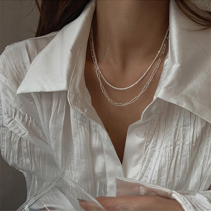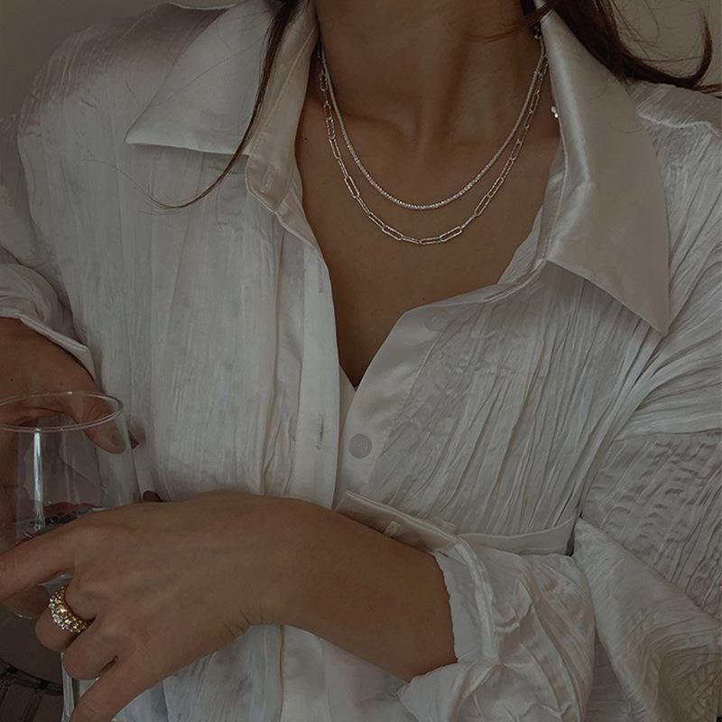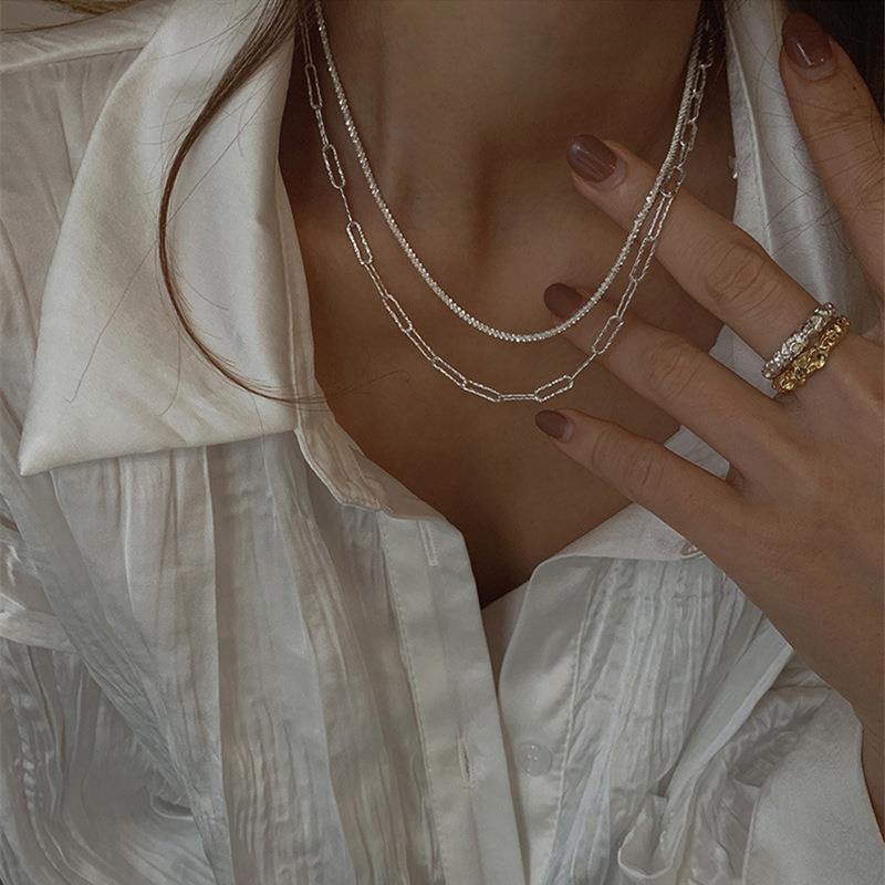 镀s925银几何相环项链轻奢小众满天星女款小众设计感锁骨链冷淡风